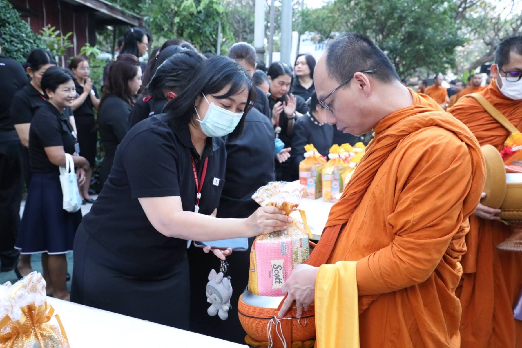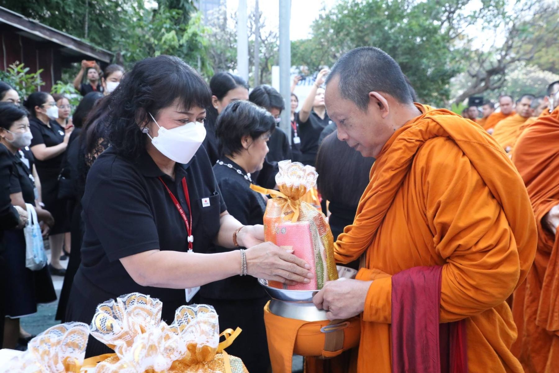 พร้อมทั้งนำอาสาสมัครสภากาชาดไทยร่วมปฏิบัติหน้าที่ช่วยถือสิ่งของและเครื่องไทยธรรมของพระสงฆ์ในพิธีดังกล่าว