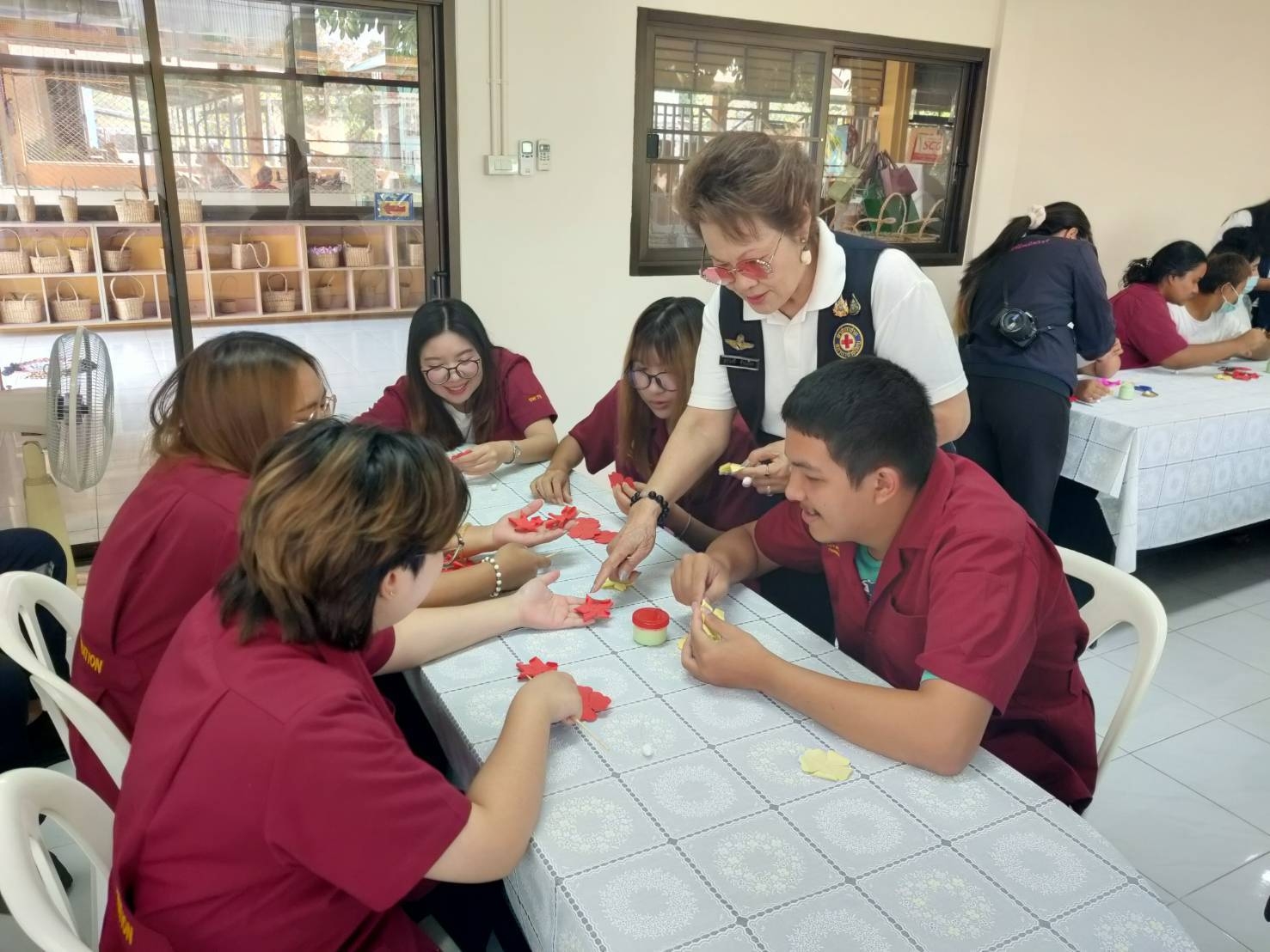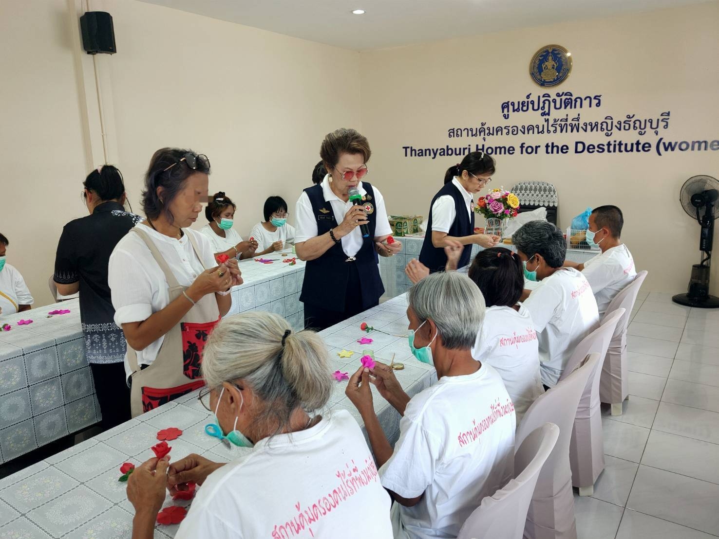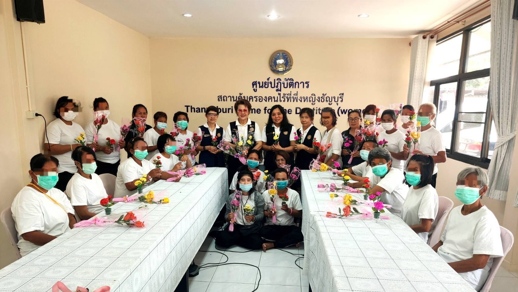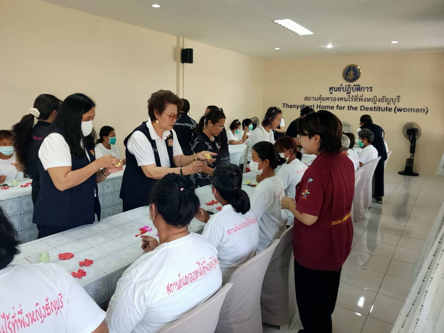 กิจกรรมของขวัญจากดอกไม้ วันที่ 26 กุมภาพันธ์ 2569 สำนักงานยุวกาชาดและอาสาสมัครกาชาด สภากาชาดไทยร่วมกับสถานคุ้มครองหญิงไร้ที่พึ่งธัญบุรี จังหวัดปทุมธานี จัดกิจกรรมสาธิตสอนทำดอกไม้จากกระดาษชนิดต่างๆ แก่ผู้รับบริการที่สนใจเข้าร่วมกิจกรรม เพื่อทำเป็นของขวัญของฝากหลากหลายรูปแบบมอบให้คนที่เคารพรักในเทศกาลต่างๆ พร้อมนี้ มีนักศึกษาจากมหาวิทยาลัยธรรมศาสตร์มาร่วมเรียนรู้และลงมือทำด้วย ทั้งนี้ กิจกรรมของขวัญจากดอกไม้เป็นการสาธิตและสอนประดิษฐ์ดอกไม้จากกระดาษหลากหลายรูปแบบ เพื่อให้ผู้เข้าร่วมกิจกรรมได้ใช้เวลาว่างให้เกิดประโยชน์ พัฒนาสมาธิ มุ่งเน้นการฟื้นฟูจิตใจ สร้างสรรค์ผลงานประณีตศิลป์ และสร้างทักษะอาชีพให้แก่ผู้รับบริการที่สามารถนำไปมอบเป็นของขวัญในเทศกาลสำคัญต่างๆ ได้อย่างน่าภาคภูมิใจ