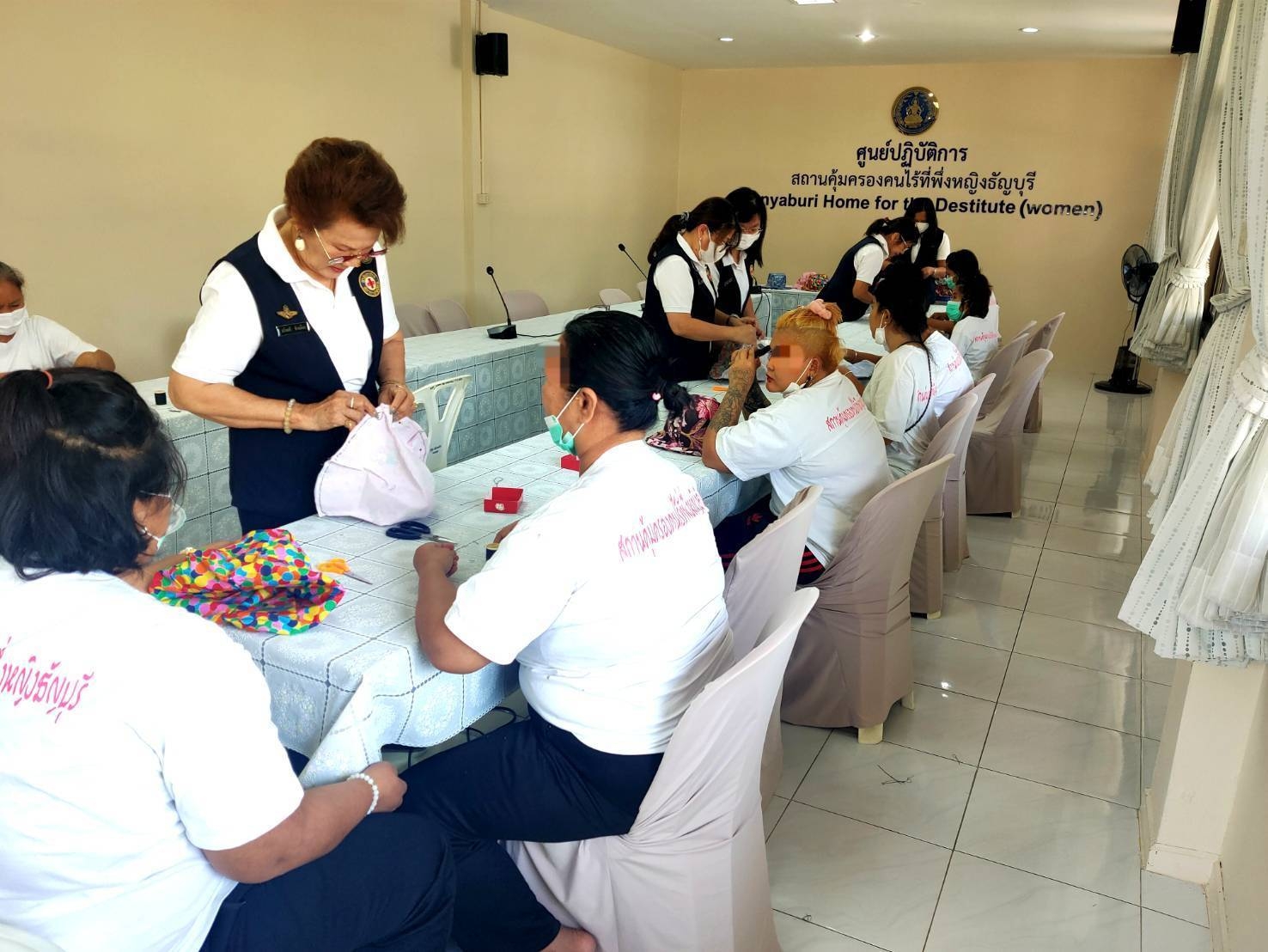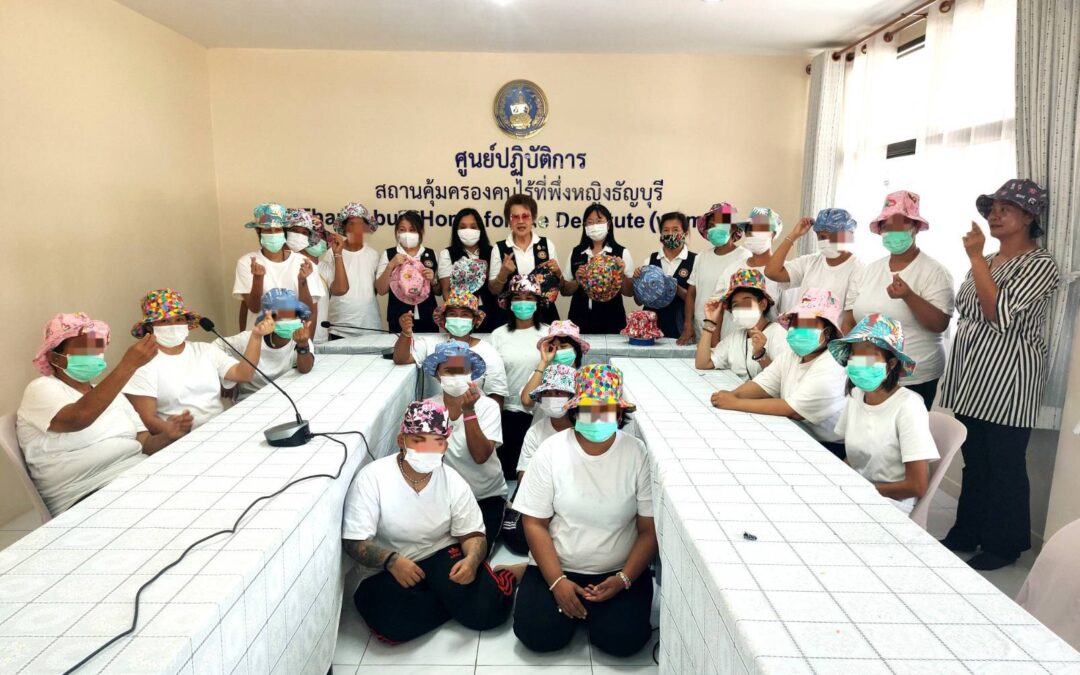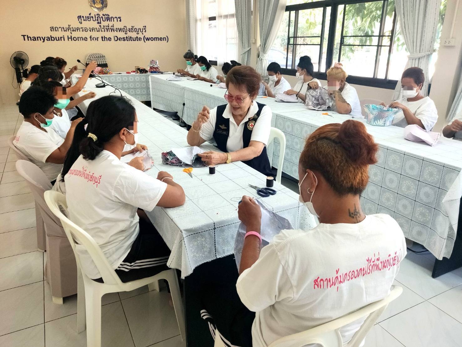 กิจกรรมดังกล่าวเป็นการส่งเสริมให้ผู้เข้ารับการคุ้มครองได้ใช้เวลาว่างให้เกิด ประโยชน์ผ่านงานสร้างสรรค์โดยคณะอาสาสมัครกาชาดได้ถ่ายทอดความรู้ ตั้งแต่ขั้นพื้นฐาน ได้แก่ การสร้างแบบตัดเย็บในขนาดและรูปแบบต่างๆ ที่หลากหลายรวมถึงเทคนิคการเลือกใช้ผ้าและการเย็บประกอบหมวกเพื่อให้ สามารถใช้งานได้จริงในการกันแดดช่วงฤดูร้อนและเทศกาลสงกรานต์ที่กำลัง จะมาถึง