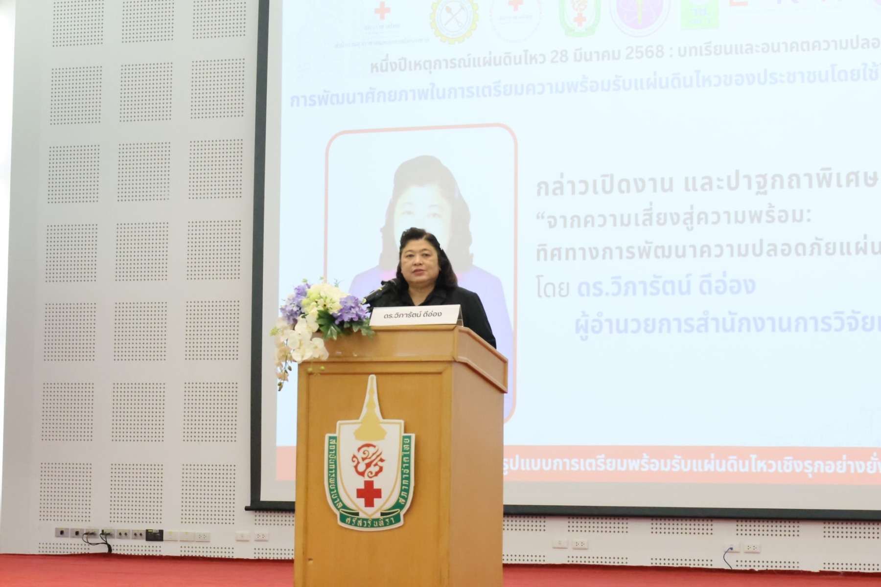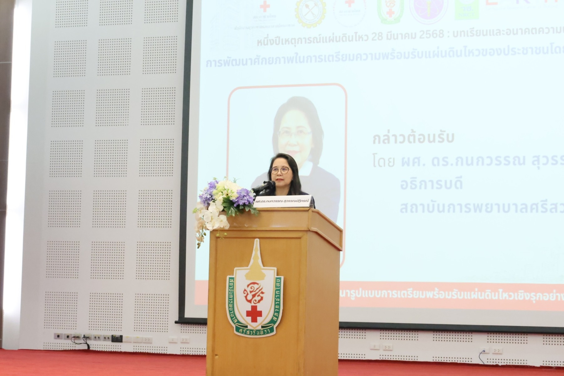 โดยมี ดร.วิภารัตน์ ดีอ่อง ผู้อำนวยการสำนักงานการวิจัยแห่งชาติ เป็นประธานในพิธีเปิดและปาฐกถาพิเศษ เรื่อง “จากความเสี่ยงสู่ความพร้อม: ทิศทางการพัฒนาความปลอดภัยแผ่นดินไหวของประเทศไทย” พร้อมด้วย ผู้ช่วยศาสตราจารย์ ดร.กนกวรรณ สุวรรณปฏิกรณ์ อธิการบดีสถาบันการพยาบาลศรีสวรินทิรา ศาสตราจารย์ ดร.เป็นหนึ่ง วานิชชัย ผู้อำนวยการศูนย์วิจัยแผ่นดินไหวแห่งชาติ คณะผู้บริหาร วช. และผู้ช่วยศาสตราจารย์ เครือวัลย์ ศรียารัตน์ คณบดีสำนักวิชาพยาบาลศาสตร์ ศ.ดร.สุสัณหา ยิ้มแย้ม ผู้อำนวยการศูนย์วิจัยและนวัตกรรม ผู้ช่วยศาสตราจารย์ ดร.ชญาภรณ์ ตีวารี รองคณบดีสำนักวิชาพยาบาลศาสตร์ สถาบันการพยาบาลศรีสวรินทิรา สภากาชาดไทย ให้การต้อนรับ