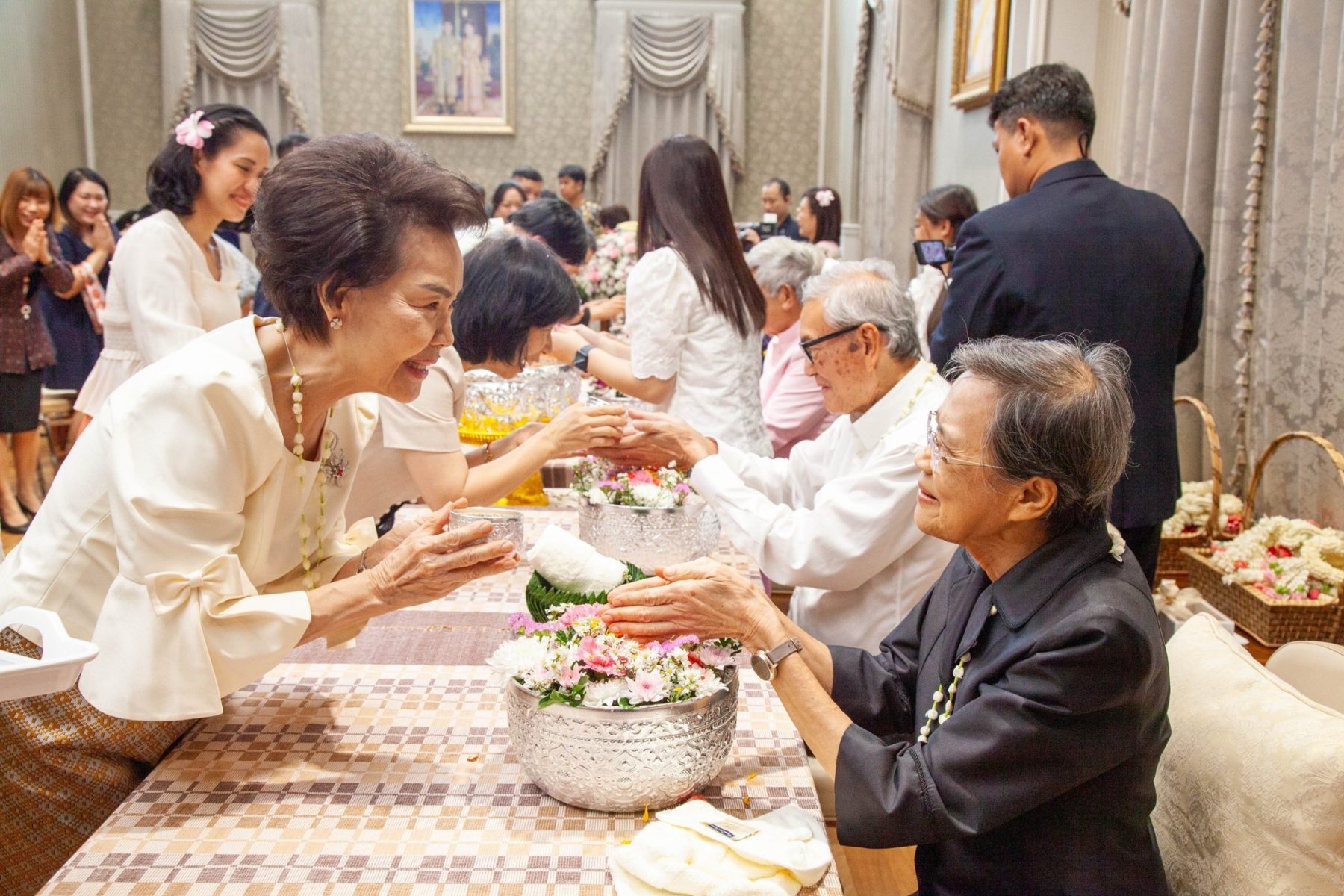ในการนี้ รองศาสตราจารย์ นายแพทย์พินิจ กุลละวณิชย์ ผู้ช่วยเลขาธิการฯ พร้อมด้วยนางสุนันทา ศรอนุสิน ผู้อำนวยการสำนักงานยุวกาชาดและอาสาสมัครกาชาด สภากาชาดไทย ร่วมพิธี เพื่อสืบสานประเพณีไทย และความเป็นสิริมงคล