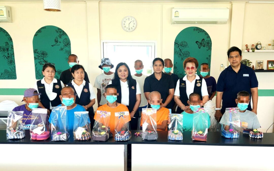 อาสาสมัครกาชาดสอนพับ “มาลัยรักผ้าขาวม้า” แก่ผู้รับบริการบ้านชายไร้ที่พึ่ง สร้างอาชีพ-ส่งต่อความกตัญญู