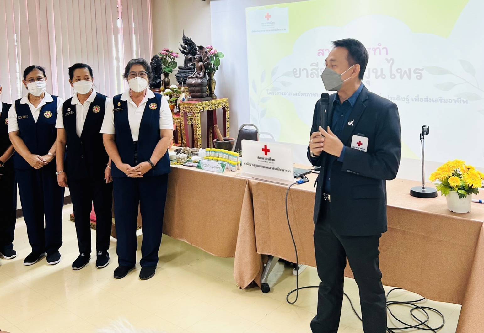 ในโครงการอาสาสมัครกาชาดสร้างสรรค์ หัตถกรรม สิ่งประดิษฐ์ เพื่อส่งเสริมอาชีพ โดยมี อาสาสมัครกาชาดที่ได้รับการพัฒนาเป็นผู้นำกระบวนเรียนรู้ (Facilitator)