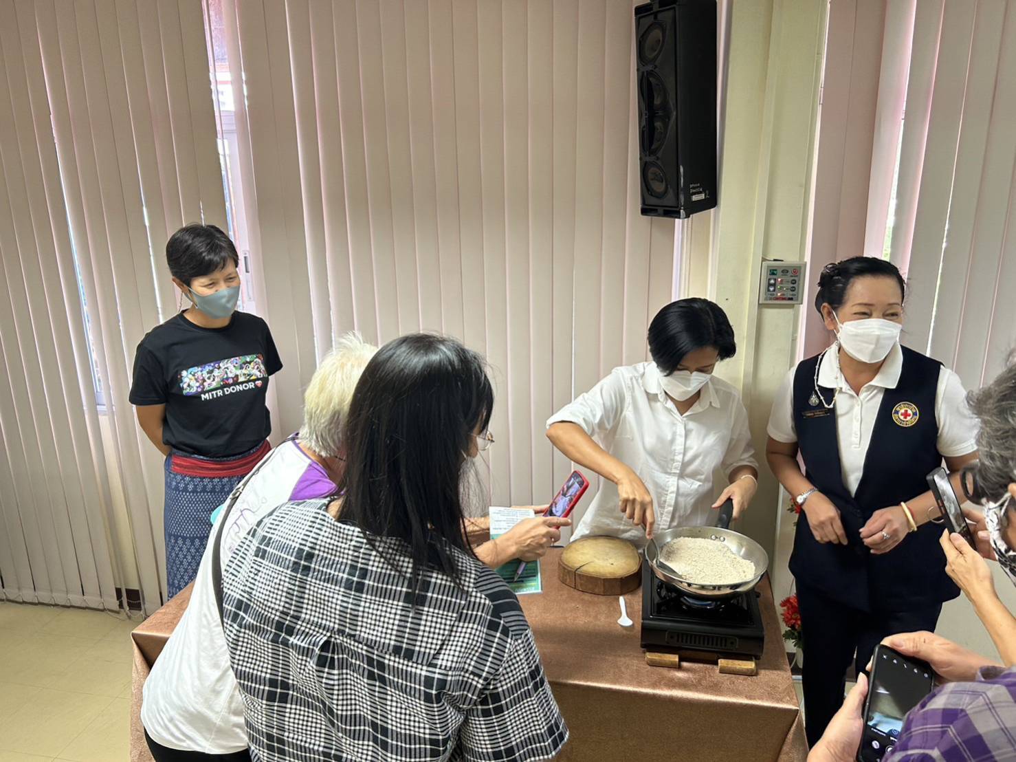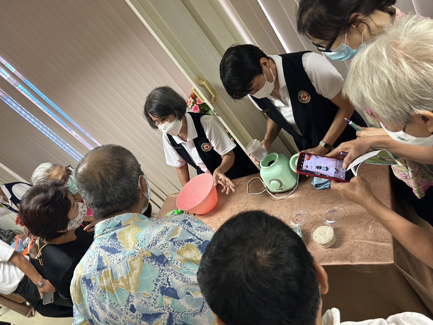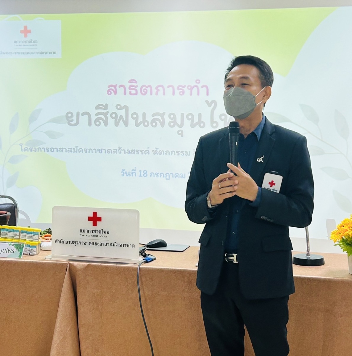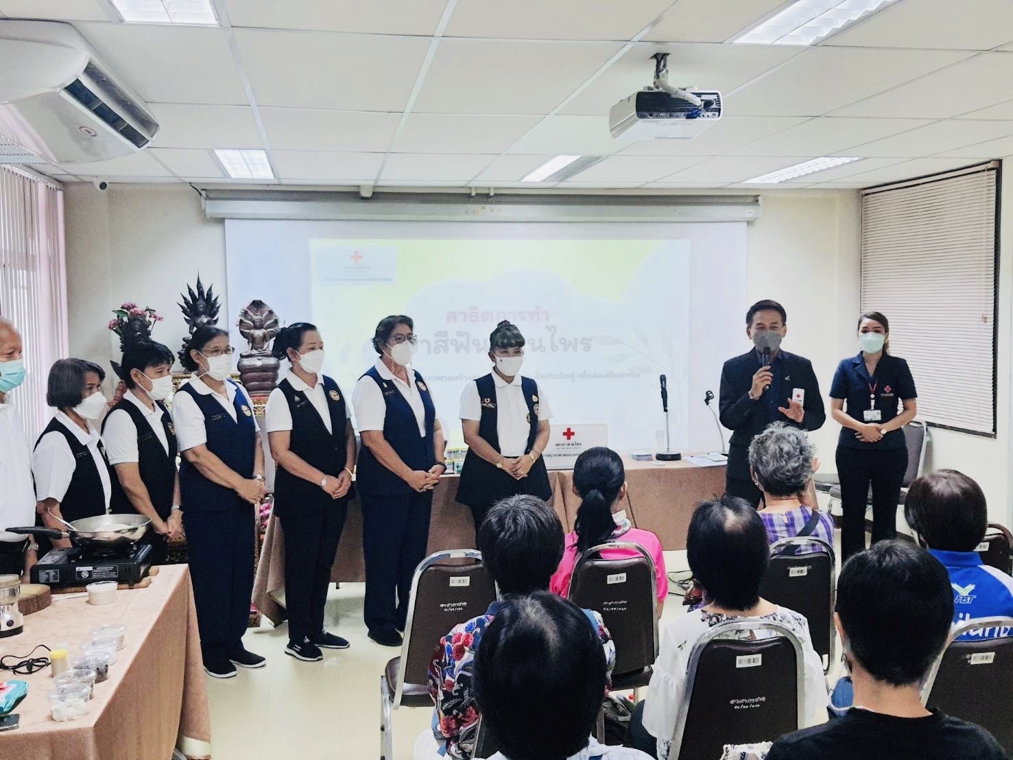 อาสาสมัครกาชาดสาธิตการทำยาสีฟันสมุนไพร