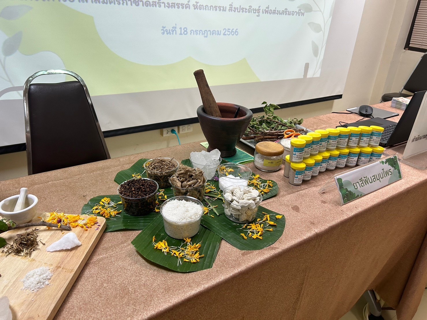 วันที่ 18 กรกฏาคม 2566 นายกิตติธัช กลิ่นลอย ผู้ช่วยผู้อำนวยการสำนักงานยุวกาชาดและอาสาสมัครกาชาด เปิดการอบรมสาธิตการทำ “ยาสีฟันสมุนไพร”