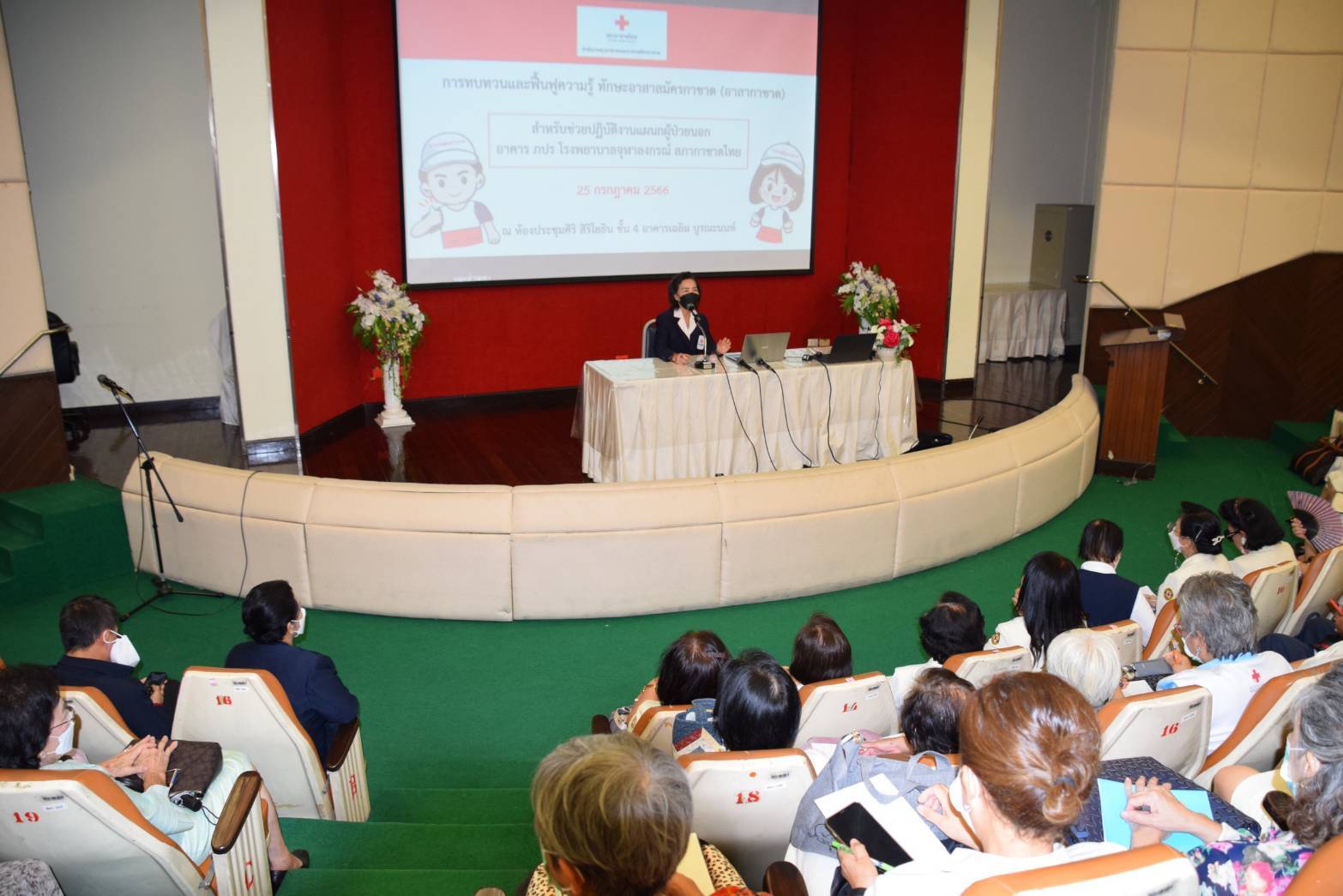 วันที่ 25 กรกฏาคม 2566 นางสุนันทา ศรอนุสิน ผู้อำนวยการสำนักงานยุวกาชาดและอาสาสมัครกาชาดเป็นประธานเปิดการอบรมการทบทวนและฟื้นฟูความรู้ ทักษะอาสาสมัครกาชาด (อาสากาชาด) สำหรับช่วยปฏิบัติงานแผนกผู้ป่วยนอกอาคาร ภปร โรงพยาบาลจุฬาลงกรณ์ สภากาชาดไทย ณ ห้องประชุมศิริ สิริโยธิน ชั้น 4 อาคารเฉลิมบูรณะนนท์