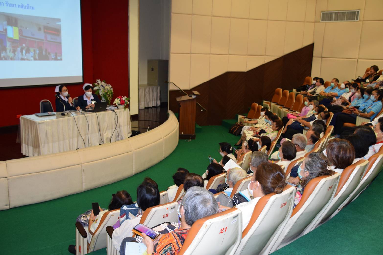 โดยมีการชี้แจงหน้าที่และแนวทางปฏิบัติงานจากหัวหน้าหอผู้ป่วยภปร 1และ7 แก่อาสาสมัครกาชาดเพื่อเตรียมความพร้อมปฏิบัติงาน และ