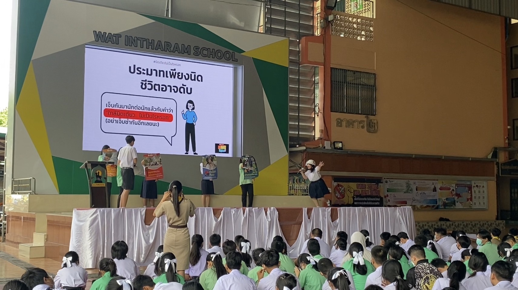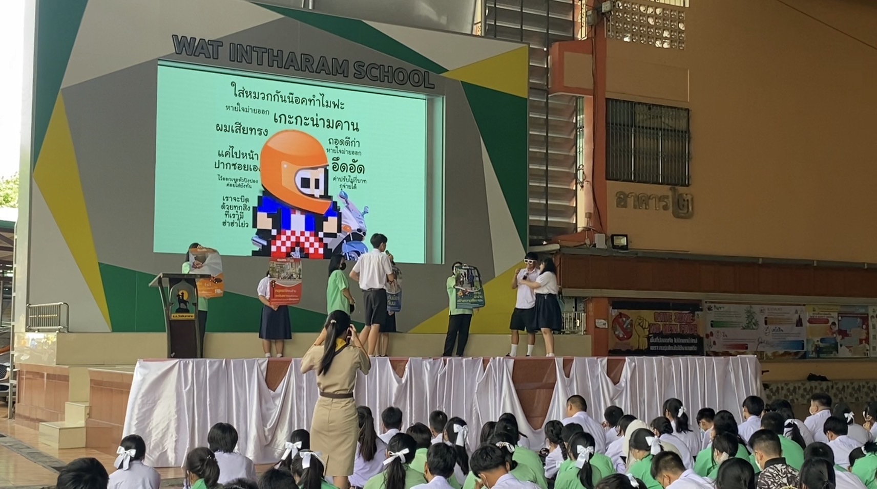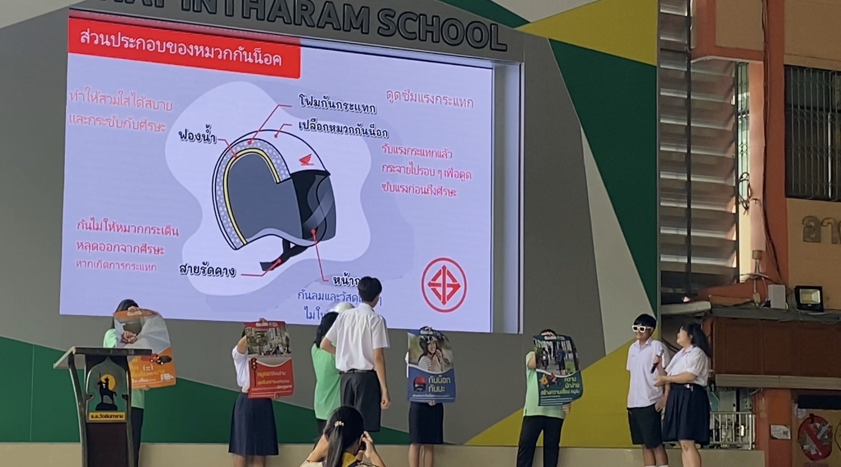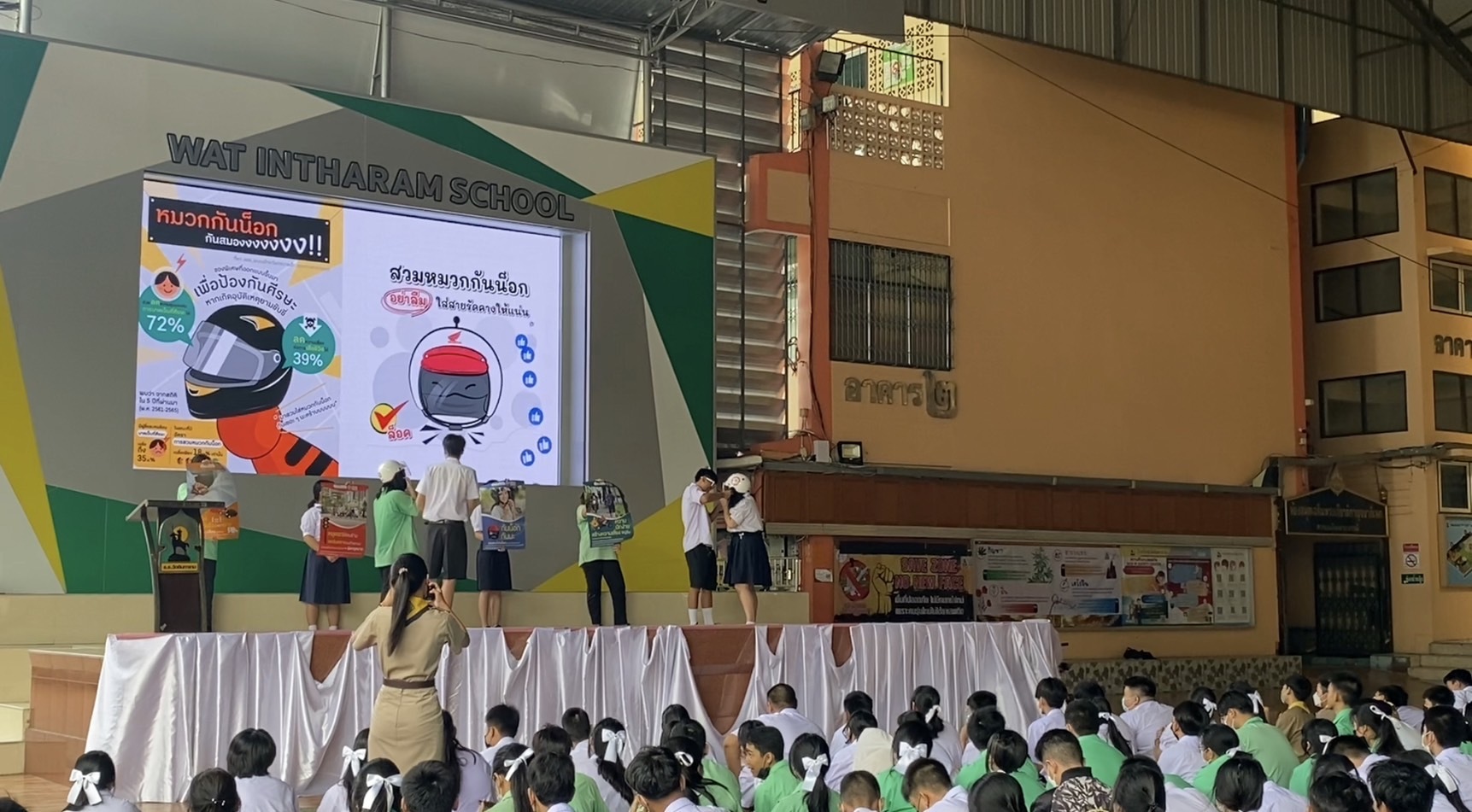 วันที่ 10 ก.ค.66 2566 โรงเรียนวัดอินทาราม ภายใต้การนำของผู้อำนวยการ นายสมเด็จ เจริญผล ขยายผลการอบรมโครงการ Road Safety for Youth ตอน อาสายุวกาชาดนําความปลอดภัยทางถนนสู่ชุมชน จากสำนักงานยุวกาชาดและอาสาสมัครกาชาด สภากาชาดไทย โดยการจัดกิจกรรม IR ปลอดภัย ใส่หมวก(กันน็อค) รณรงค์ให้นักเรียนและบุคลากรในโรงเรียน จำนวน 1,105 คน สวมหมวกกันน็อค เพื่อความปลอดภัยบนท้องถนน