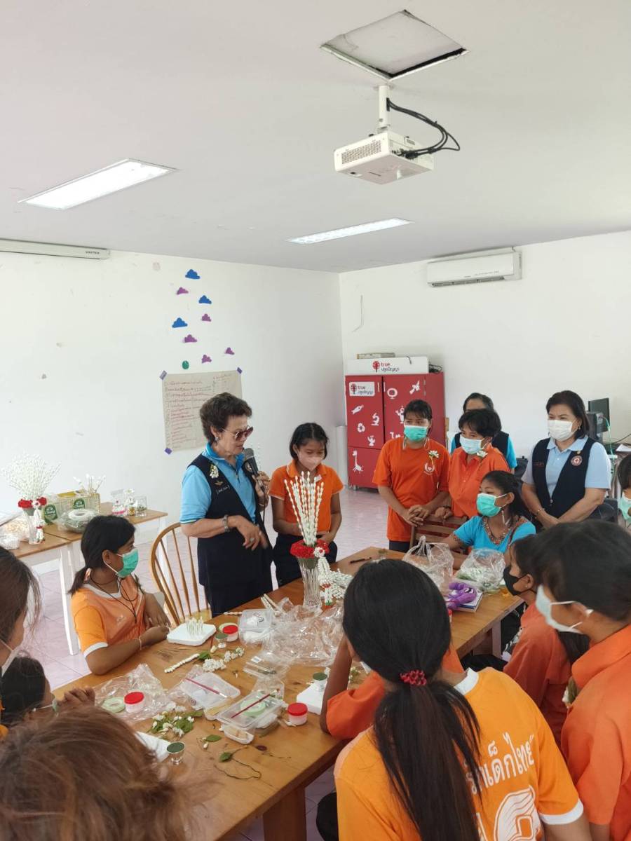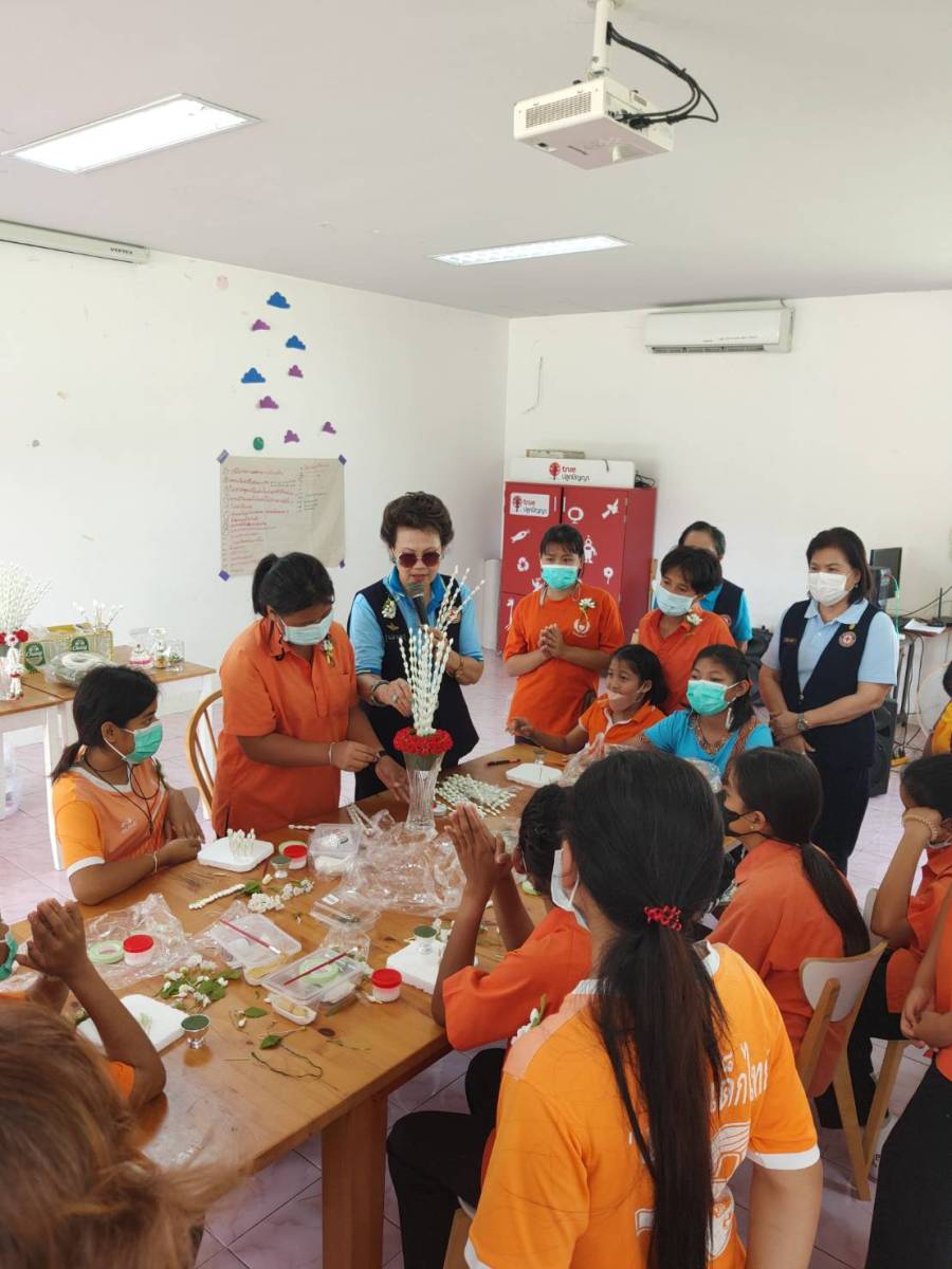 วันที่ 10 สิงหาคม 2566 คณะอาสาสมัครกาชาด “โครงการอาสาสมัครกาชาดร่วมใจพัฒนาชุมชนและสังคม” พร้อมด้วยเจ้าหน้าที่ฝ่ายพัฒนายุวกาชาดและอาสาสมัครกาชาด จัดกิจกรรมสอนเด็กหญิงจำนวน 25 คน ร้อยพวงมาลัยดอกมะลิ ณ สถานแรกรับเด็กหญิงบ้านธัญญพร จังหวัดปทุมธานี เพื่อนำไปใช้ในกิจกรรมวันแม่แห่งชาติที่จะมีการจัดขึ้นต่อไป