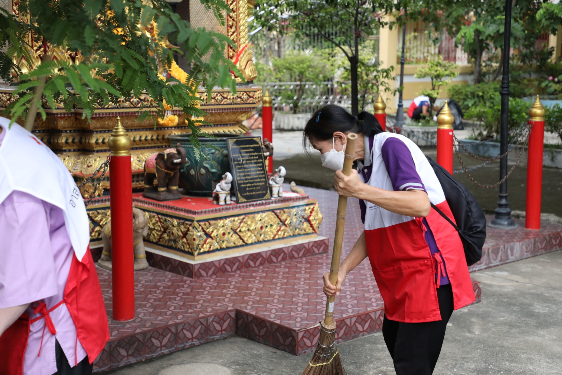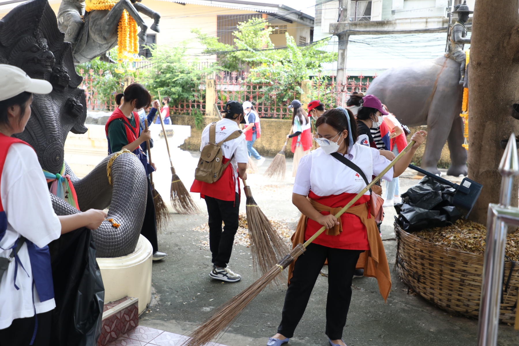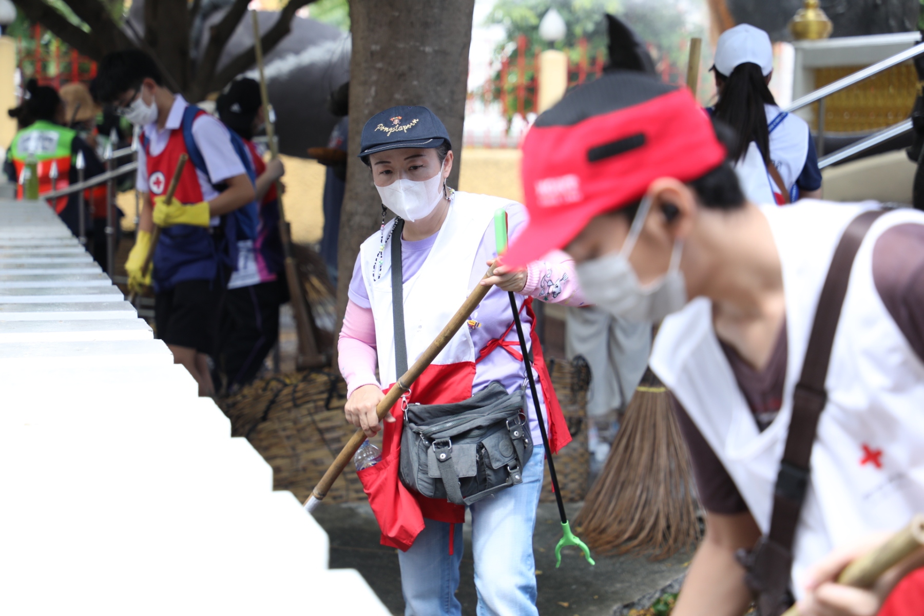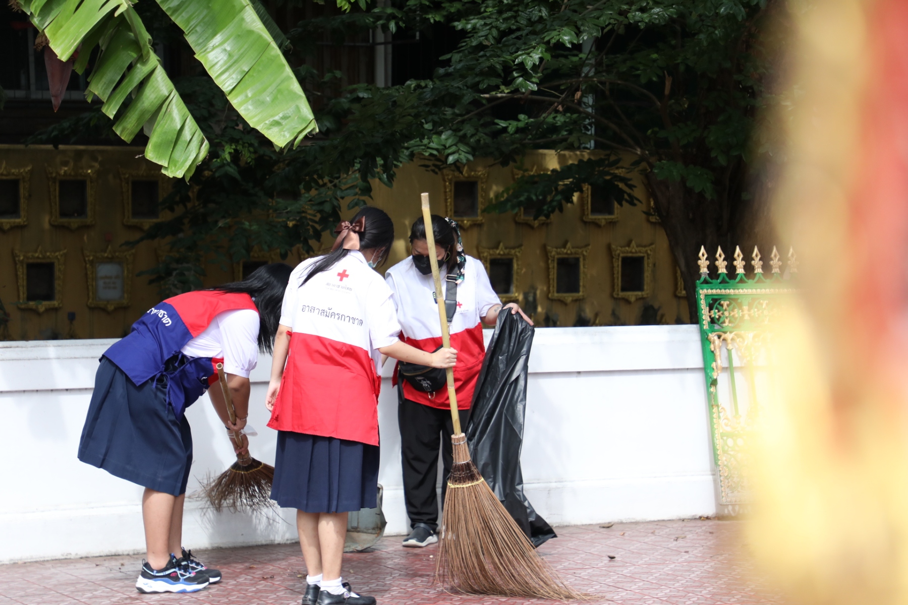 กิจกรรมในวันนี้ แบ่งการทำความสะอาดพื้นที่วัด และขัดล้างเพื่อปรับปรุงภูมิทัศน์ โดยอาสาสมัครกาชาดร่วมแรงร่วมใจกับ