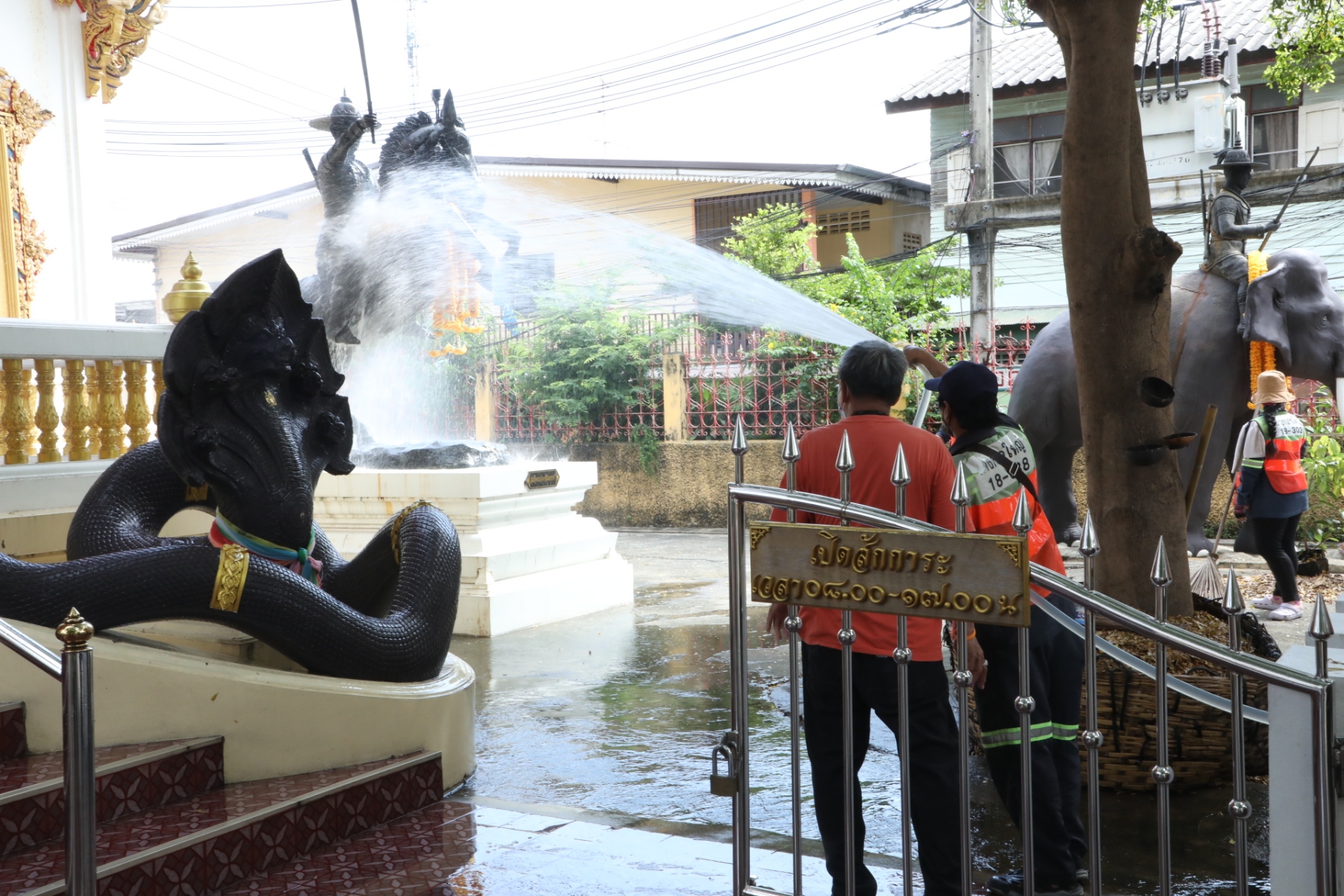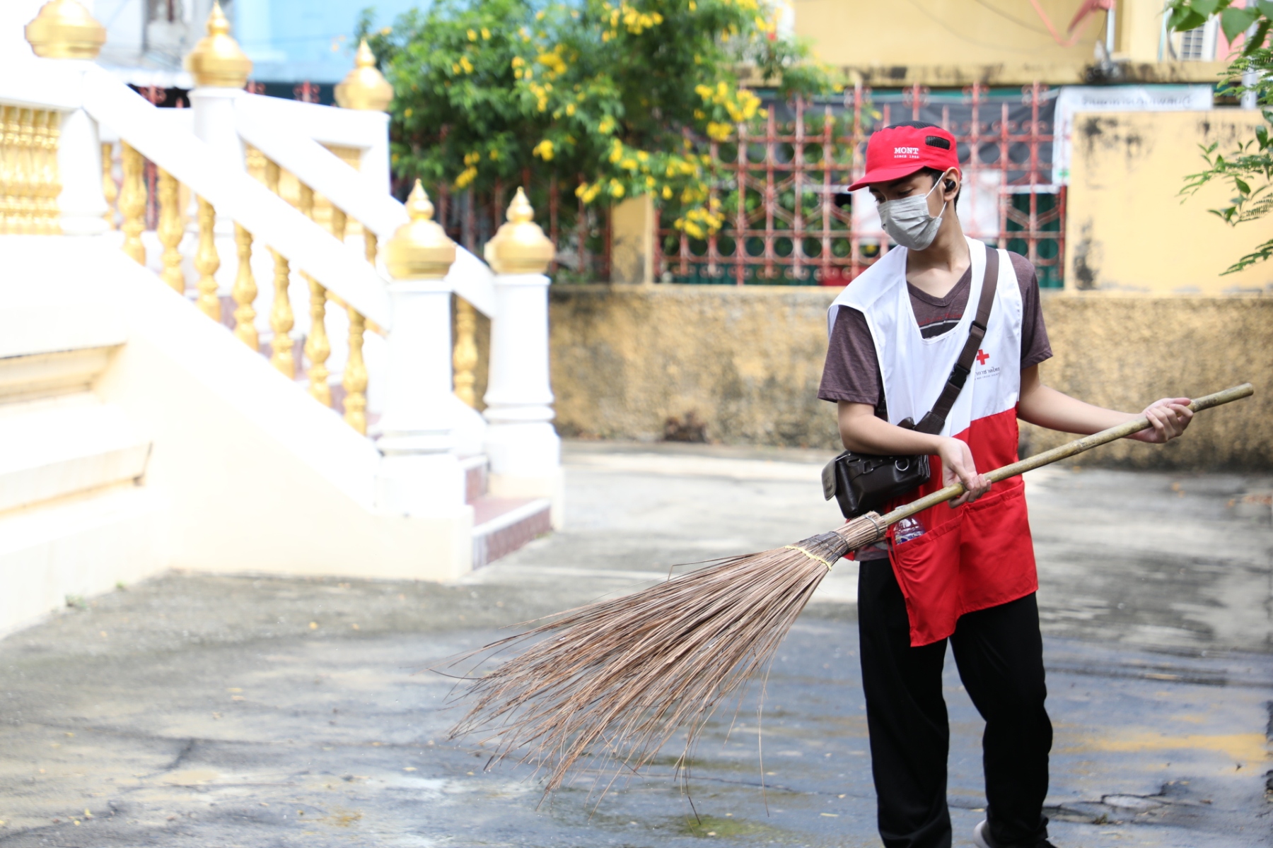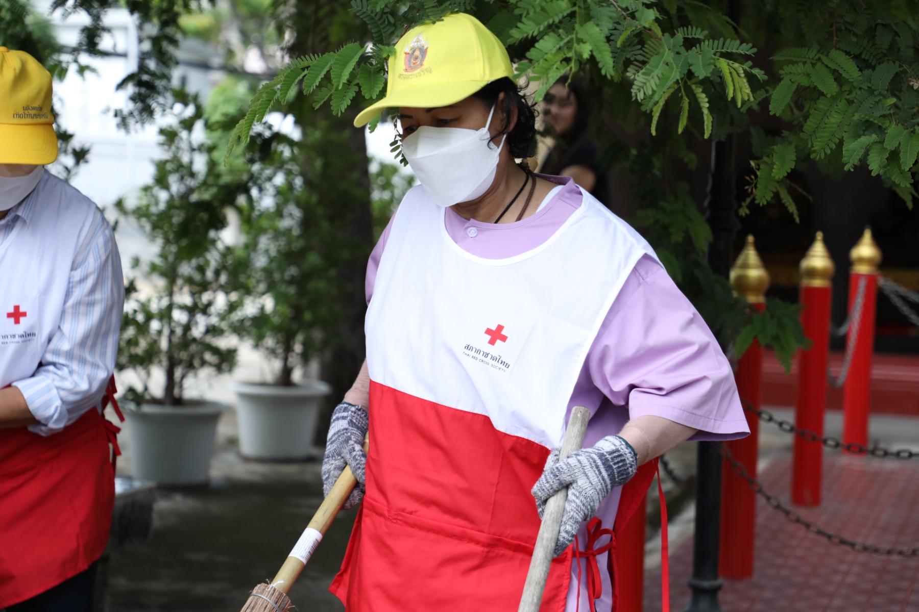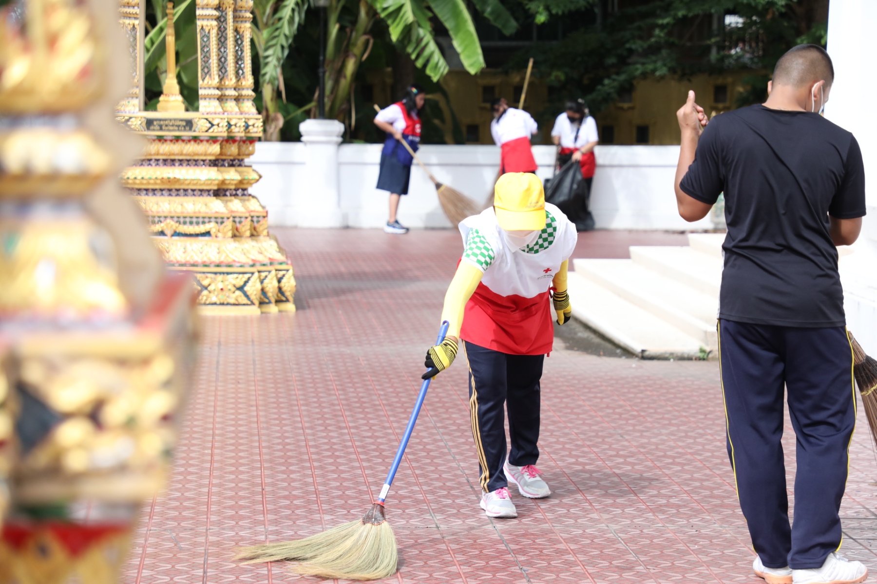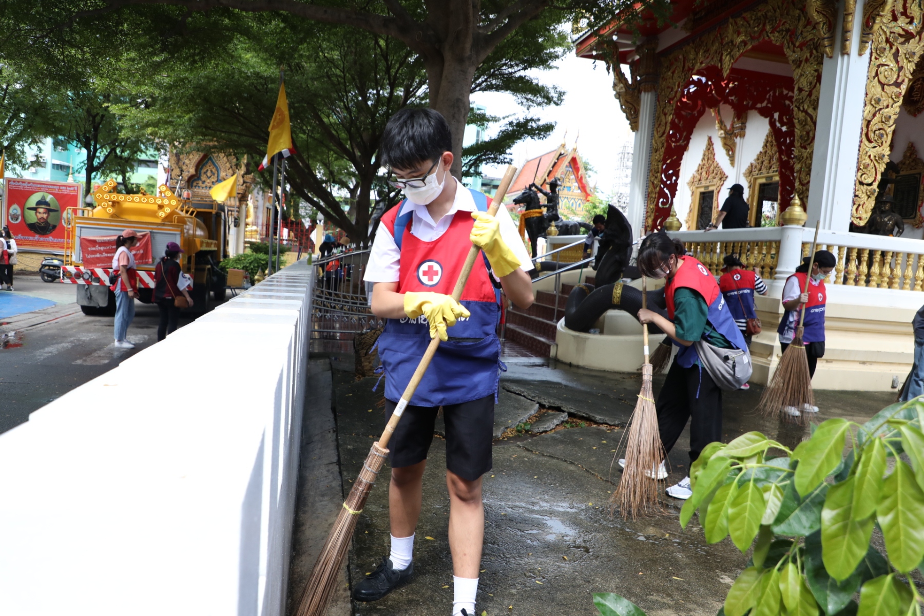 กิจกรรมในวันนี้ แบ่งการทำความสะอาดพื้นที่วัด และขัดล้างเพื่อปรับปรุงภูมิทัศน์ โดยอาสาสมัครกาชาดร่วมแรงร่วมใจกับ