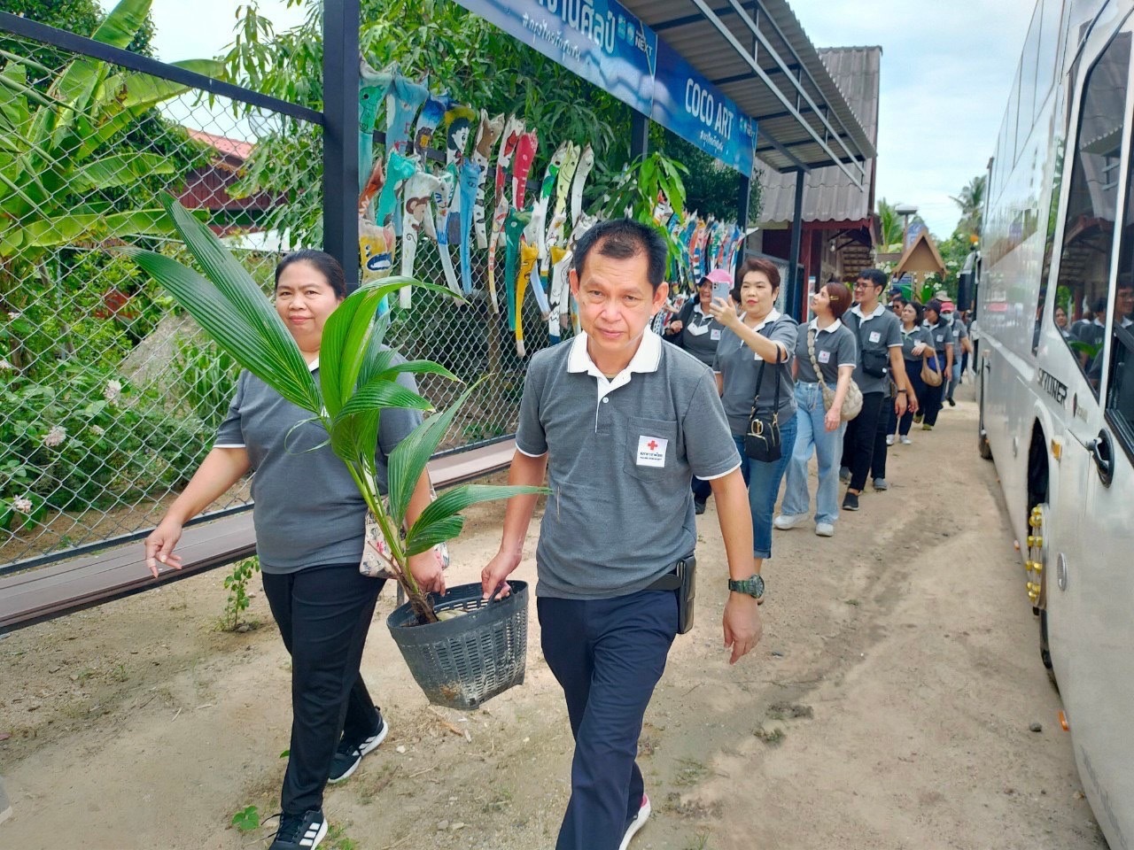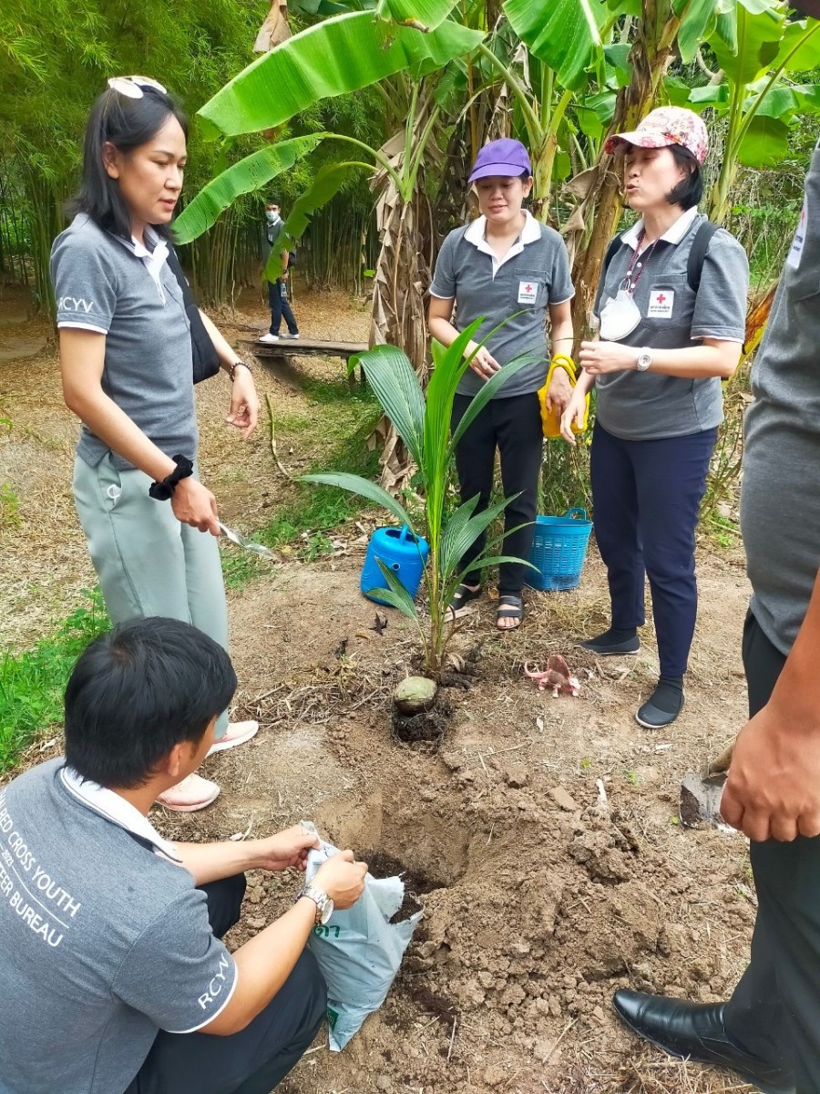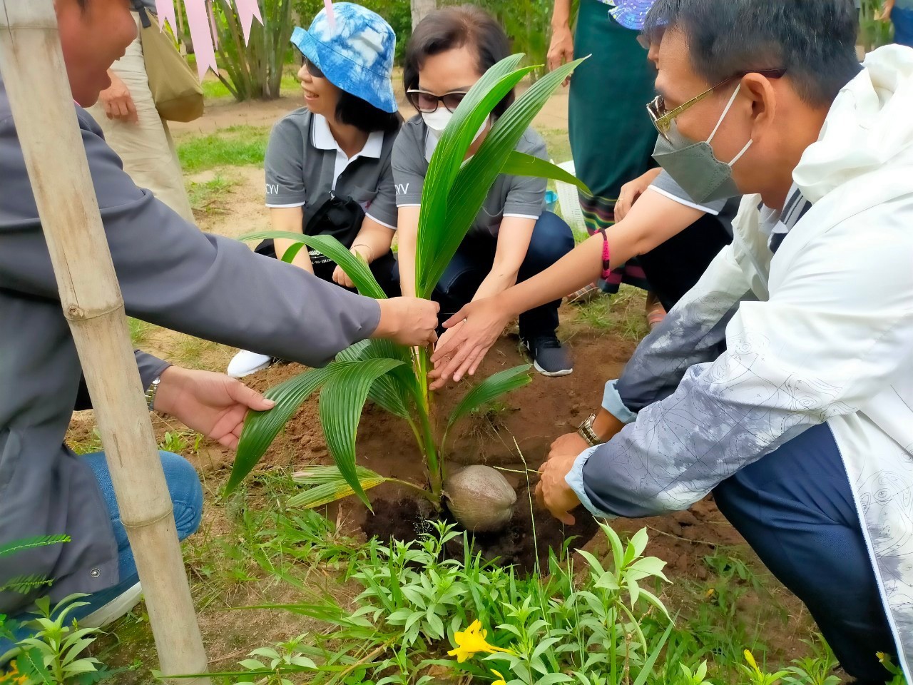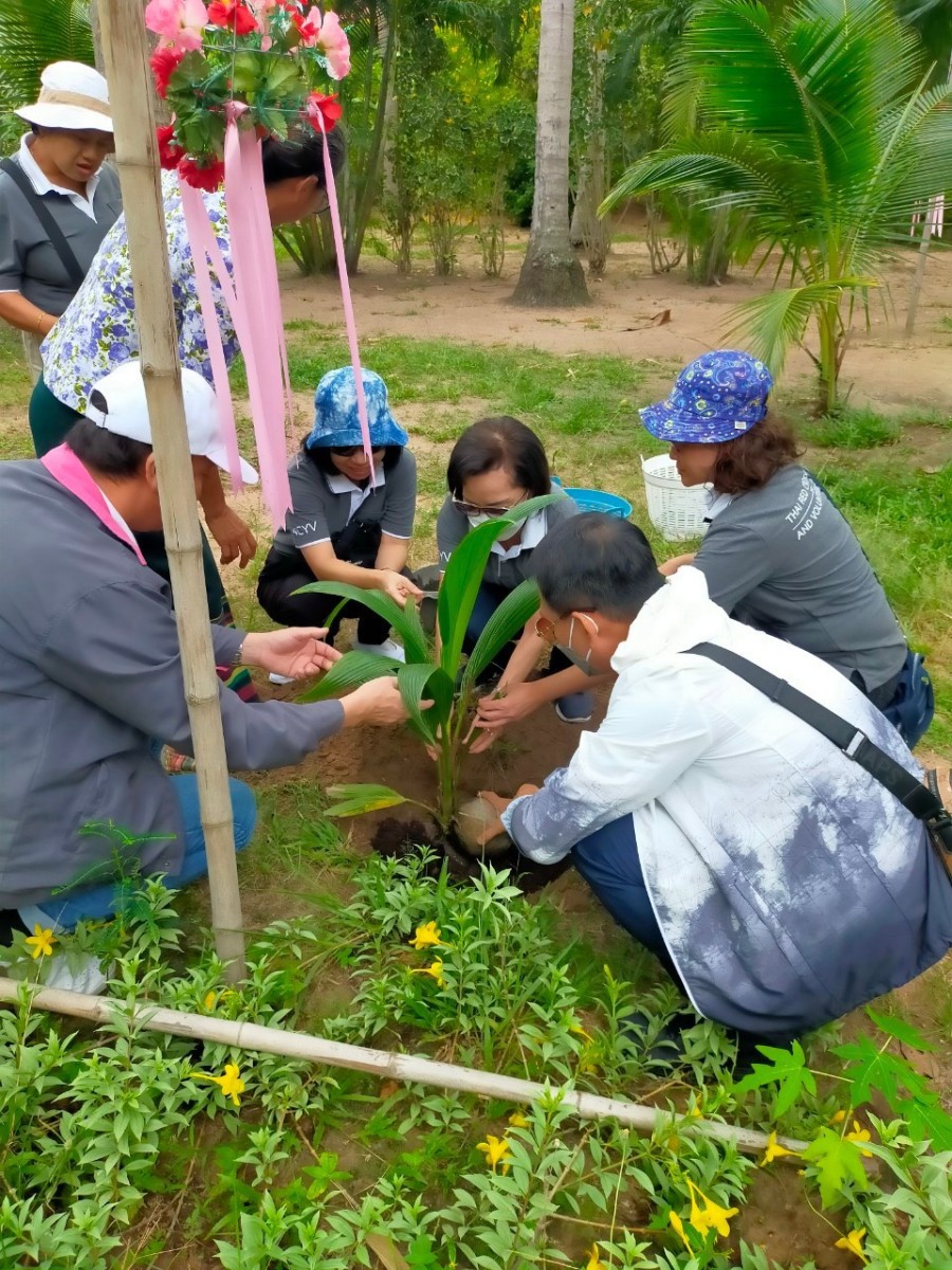 นำบุคลากรในโครงการพัฒนาบุคลากร ฯ ประจำปี 2566 ร่วมกิจกรรมเพื่อชุมชนโดยปลูกต้นมะพร้าว สร้างความยั่งยืน ให้แก่ชุมชน