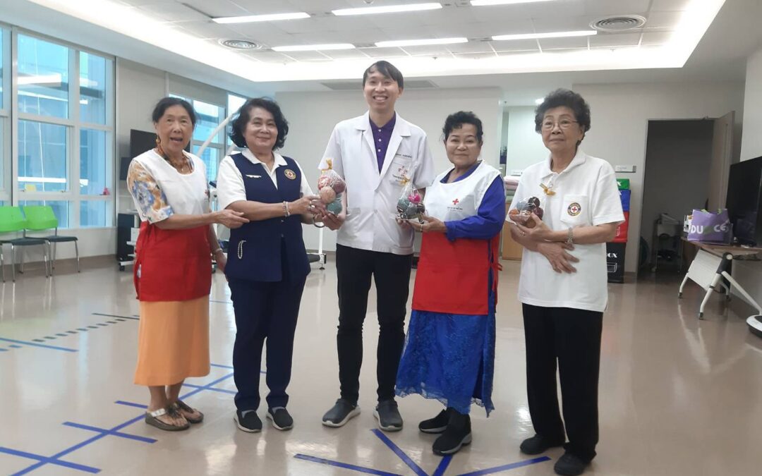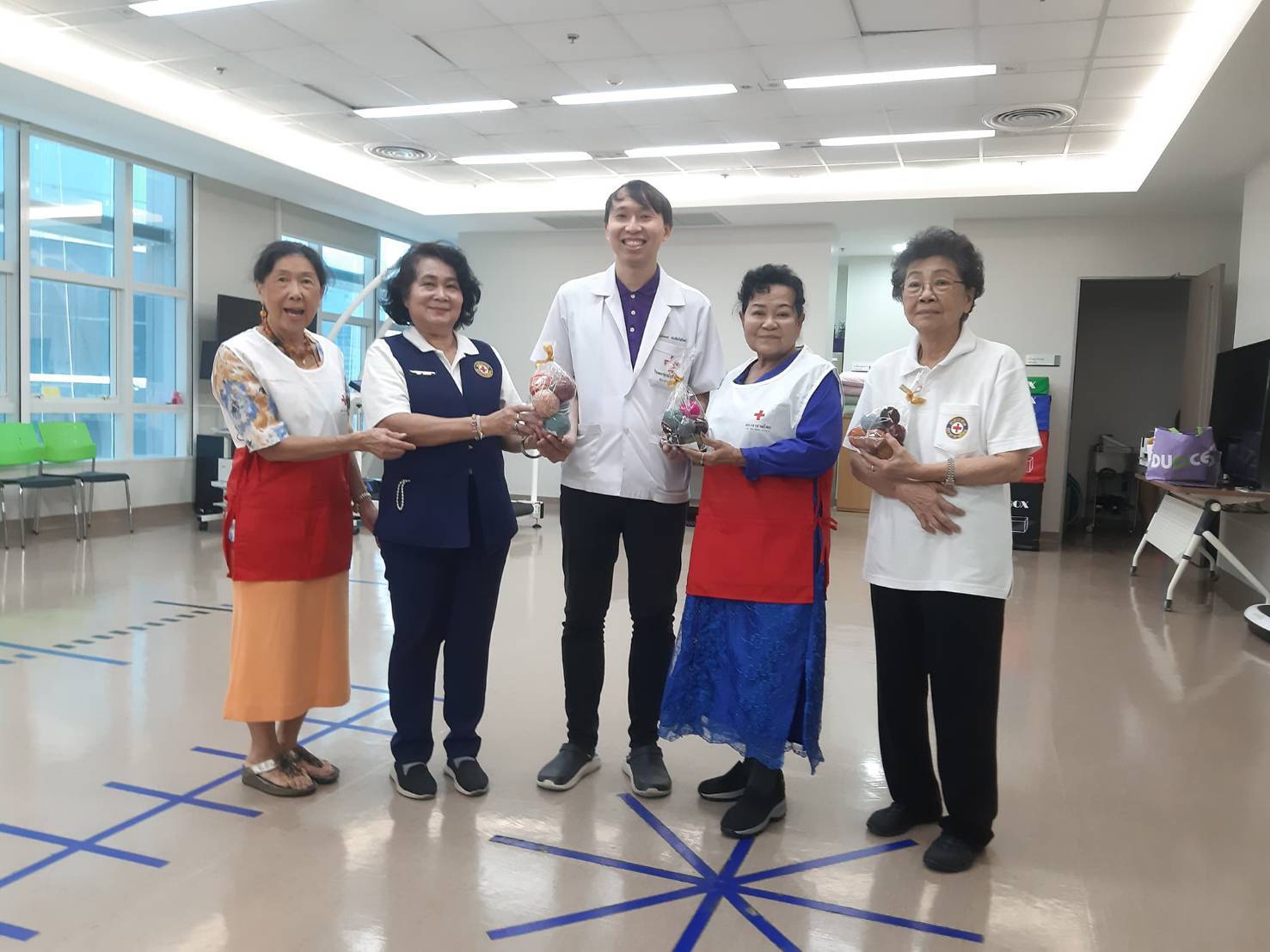 เพื่อผู้ป่วยและสุขภาพมอบลูกบอลบริหารมือจำนวน 30 ชุด โดยเป็นงานฝีมือของอาสาสมัครกาชาดให้กับตัวแทนจากคลีนิคฟื้นฟูการบาดเจ็บจากกีฬา