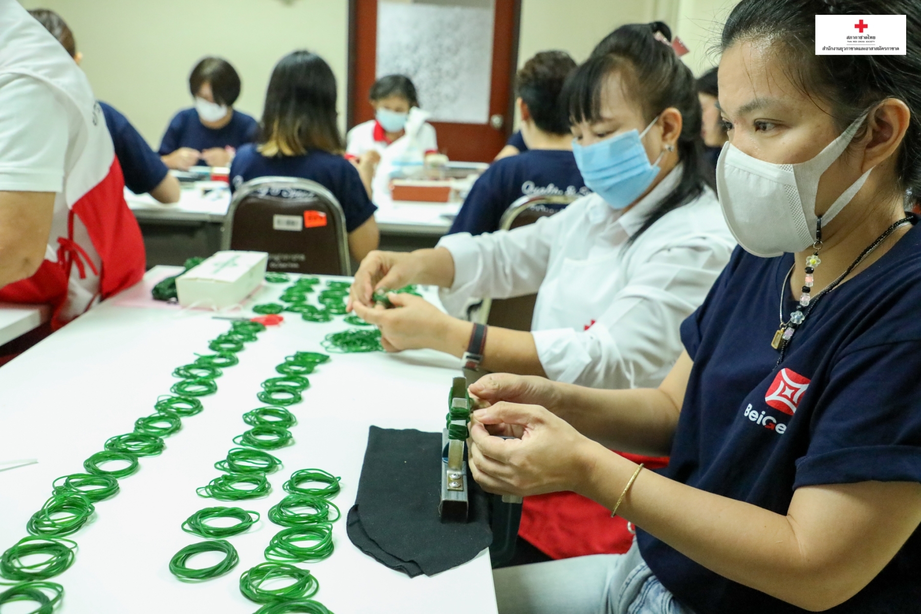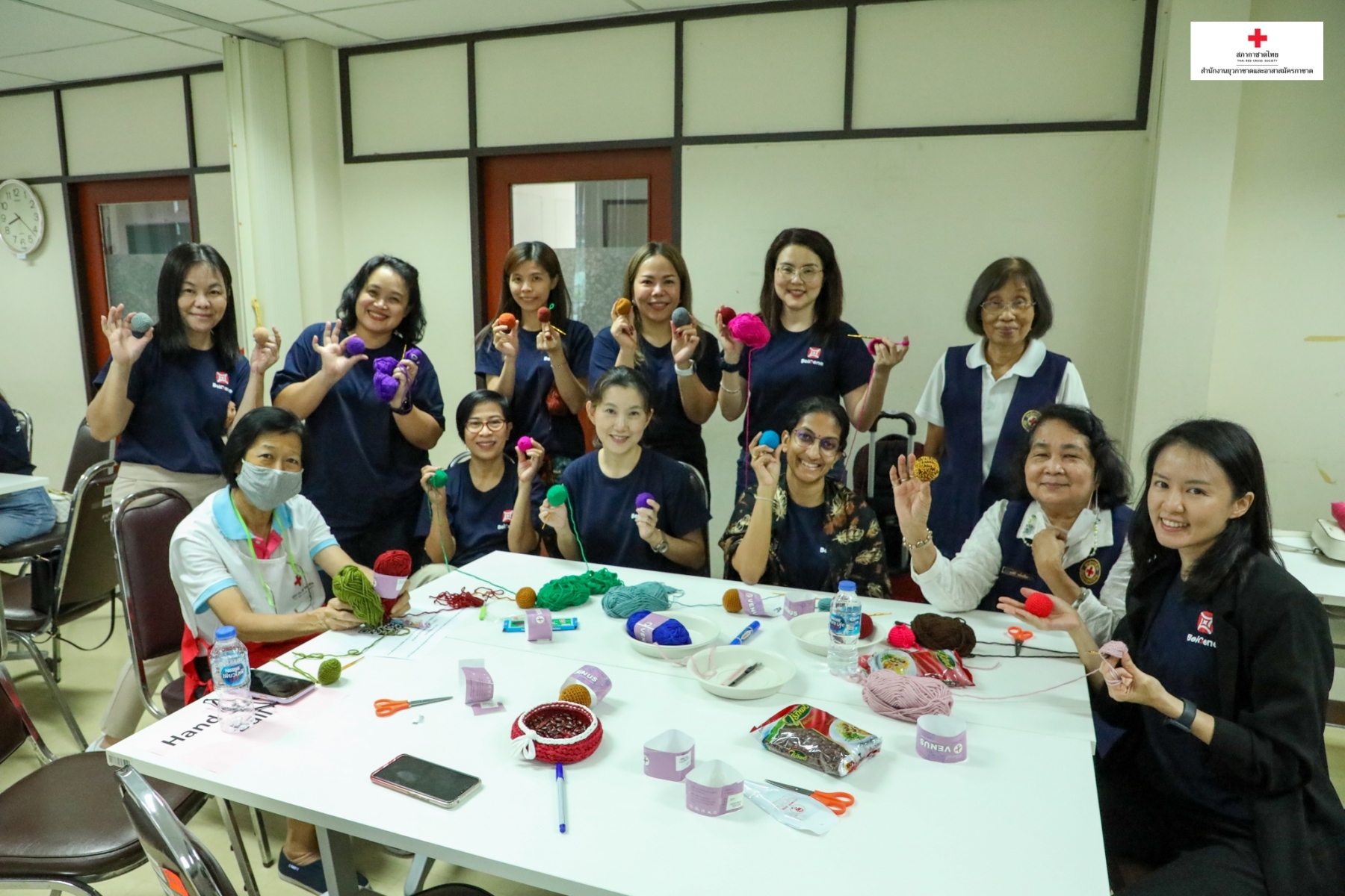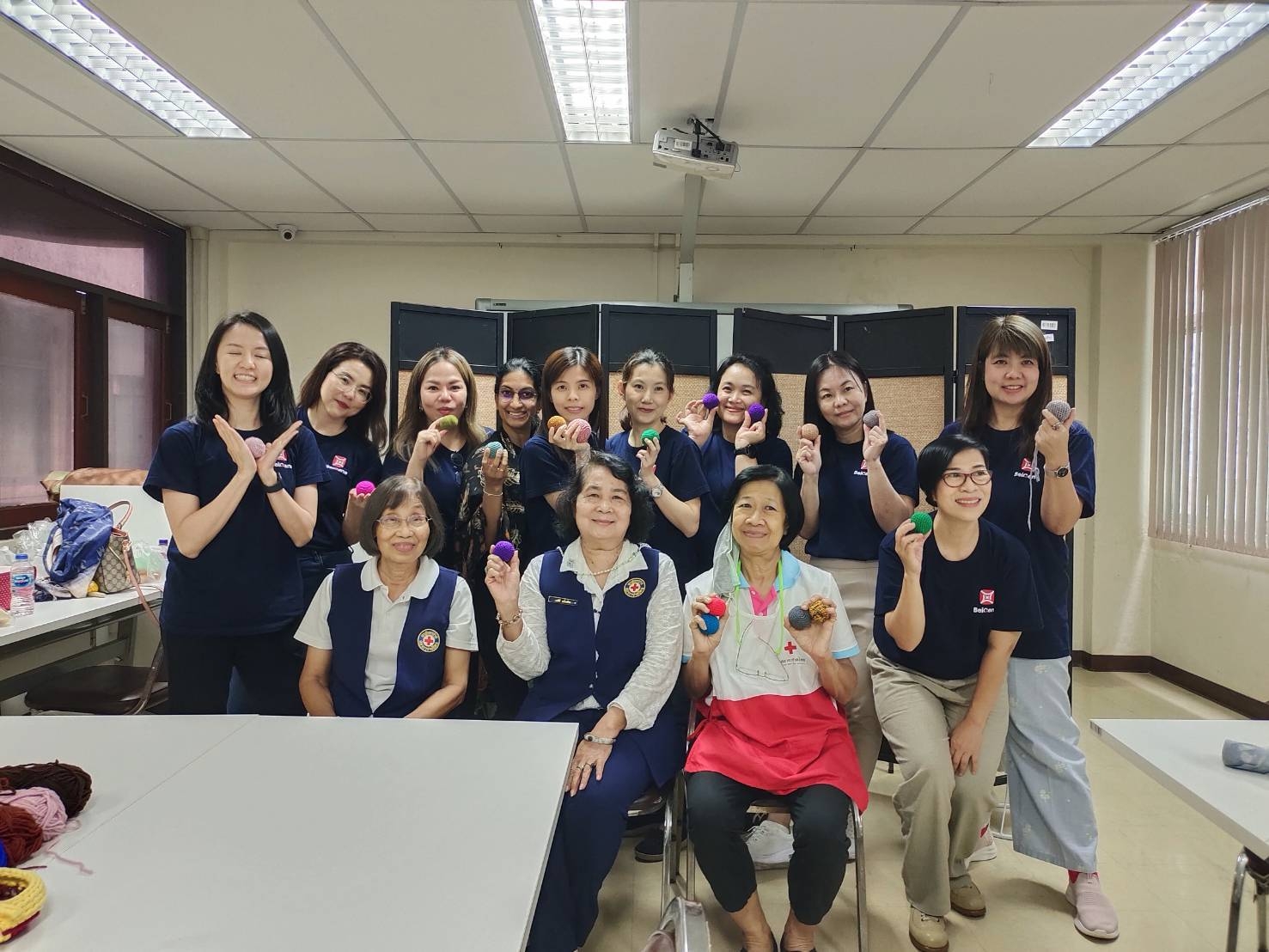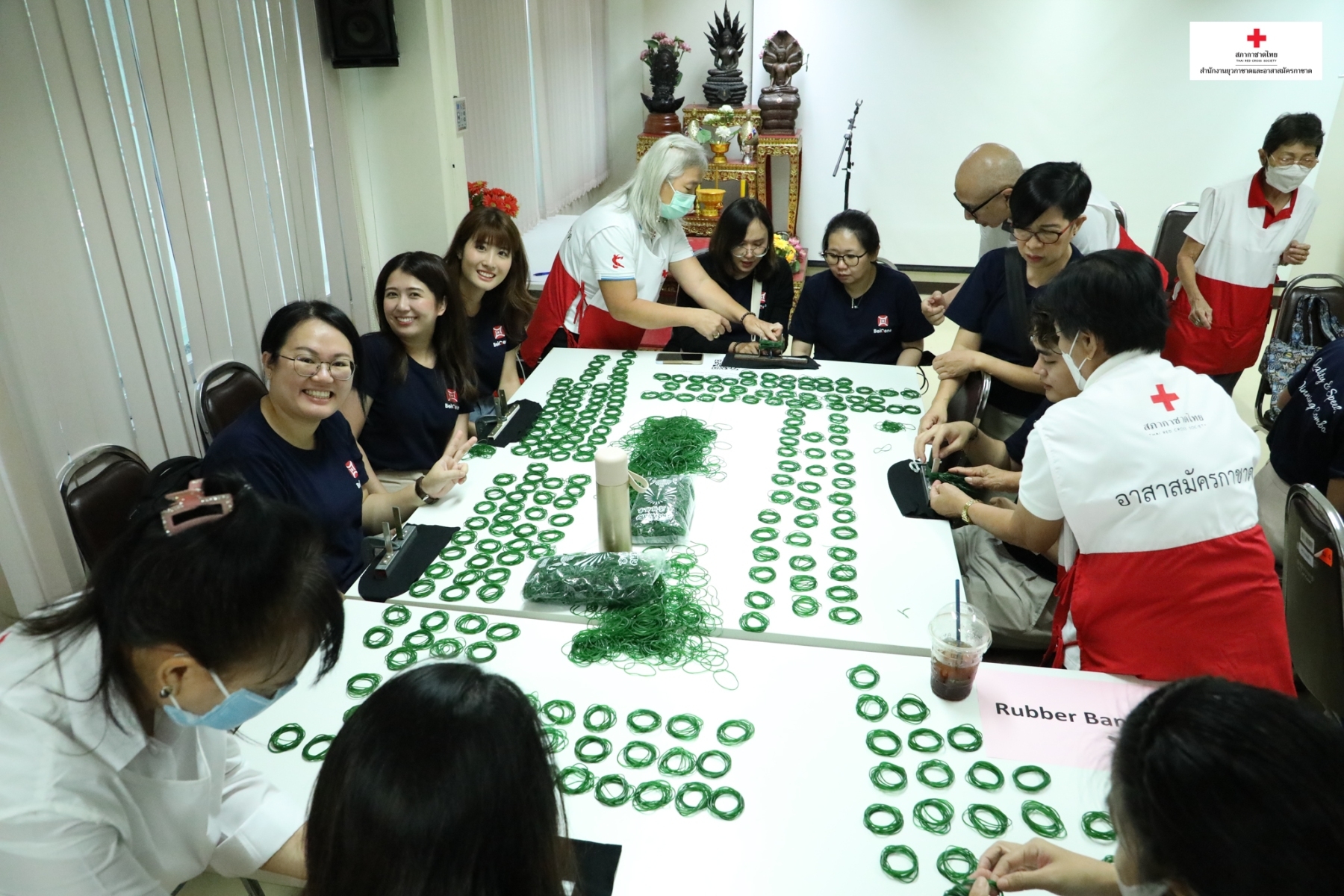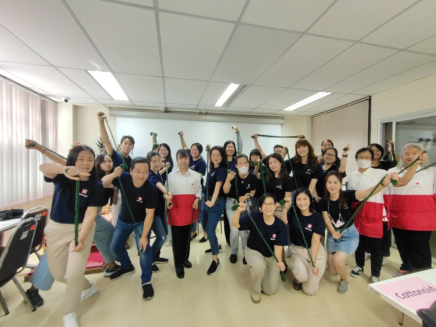 Red Cross Volunteers from Beigene Inc., a total of 26 volunteers, collaborated in voluntary activities with Thai Red Cross Society on 6 October 2023 at Red Cross Youth and Volunteer Bureau. This included 10 Red Cross Volunteers from Red Cross Youth and Volunteer Bureau who worked as volunteer coaches for 3 meaningful activities, which were making “Cottonoid” brain comfort tissues for brain surgery patients, creating “Hand Exercise Balls”, and producing “Stretch Bands” for physical therapy. The resulting products from these three activities will be meticulously conveyed to Chulalongkorn Memorial Hospital for the benefit and assistance of patients in need.