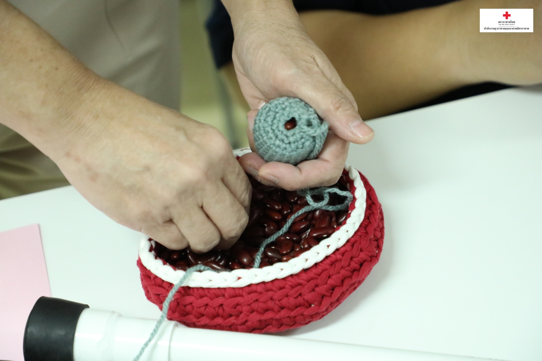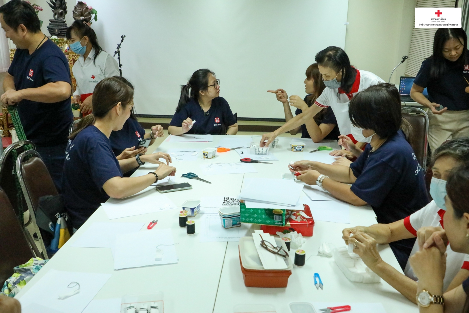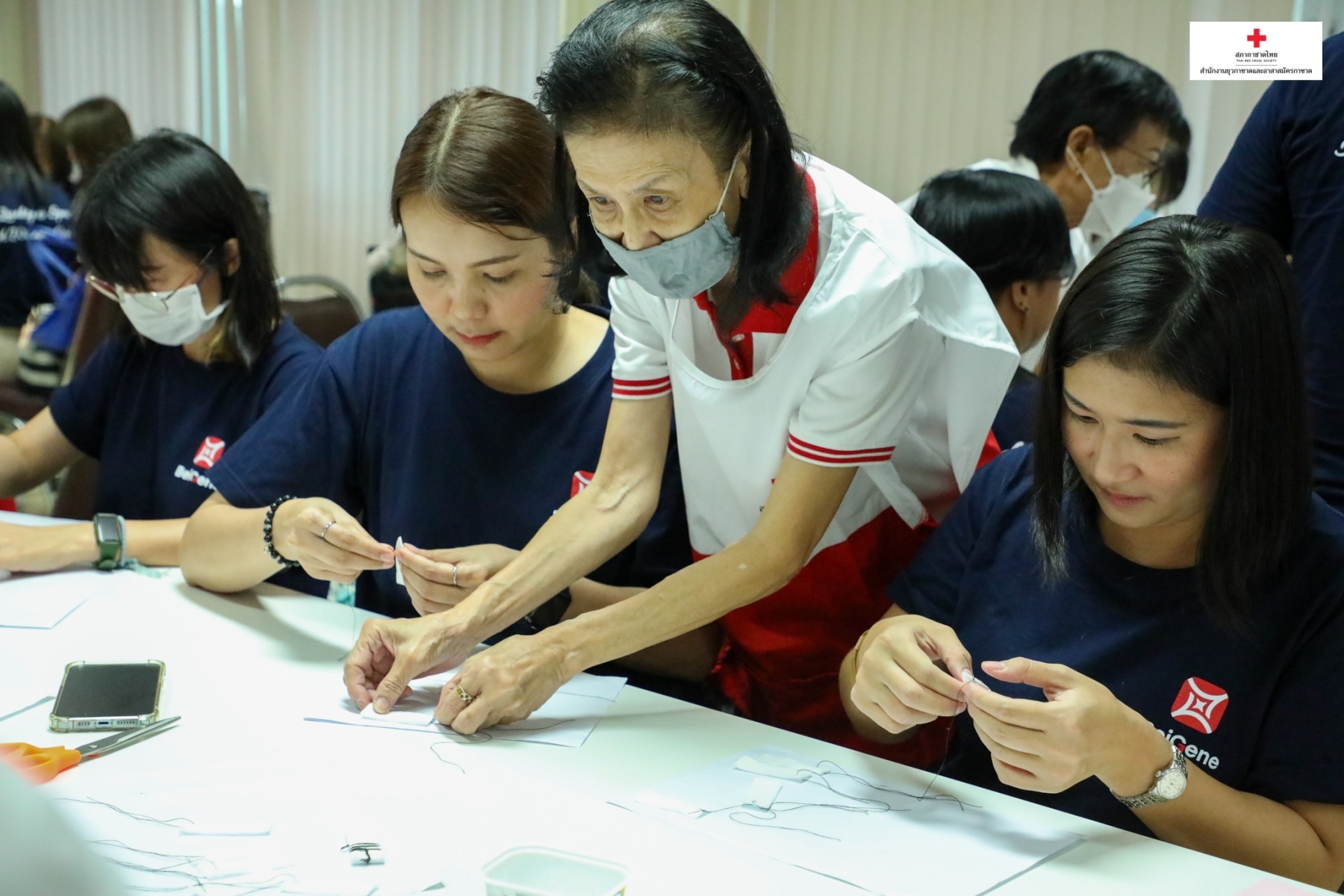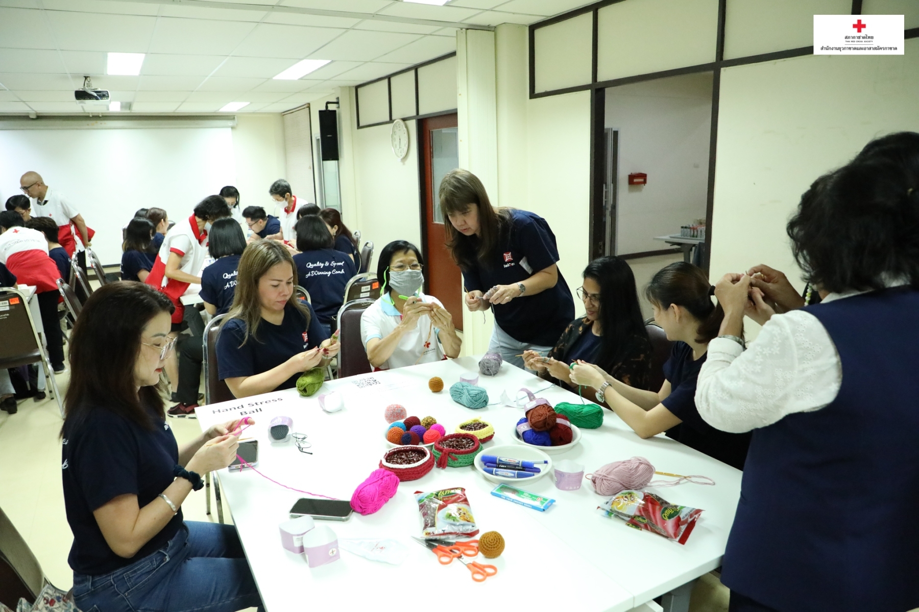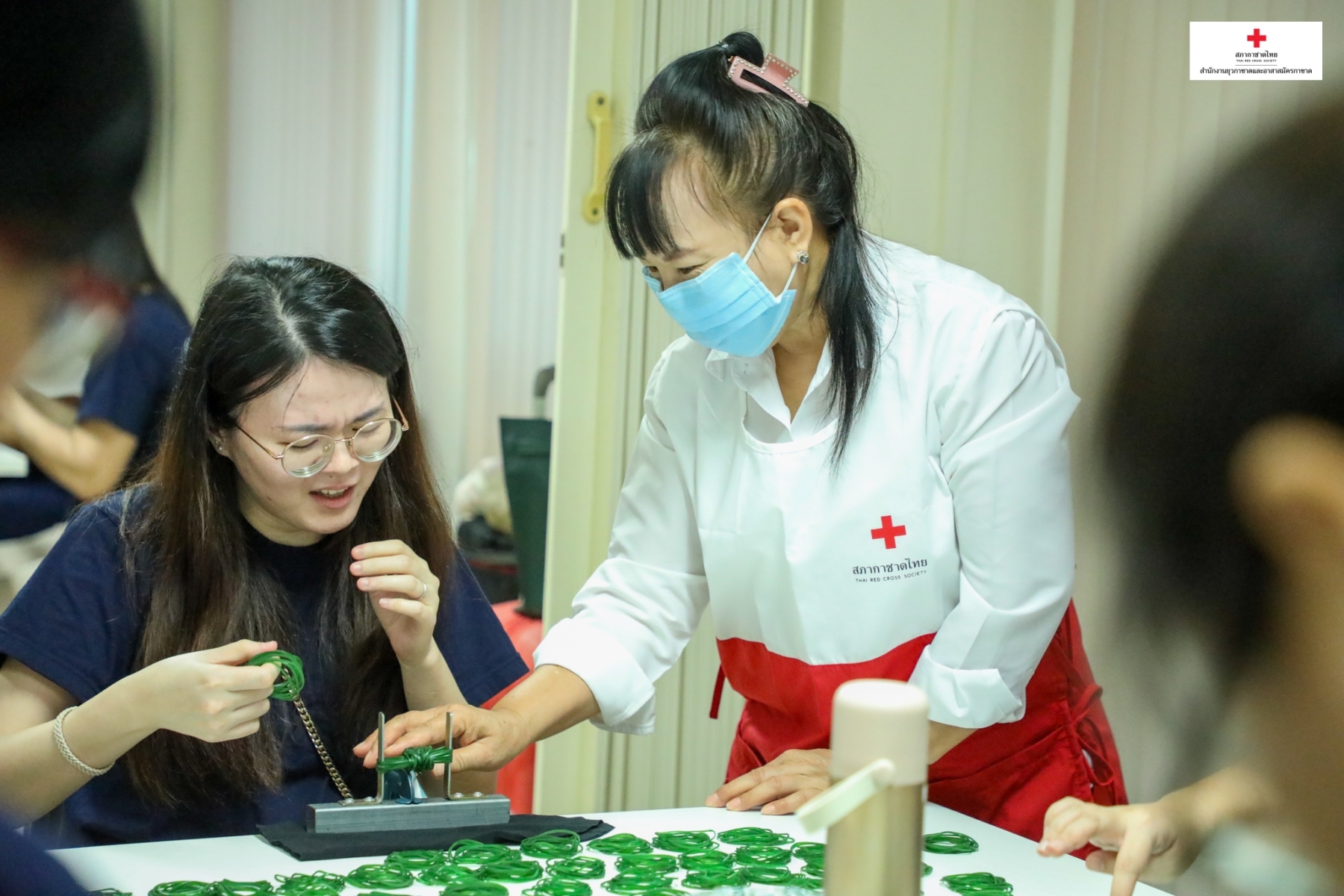 Red Cross Volunteers from Beigene Inc., a total of 26 volunteers, collaborated in voluntary activities with Thai Red Cross Society on 6 October 2023 at Red Cross Youth and Volunteer Bureau. This included 10 Red Cross Volunteers from Red Cross Youth and Volunteer Bureau who worked as volunteer coaches for 3 meaningful activities, which were making “Cottonoid” brain comfort tissues for brain surgery patients, creating “Hand Exercise Balls”, and producing “Stretch Bands” for physical therapy. The resulting products from these three activities will be meticulously conveyed to Chulalongkorn Memorial Hospital for the benefit and assistance of patients in need.