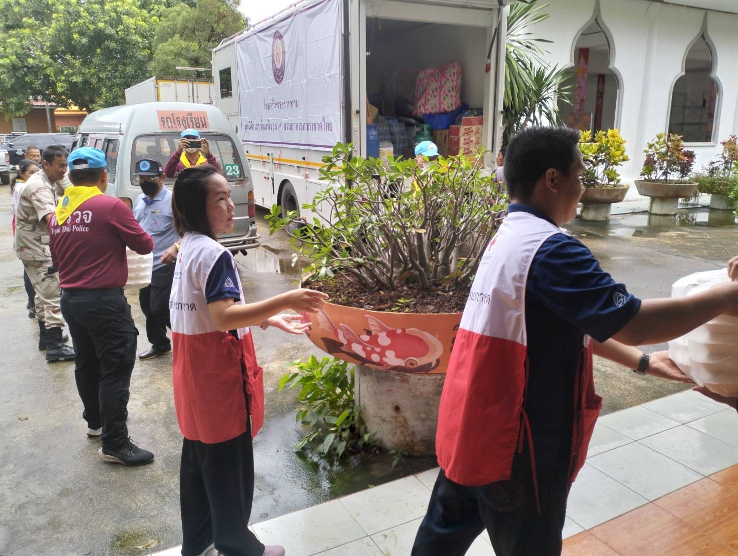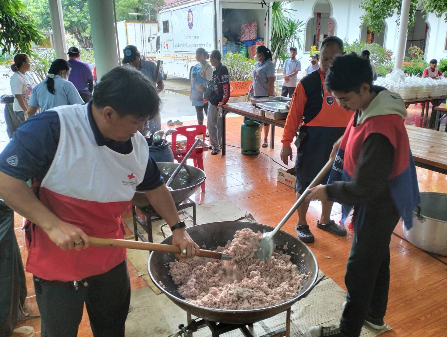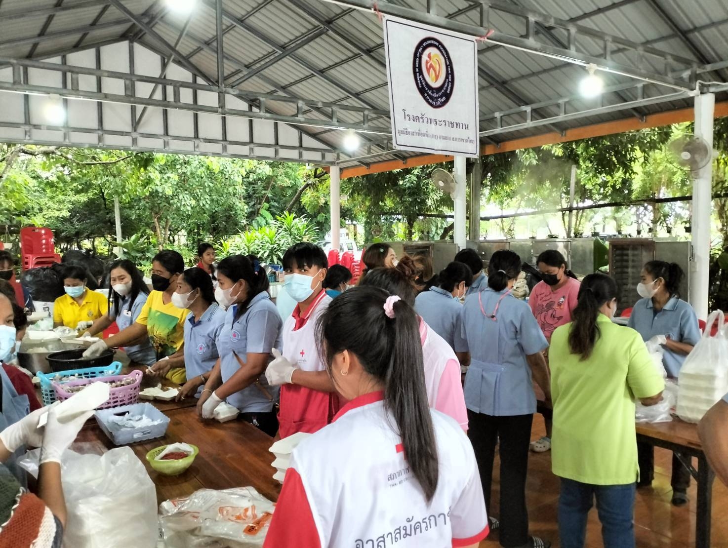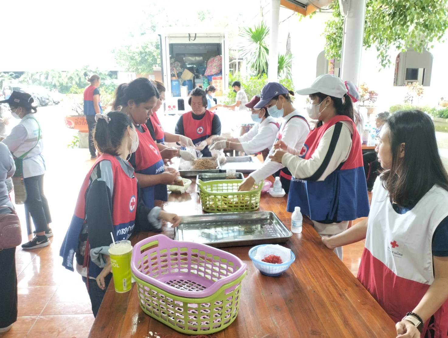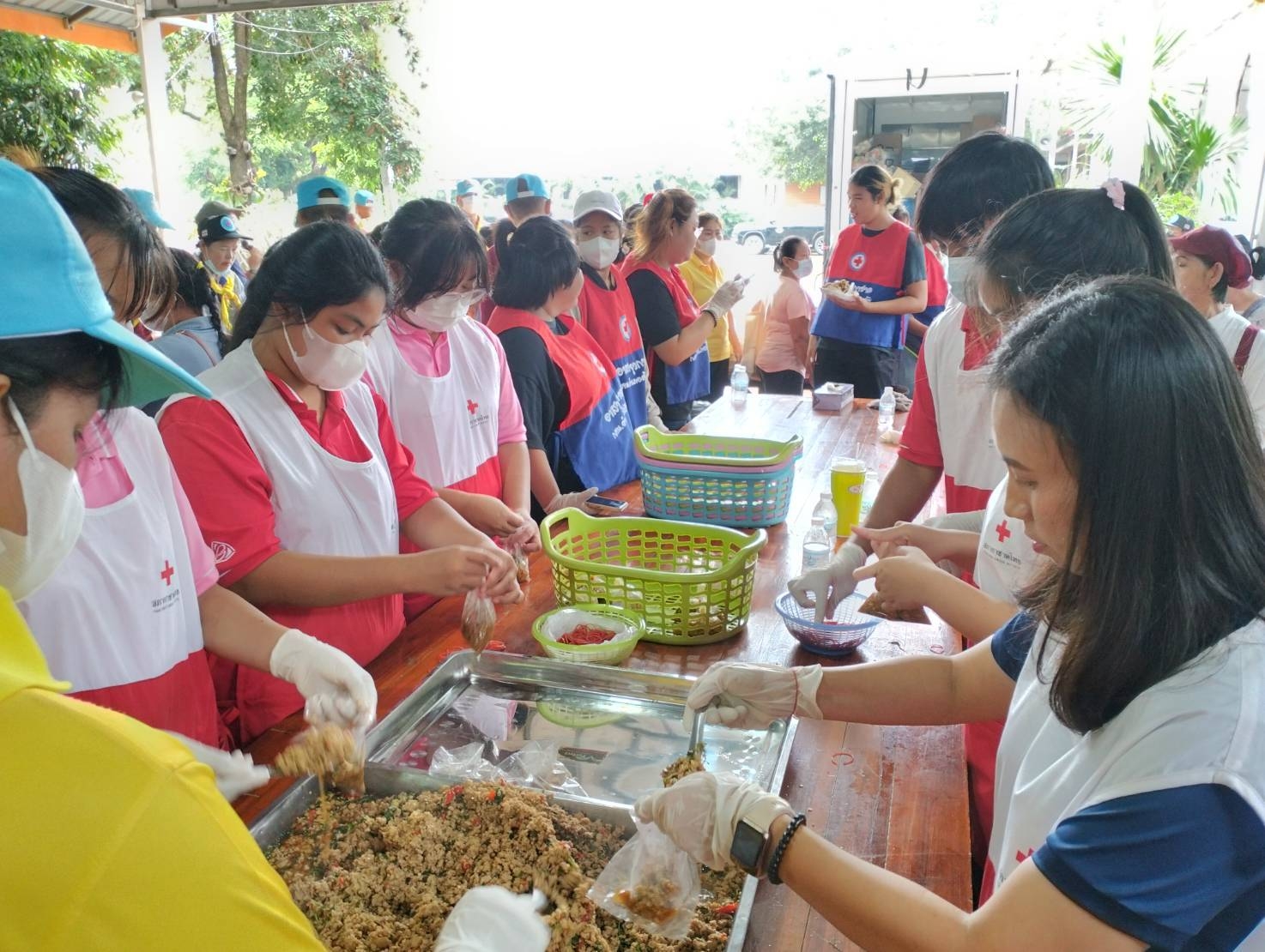 วันที่ 9 ตุลาคม 2566 อาสาสมัครกาชาด สกร.อำเภอศรีสัชนาลัย และโรงเรียนศรีนคร ร่วมประกอบและ บรรจุอาหาร โรงครัวพระราชทาน มูลนิธิอาสาเพื่อนพึ่ง (ภาฯ) ยามยาก สภากาชาดไทย จำนวน 3,000 กล่อง เพื่อแจกจ่ายให้กับประชาชนผู้ได้รับผลกระทบจากเหตุอุทกภัย เพื่อบรรเทาความเดือดร้อนในเบื้องต้น