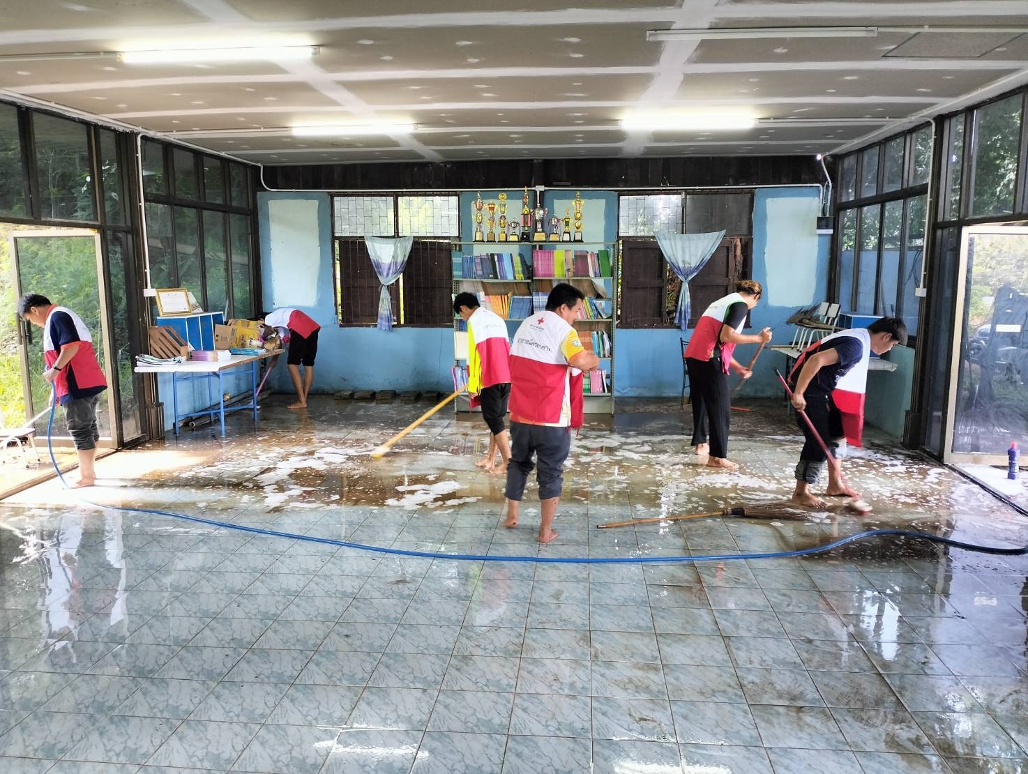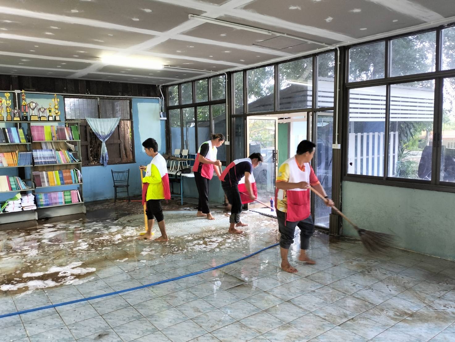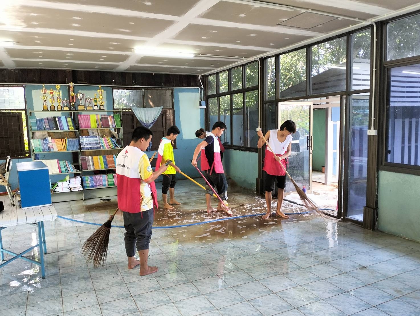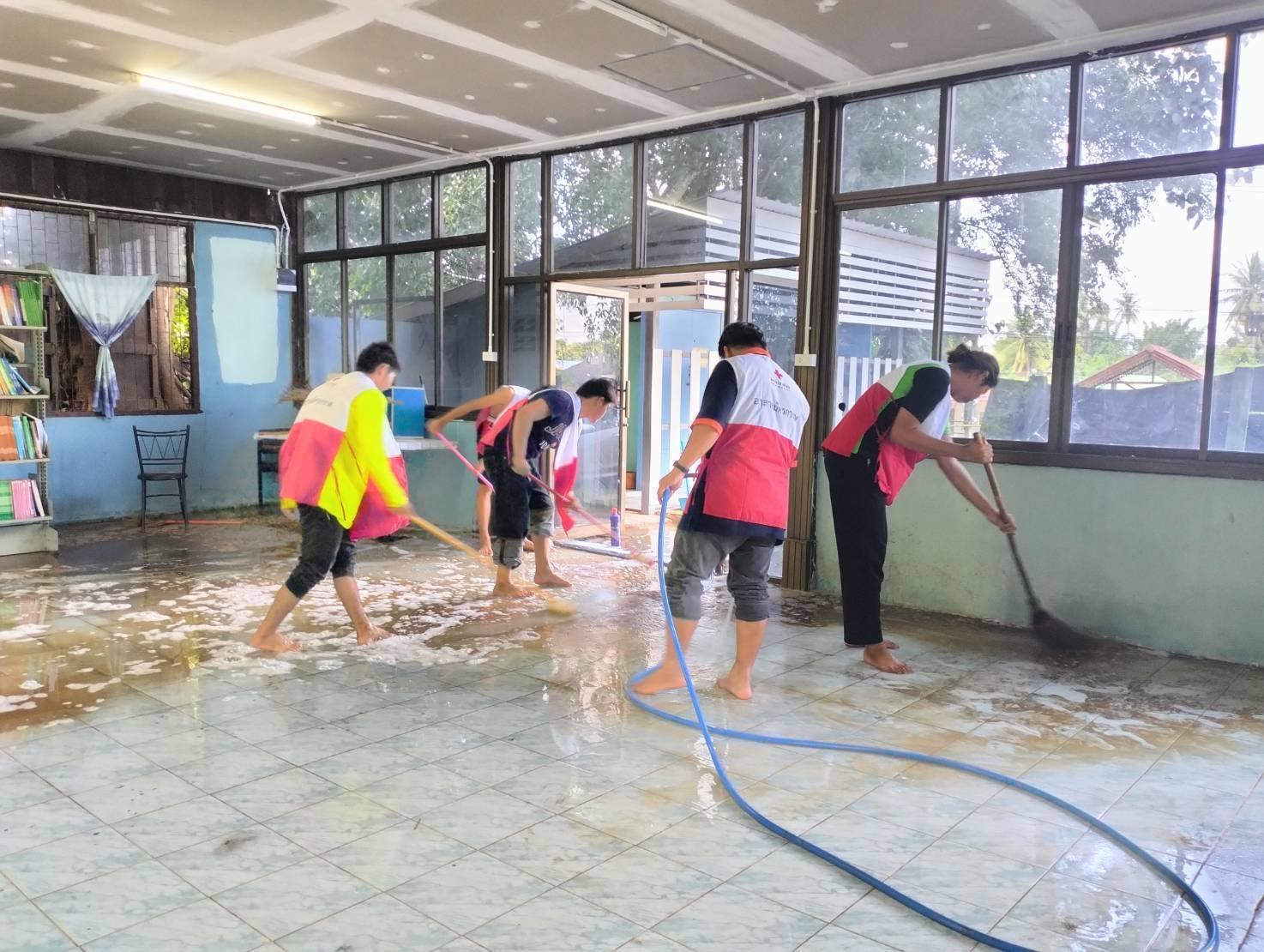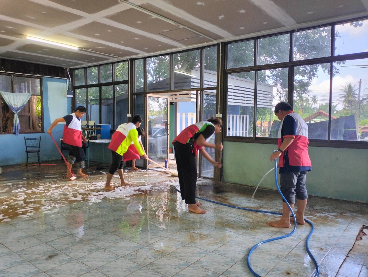 วันที่ 12 ตุลาคม 2566 สกร.อำเภอศรีสัชนาลัย จังหวัดสุโขทัย นำโดย นางสาวจิรวรรณ จันทไชย ผู้อำนวยการ สกร.อำเภอเมืองสุโขทัย รักษาการผู้อำนวยการ สกร.อำเภอศรีสัชนาลัย นำคณะครู นักศึกษา และอาสาสมัครกาชาดจำนวน 16 คน ลงพื้นที่ทำความสะอาดฟื้นฟูบริเวณอาคาร สกร.ตำบลแม่สิน หลังเหตุอุทกภัยน้ำป่าไหลหลากในช่วงสัปดาห์ที่ผ่านมาลดลง