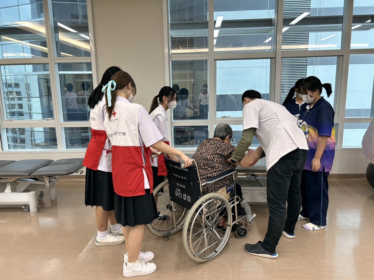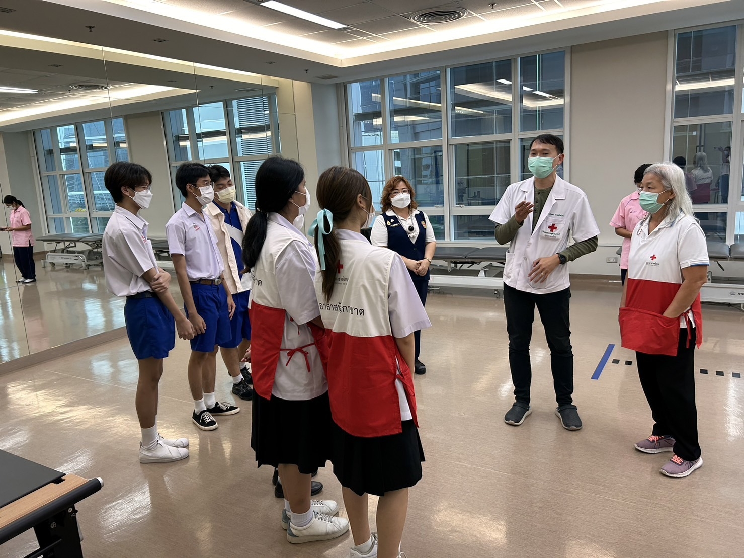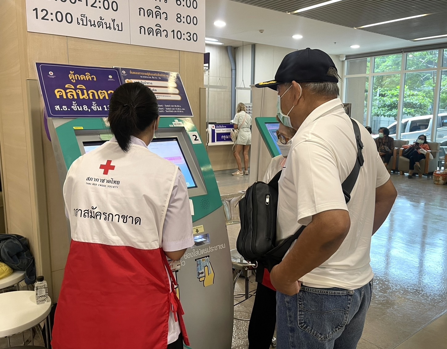 วันที่ 16 ตุลาคม 2566 อาสาสมัครกาชาด สำนักงานยุวกาชาดและอาสาสมัครกาชาด จำนวน 19 คน อำนวยความสะดวกให้กับผู้ป่วยที่มารับบริการผู้ป่วยนอกโรงพยาบาลจุฬาลงกรณ์ ในการให้บริการกดบัตรนำทาง การวัดความดัน ชั่งน้ำหนัก ก่อนพบแพทย์ ตลอดจนการช่วยทำกิจกรรมบำบัด และผู้มารับบริการแผนกต่างๆ ประกอบด้วย พื้นที่ฝ่ายจักษุวิทยา และฝ่ายเวชศาสตร์ฟื้นฟู (คลินิกผู้สูงอายุก้าวหน้า และคลินิกฟื้นฟูการบาดเจ็บจากกีฬา)
