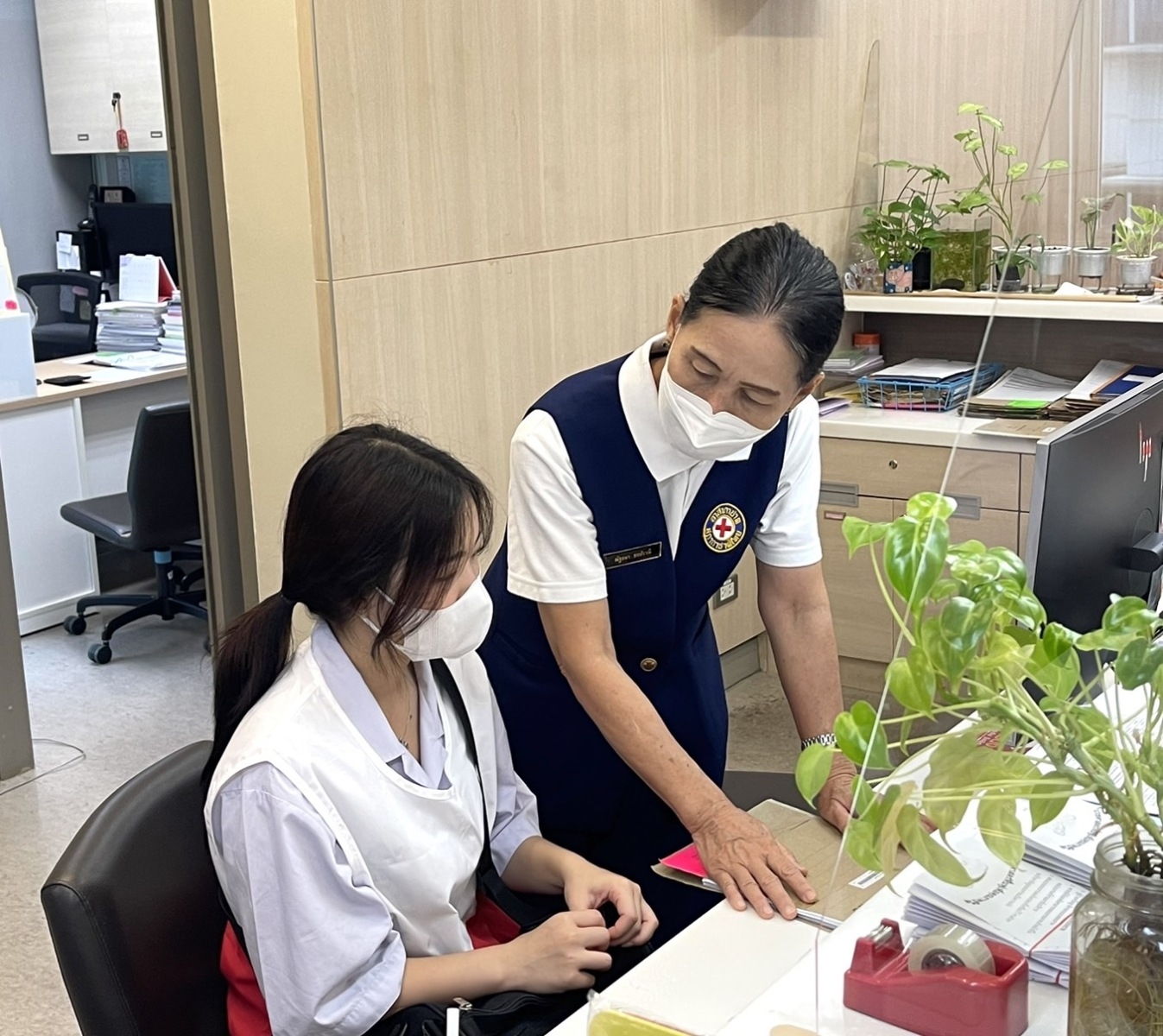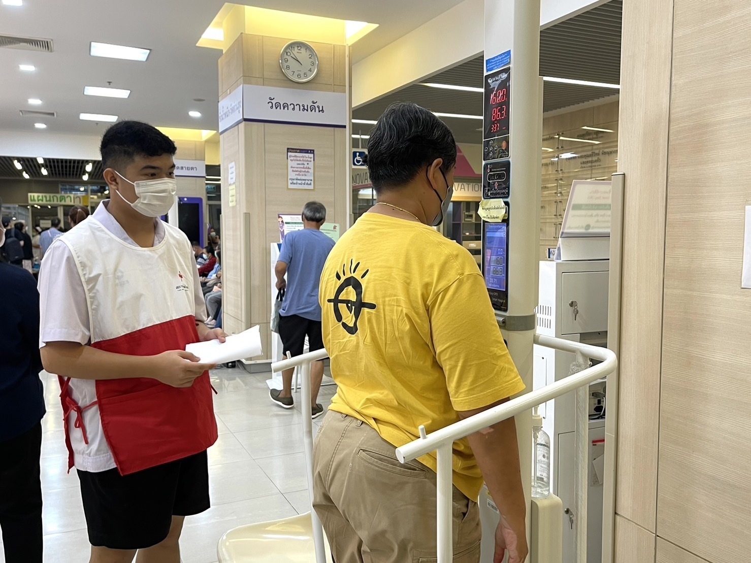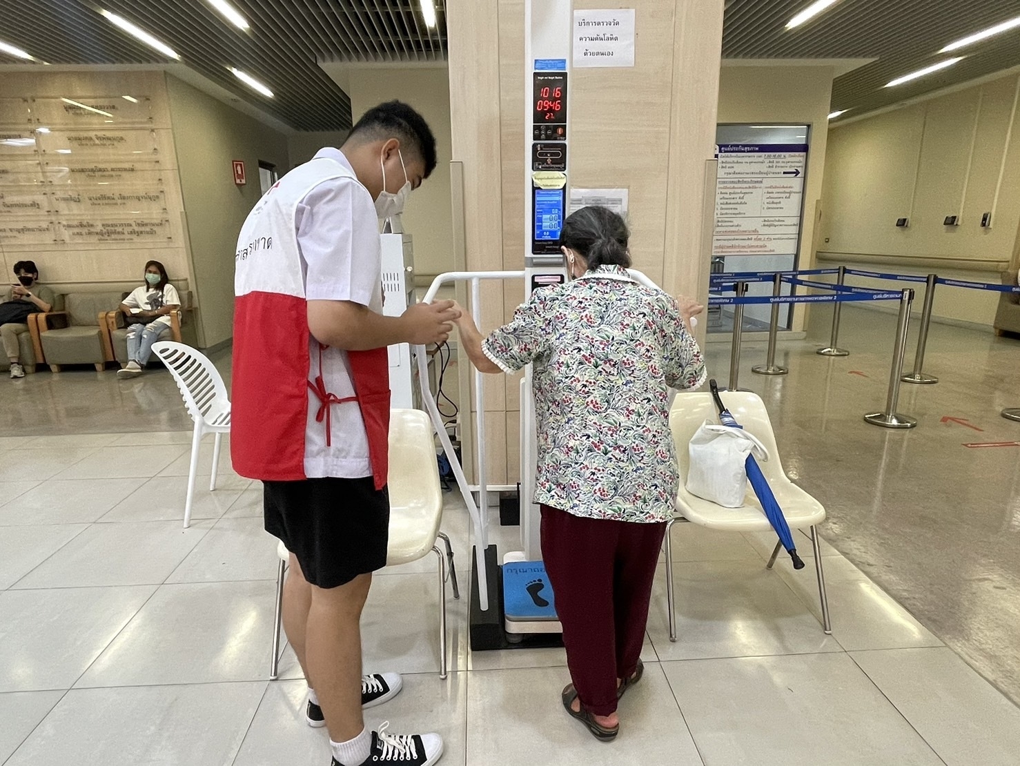 วันที่ 16 ตุลาคม 2566 อาสาสมัครกาชาด สำนักงานยุวกาชาดและอาสาสมัครกาชาด จำนวน 19 คน อำนวยความสะดวกให้กับผู้ป่วยที่มารับบริการผู้ป่วยนอกโรงพยาบาลจุฬาลงกรณ์ ในการให้บริการกดบัตรนำทาง การวัดความดัน ชั่งน้ำหนัก ก่อนพบแพทย์ ตลอดจนการช่วยทำกิจกรรมบำบัด และผู้มารับบริการแผนกต่างๆ ประกอบด้วย พื้นที่ฝ่ายจักษุวิทยา และฝ่ายเวชศาสตร์ฟื้นฟู (คลินิกผู้สูงอายุก้าวหน้า และคลินิกฟื้นฟูการบาดเจ็บจากกีฬา)