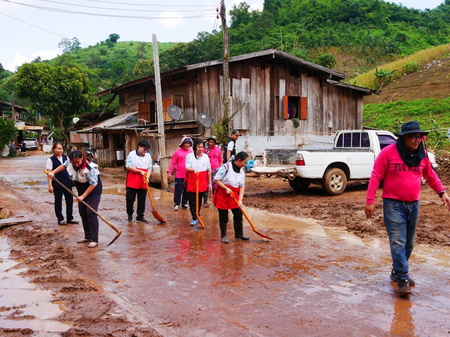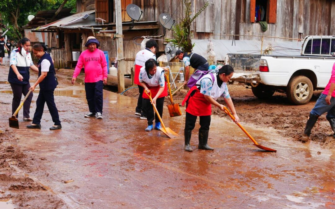 วันที่ 18 ตุลาคม 2566 อาสาสมัครกาชาด สกร.อำภอเชียงม่วน จังหวัดพะเยา ร่วมกับ กิ่งกาชาดอำเภอเชียงม่วน และการปกครองส่วนท้องถิ่น มอบเครื่องอุปโภค บริโภค ให้กับประชาชนที่ได้รับผลกระทบจากเหตุการณ์น้ำป่าไหลหลาก และดินโคลมถล่ม พร้อมทำความสะอาดพื้นที่ในหมู่บ้านที่ได้รับความเสียหายจากเหตุการณ์ในครั้งนี้ ตลอดจนลงพื้นที่ติดตามผู้สูญหายร่วมกับเจ้าหน้าที่กู้ภัยและชาวบ้าน ณ บ้านห้วยก้างปลา หมู่ที่ 13 ตำบลสระ อำเภอเชียงม่วน จังหวัดพะเยา