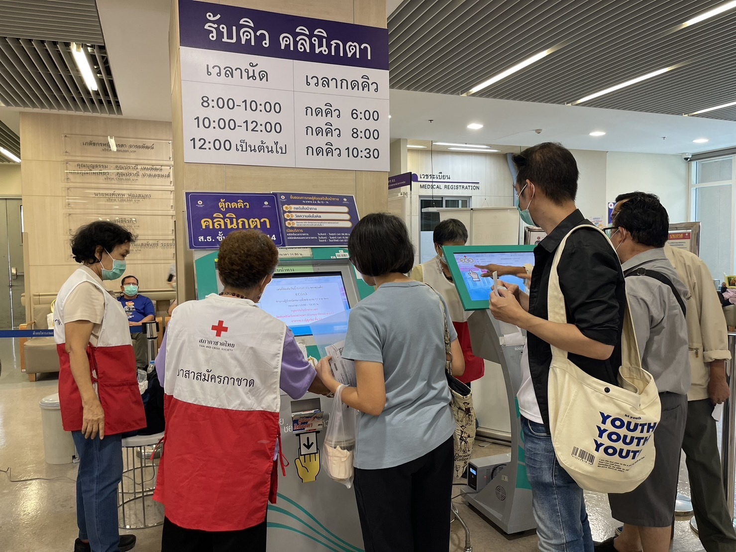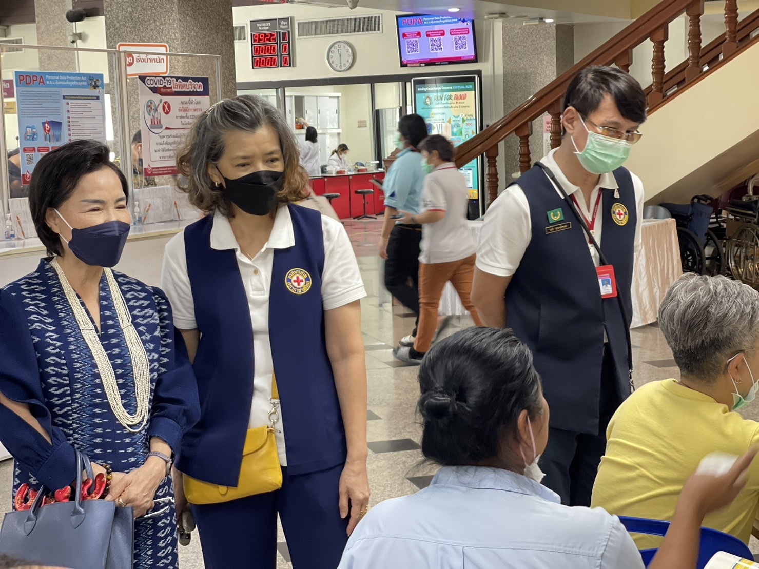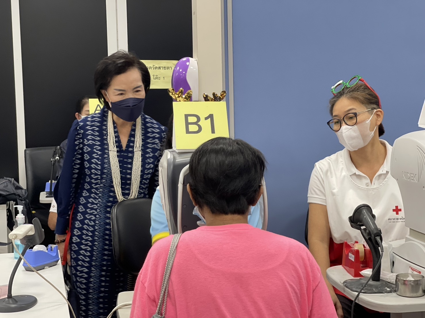 นางสุนันทา ศรอนุสิน ผู้อำนวยการสำนักงานยุวกาชาดและอาสาสมัครกาชาด สภากาชาดไทย ให้กำลังใจทีมงานอาสาสมัครกาชาด สภากาชาดไทย ในการ อำนวยความสะดวกให้แก่ผู้ป่วยนอก
