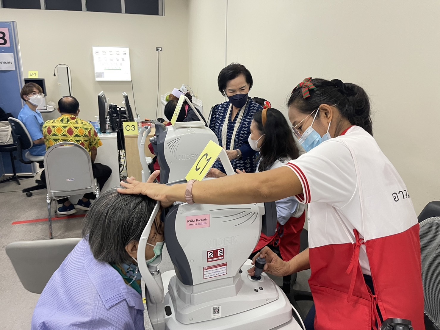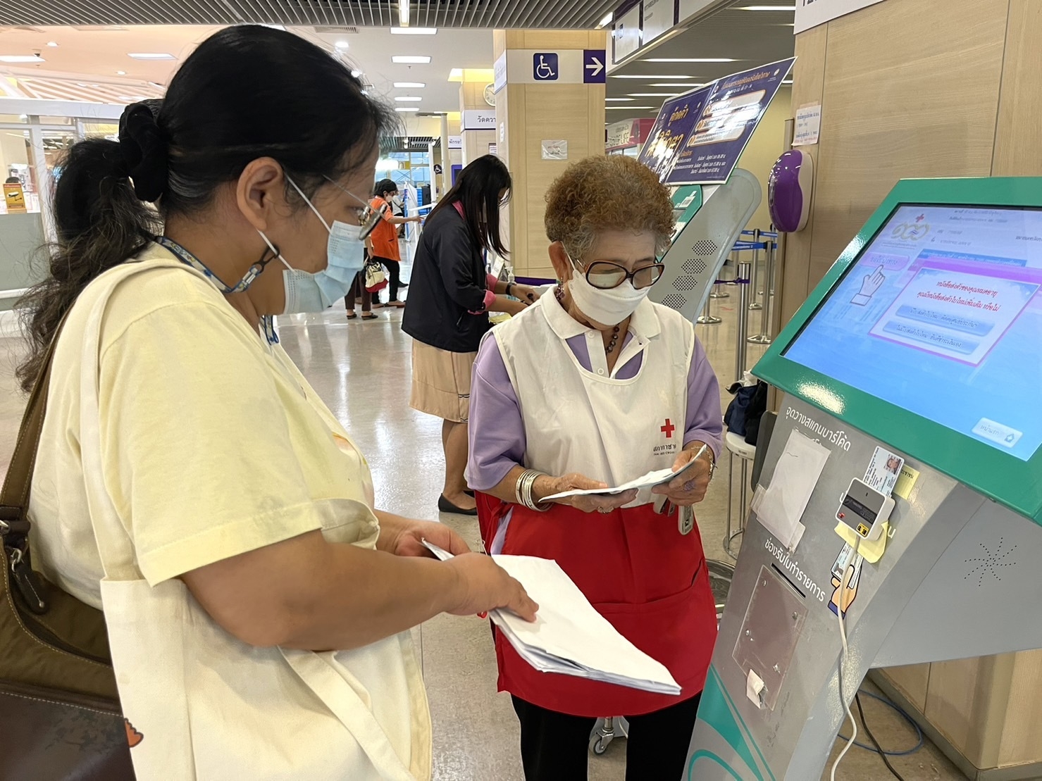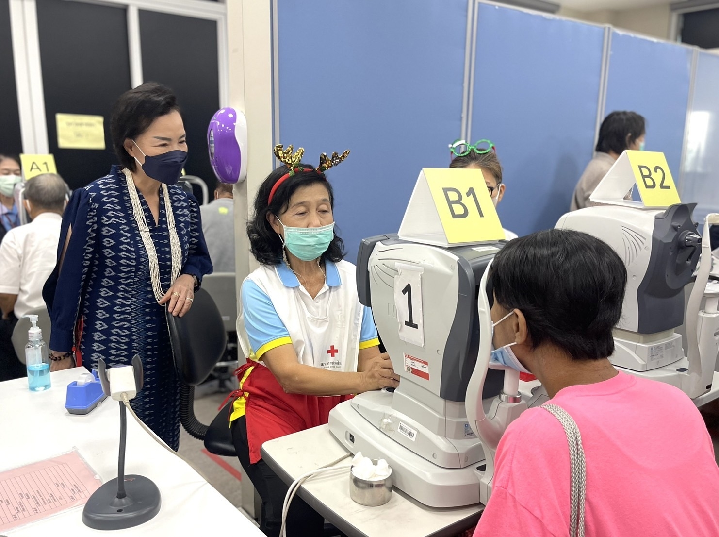 นางสุนันทา ศรอนุสิน ผู้อำนวยการสำนักงานยุวกาชาดและอาสาสมัครกาชาด สภากาชาดไทย ให้กำลังใจทีมงานอาสาสมัครกาชาด สภากาชาดไทย ในการ อำนวยความสะดวกให้แก่ผู้ป่วยนอก