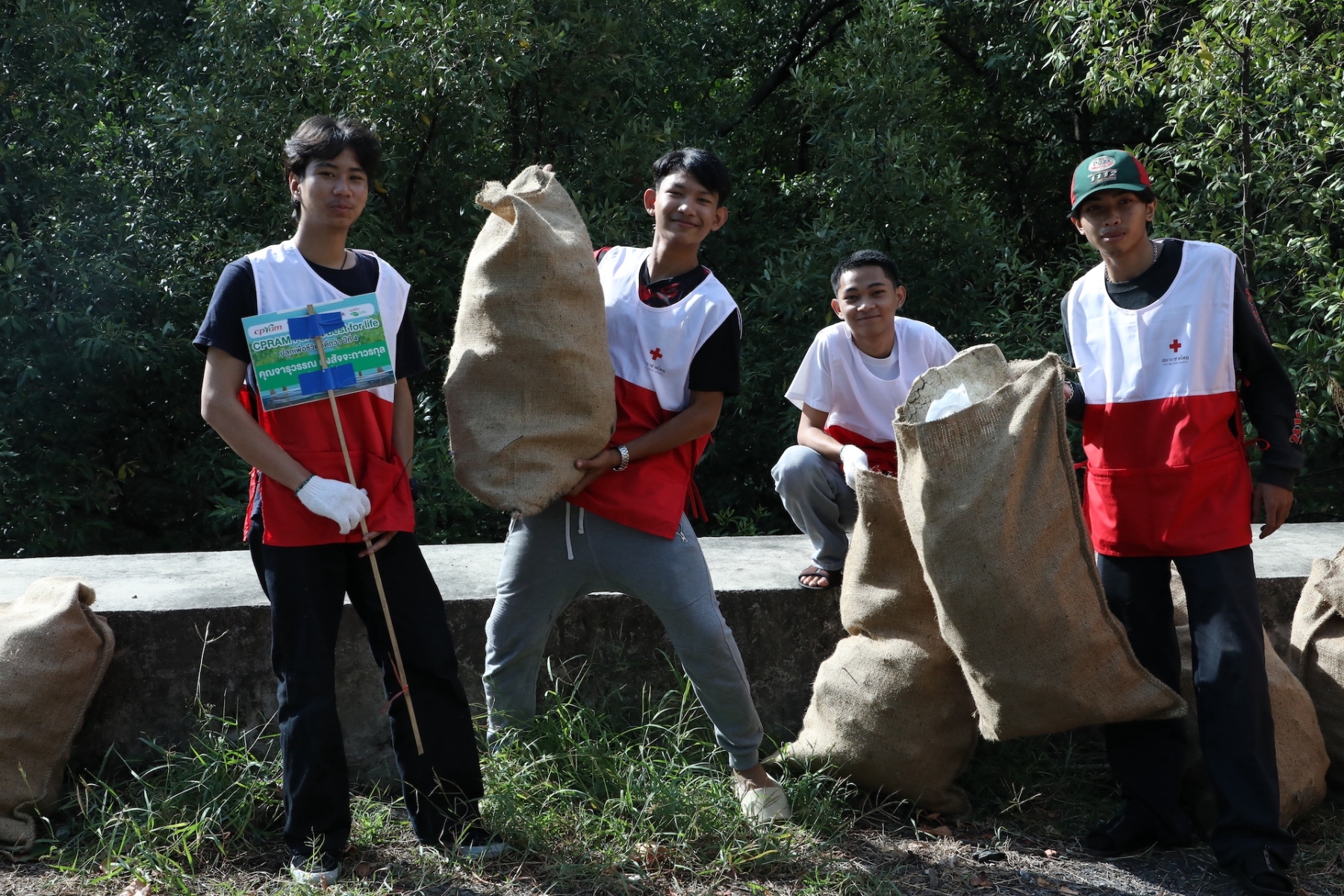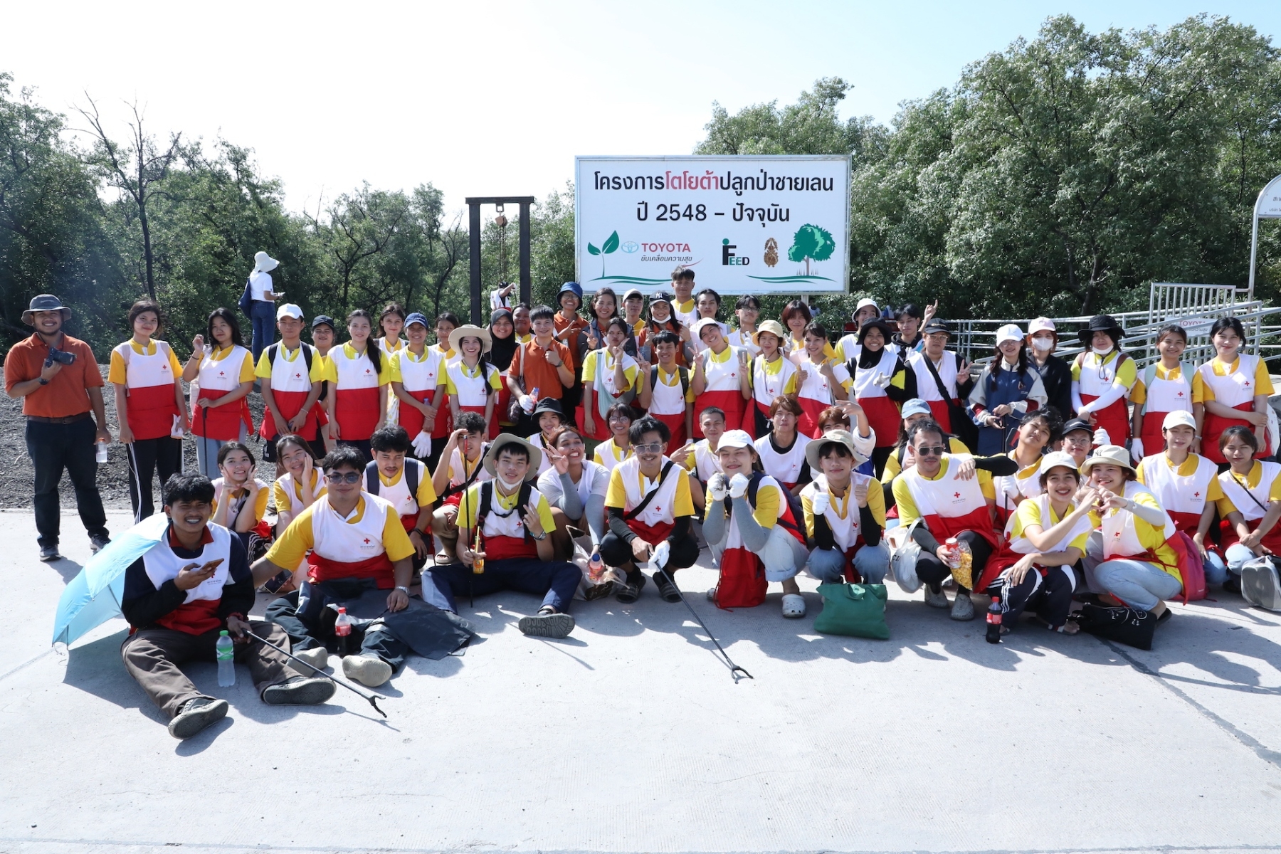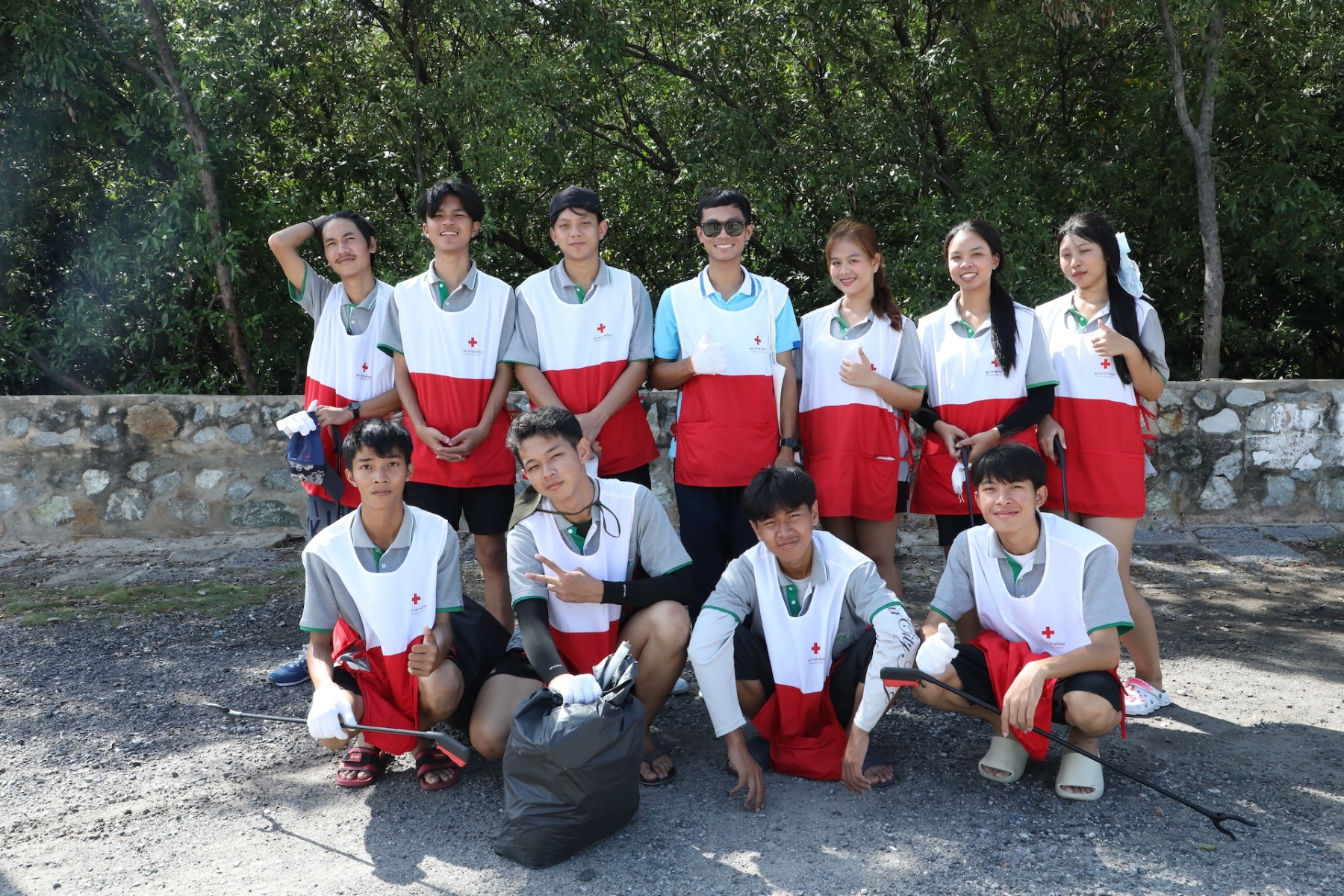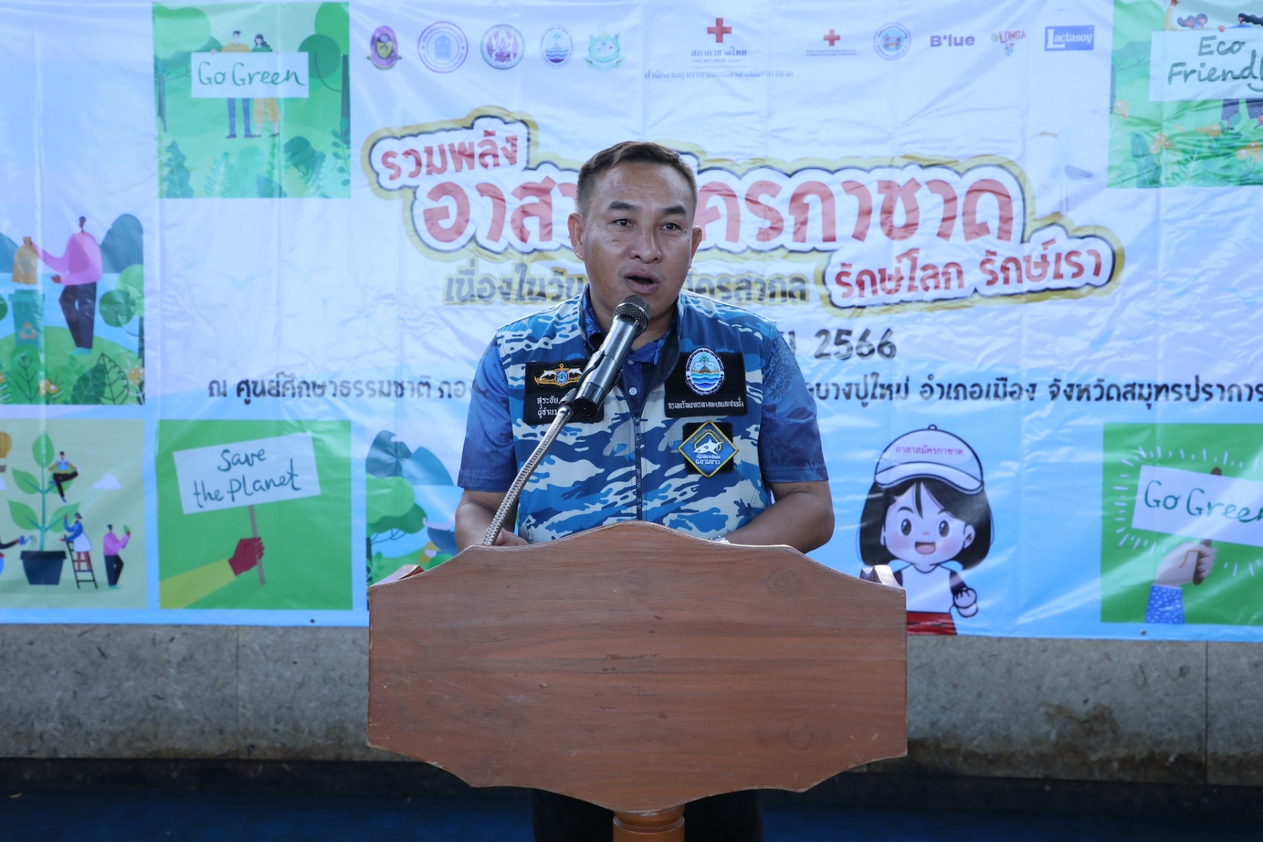 โครงการ “รวมพลังอาสาสมัครกาชาด รักษ์โลก รักษ์เรา” เนื่องในวันอาสาสมัครสากล จัดขึ้นเพื่อมุ่งหวังในการเพิ่มพื้นที่สีเขียว และคงความสมบูรณ์ของพื้นที่ธรรมชาติ อันจะเป็นการส่งเสริมให้อาสาสมัครได้มีส่วนร่วมในการรักษาทรัพยากรธรรมชาติ และสิ่งแวดล้อม นำไปสู่ความยั่งยืน SDGs ต่อไปในอนาคต จึงได้ร่วมกับภาคีเครือข่าย อาทิ ศึกษาธิการจังหวัดสมุทรปราการ สำนักงานทรัพยากรทางทะเลและชายฝั่งที่ 2 จังหวัดสมุทรปราการ เทศบาลตำบลบางปู อาสาสมัครกาชาด พร้อมด้วยเจ้าหน้าที่จากกองสถานพักผ่อน กรมพลาธิการทหารบก ร่วมกันเก็บขยะตลอดแนวชายฝั่ง ระยะทาง 3 กิโลเมตร โดยสามารถเก็บขยะทะเล และขยะตกค้างในระบบนิเวศได้ทั้งสิ้น จำนวน 1,040 กิโลกรัม จำแนกเป็นขยะพลาสติก และลำไม้ไผ่ มากเป็นอันดับต้น โดยขยะที่อาสาสมัครร่วมกันเก็บขึ้นมานั้น จะถูกนำไปคัดแยกประเภทขยะตามมาตรฐาน ICC โดยสำนักงานทรัพยากรทางทะเลและชายฝั่งที่ 2 จังหวัดสมุทรปราการ และจะนำไปทำลายตามกระบวนการที่ถูกต้องต่อไป ทั้งนี้ได้รับความสนับสนุนการขนย้ายขยะจากเทศบาลตำบลบางปู จังหวัดสมุทรปราการ
