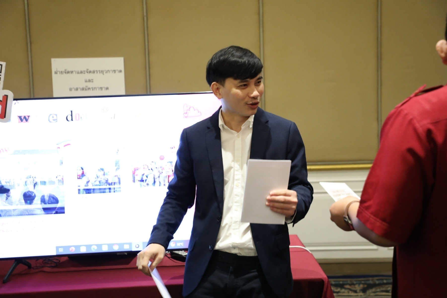 จากนั้นในช่วงบ่าย มีการเสาวนาในหัวข้อ “สรรพ์เสวนา งานอาสาพาสุข” โดยได้รับเกียรติจากอาสาสมัครกาชาด ได้แก่ Mr. Jonas Anderson ศิลปินจิตอาสา นางสาวชนนิกานต์ สุพิทยาพร