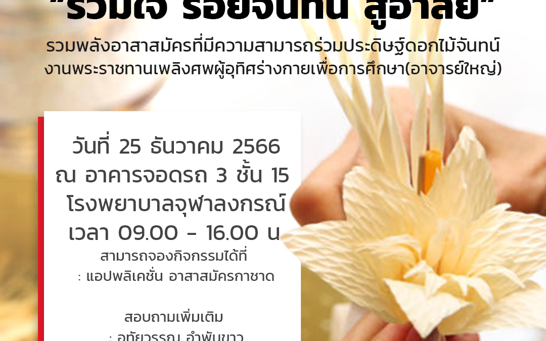 รวมพลังอาสาสมัครผู้มีความสามารถในการประดิษฐ์ดอกไม้จันทน์ เพื่อสนันสนุนงานพระราชทานเพลิงศพผู้อุทิศร่างกายเพื่อการศึกษา (อาจารย์ใหญ่)