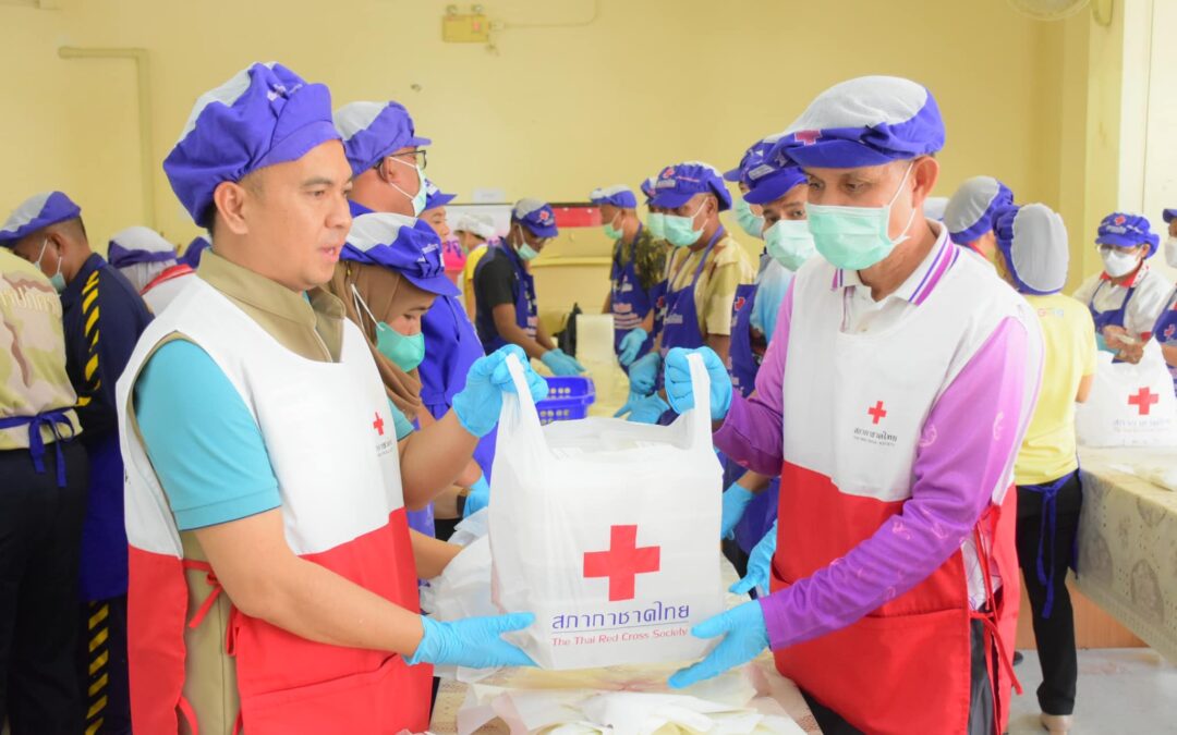 ปฏิบัติงานครัวเคลื่อนที่สภากาชาดไทย เพื่อจัดเตรียมอาหารนำไปช่วยเหลือผู้ประสบอุทกภัยจำนวน 3,000 กล่อง