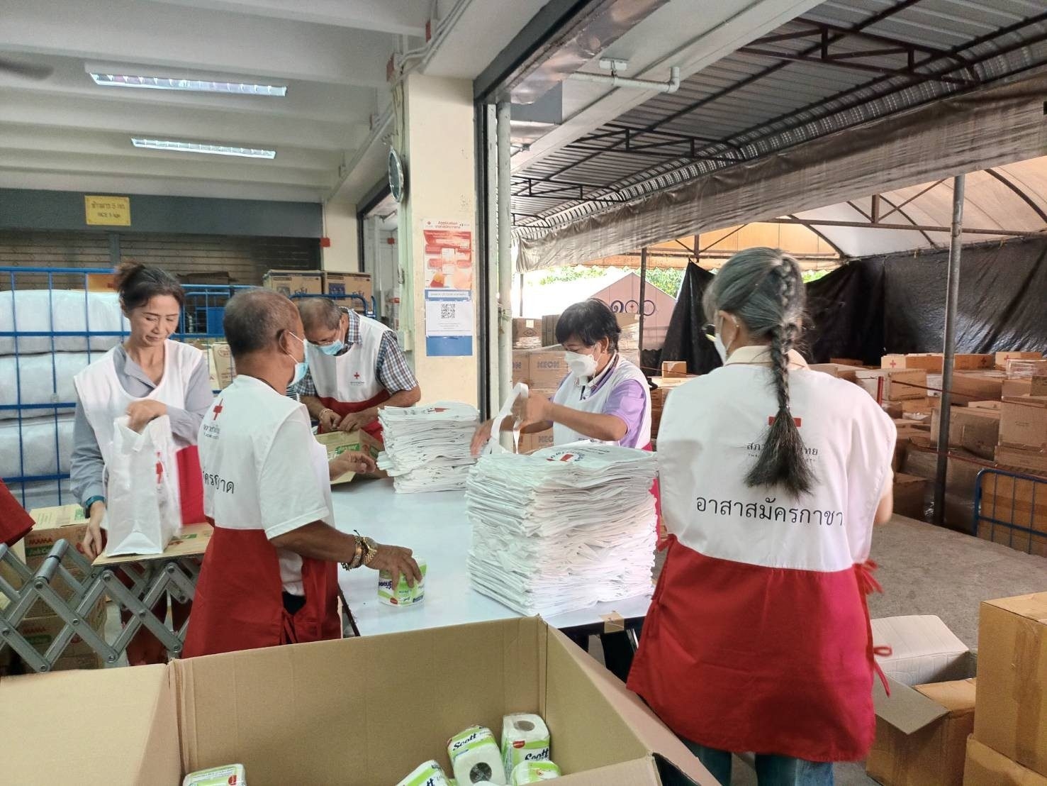 วันที่ 11 มกราคม 2567 อาสาสมัครกาชาด สำนักงานยุวกาชาดและอาสาสมัครกาชาด สภากาชาดไทย ร่วมบรรจุชุดธารน้ำใจ จำนวน 2,000 ชุด ณ คลังสัมภาระ สำนักงานบรรเทาทุกข์และประชานามัยพิทักษ์ สภากาชาดไทย เพื่อเตรียมพร้อมช่วยเหลือประชาชนกลุ่มเปราะบางทางสังคม ผ่าน App พ้นภัย ทันทีที่ได้รับการร้องขอ โดยจะปฏิบัติภารกิจระหว่างวันที่ 11 และ 12 มกราคม 2567 ทั้งนี้มีอาสาสมัครกาชาดร่วมปฏิบัติภารกิจหมุนเวียน 36 คน