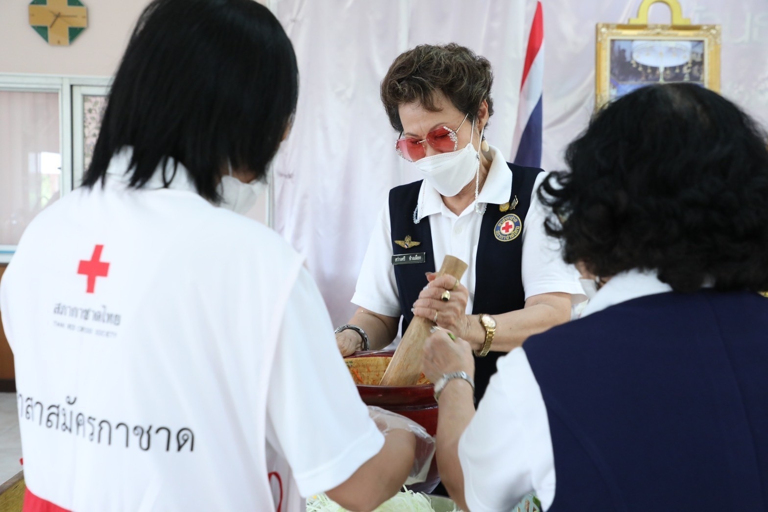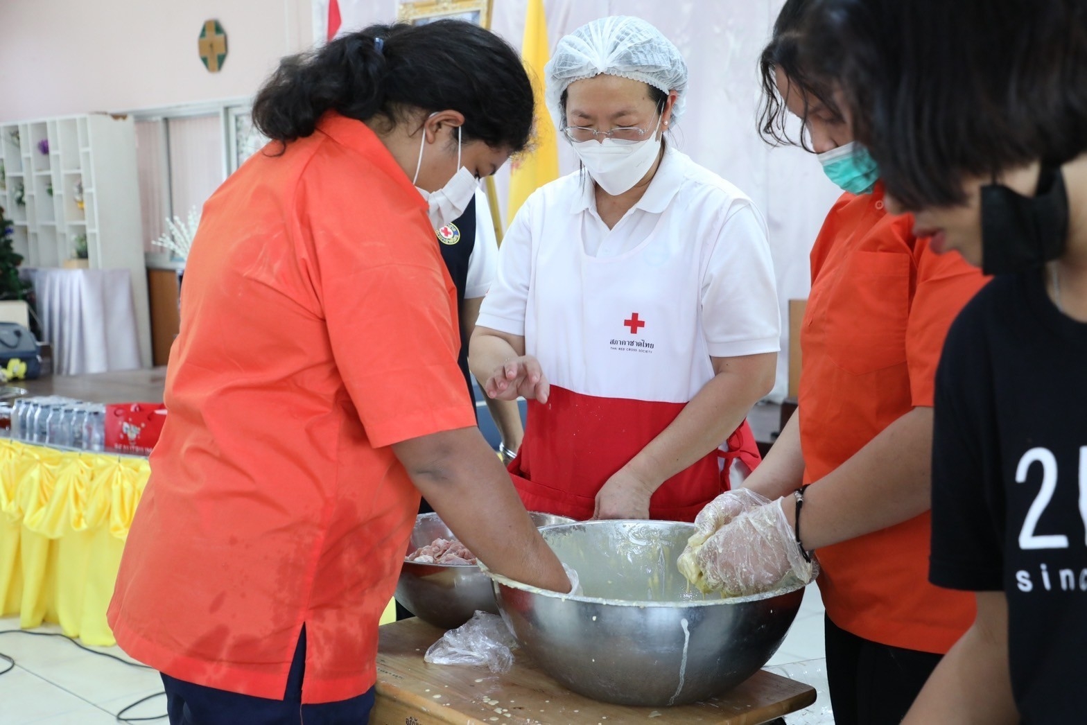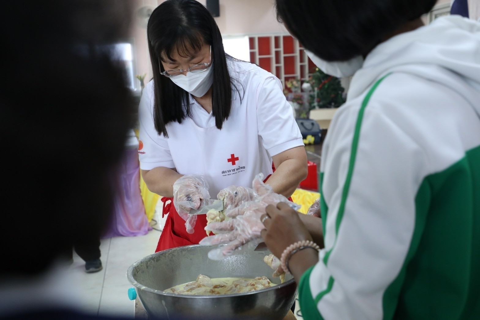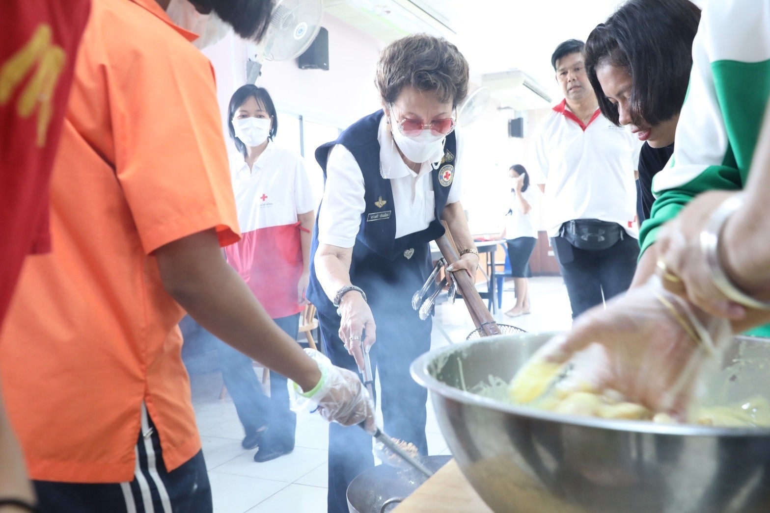 จัดกิจกรรม “อาสาร่วมใจพัฒนาชุมชนและสังคม” โดยกิจกรรมประกอบด้วย การถ่ายทอดความรู้เรื่อง การประกอบอาหารจากอาสาสมัครกาชาด