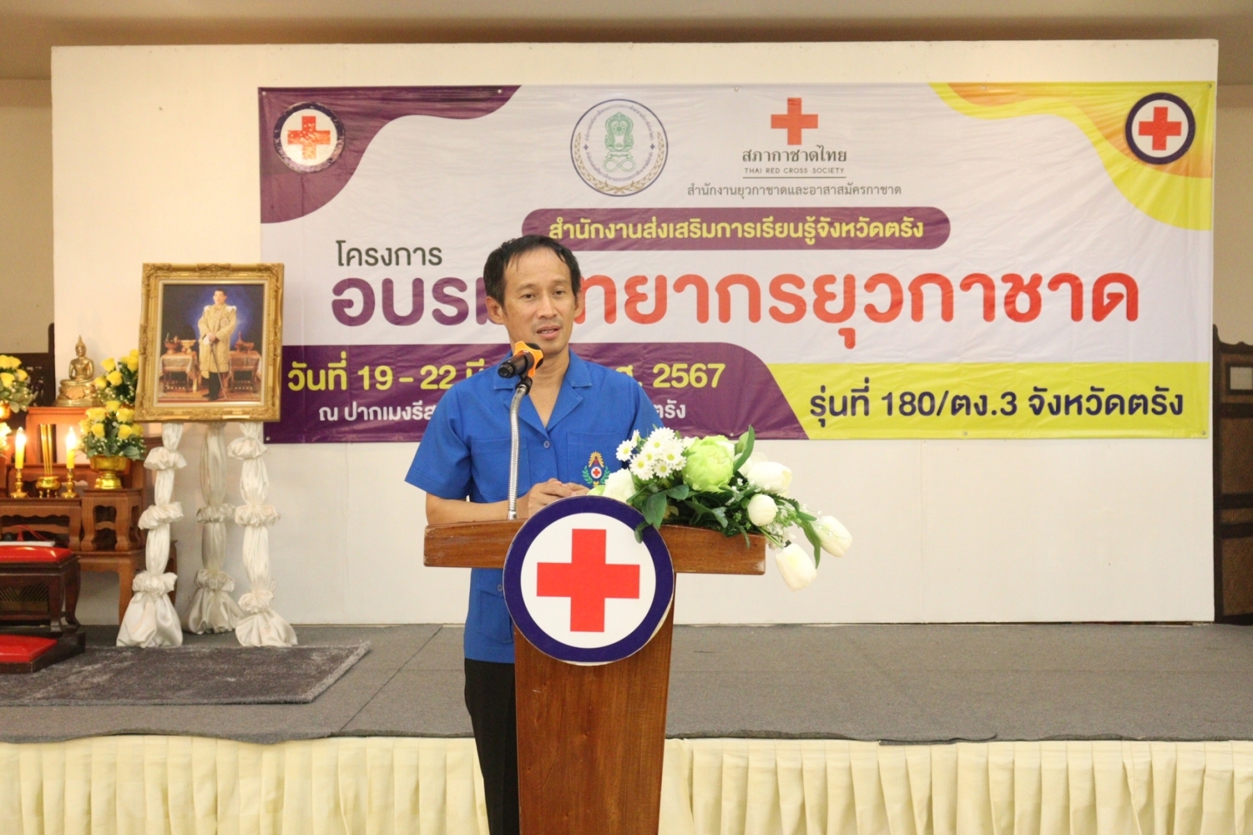 โครงการอบรมวิทยากรยุวกาชาด รุ่นที่ 180/ตง.3 จังหวัดตรัง by มยุรฉัตร อินทนา | Mar 22, 2024 | ข่าว, ข่าวสารกิจกรรม โครงการอบรมวิทยากรยุวกาชาด รุ่นที่ 180/ตง.3 ระหว่างวันที่ 19-22 มีนาคม 2567 ท่านผู้ว่าราชการจังหวัดตรัง นายทรงกลด สว่างวงศ์ เป็นเกียรติมาเปิดการอบรม นางนภา จิโรภาส ผู้อำนวยการสำนักงานส่งเสริมการเรียนรู้จังหวัดตรัง เป็ผู้กล่าวรายงานผู้อำนวยการฝึกอบรม นางปิยพรรณ กาฬวงศ์ ส่งไปยัง Social Media ของผู้รับชม