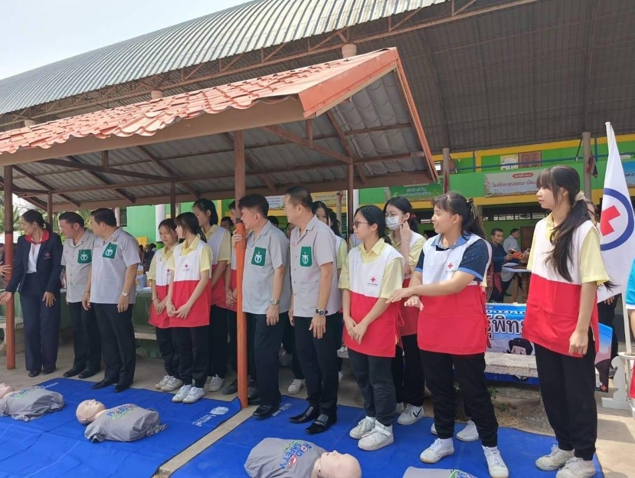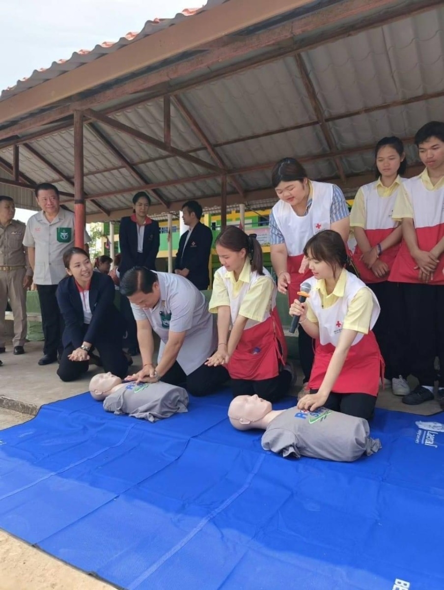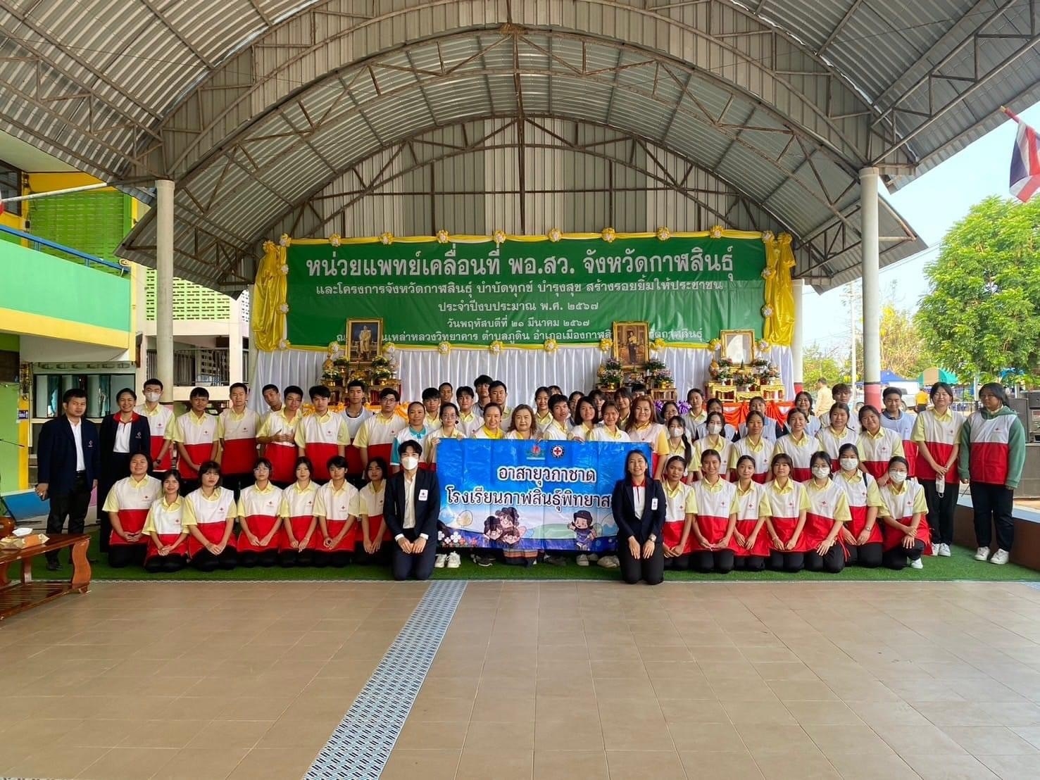 วันที่ 21 มีนาคม 67 สำนักงานยุวกาชาดและอาสาสมัครกาชาด นำอาสาสมัครกาชาดจำนวน 65 คน ลงพื้นที่สนับสนุนการตรวจสุขภาพของประชาชนในชุมชน ร่วมกับหน่วยแพทย์เคลื่อนที่มูลนิธิแพทย์อาสาสมเด็จพระศรีนครินทราบรมราชชนนี (พอ.สว.) โดยปฏิบัติหน้าที่อำนวยความสะดวก วัดความดันโลหิต การชั่งน้ำหนัก วัดส่วนสูง และจัดลำดับการเข้าพบแพทย์ โดยมีประชาชนที่มารับบริการจำนวน 670 คน นอกจากนี้ ยังให้ความรู้เรื่อง “การปฏิบัติการช่วยชีวิตขั้นพื้นฐาน CPR และการสำลัก Choking” ณ โรงเรียนเหล่าหลวงวิทยาคาร อำเภอเมือง จังหวัดกาฬสินธุ์