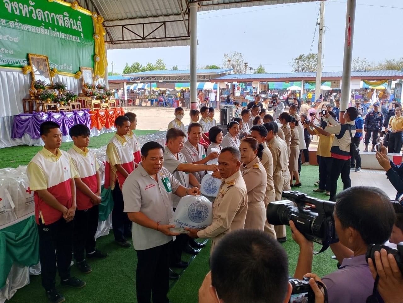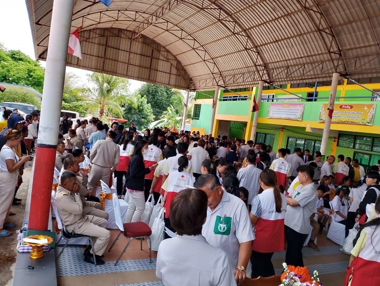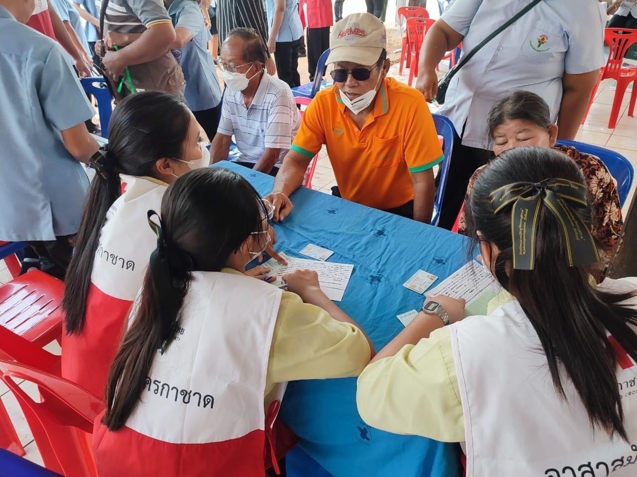 วันที่ 21 มีนาคม 67 สำนักงานยุวกาชาดและอาสาสมัครกาชาด นำอาสาสมัครกาชาดจำนวน 65 คน ลงพื้นที่สนับสนุนการตรวจสุขภาพของประชาชนในชุมชน ร่วมกับหน่วยแพทย์เคลื่อนที่มูลนิธิแพทย์อาสาสมเด็จพระศรีนครินทราบรมราชชนนี (พอ.สว.) โดยปฏิบัติหน้าที่อำนวยความสะดวก วัดความดันโลหิต การชั่งน้ำหนัก วัดส่วนสูง และจัดลำดับการเข้าพบแพทย์ โดยมีประชาชนที่มารับบริการจำนวน 670 คน นอกจากนี้ ยังให้ความรู้เรื่อง “การปฏิบัติการช่วยชีวิตขั้นพื้นฐาน CPR และการสำลัก Choking” ณ โรงเรียนเหล่าหลวงวิทยาคาร อำเภอเมือง จังหวัดกาฬสินธุ์