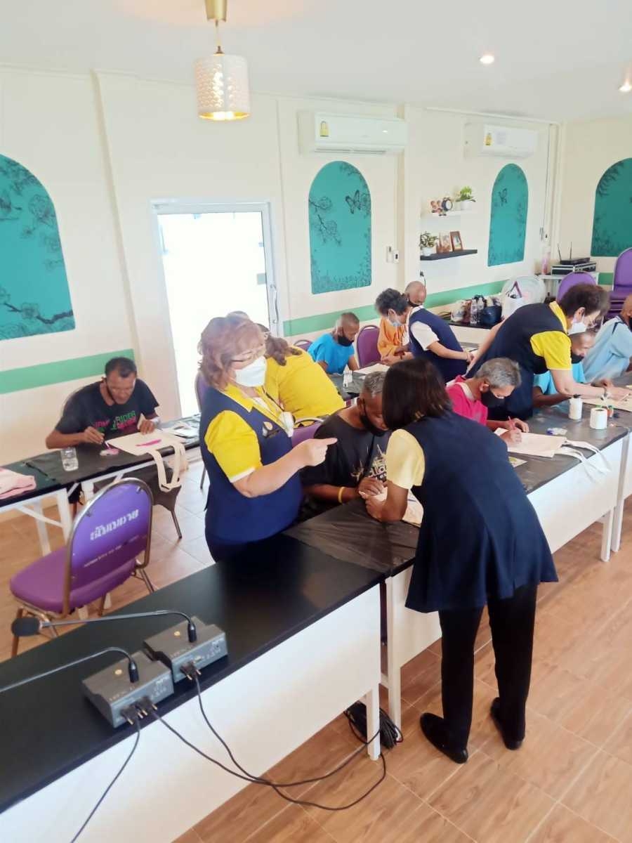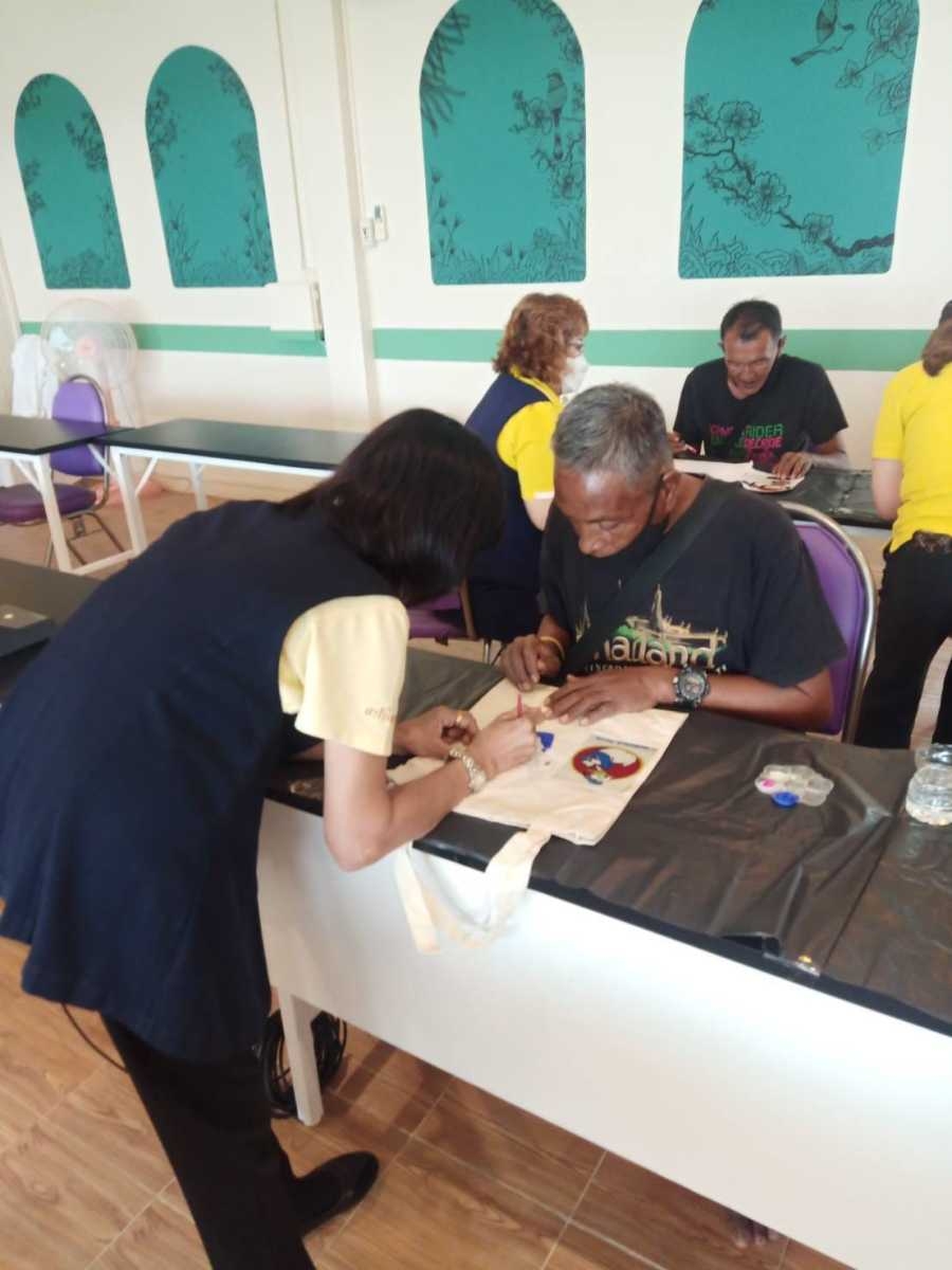 วันที่ 7 พฤษภาคม 2567 อาสาสมัครกาชาด สำนักงานยุวกาชาดและอาสาสมัครกาชาด สอนสาธิตการเพ้นท์ถุงผ้าเพื่อทำเป็นอาชีพ ให้แก่สมาชิกชาย ณ สถานคุ้มครองคนไร้ที่พึ่ง จังหวัดปทุมธานี พร้อมนำชุดสังฆทานและมาลัยบุญ ที่มาบิกฝึกทักษะและจัดทำไว้เพื่อนำไปถวายพระภิกษุสงฆ์ที่วัดป่าคลอง11 อำเภอธัญบุรี จังหวัดปทุมธานี