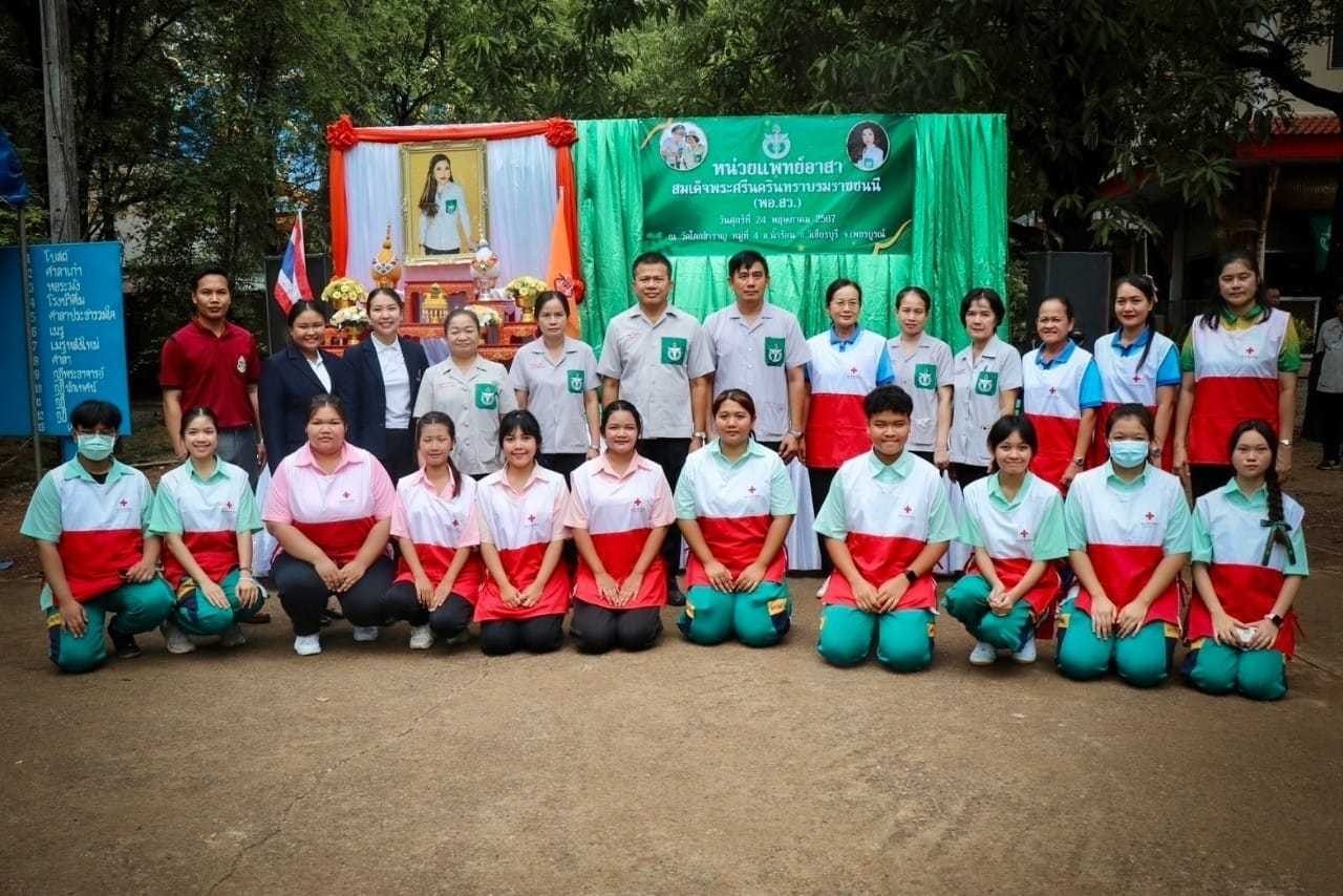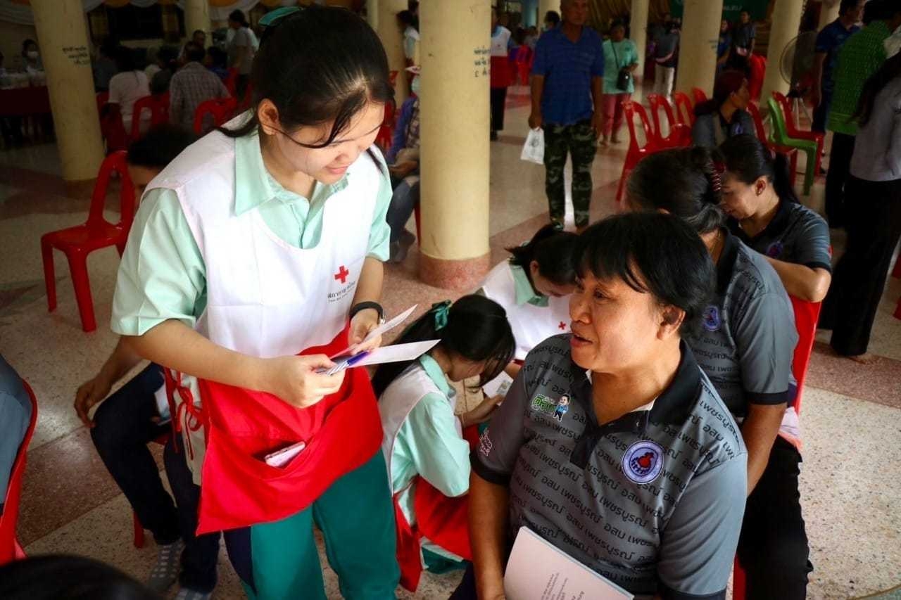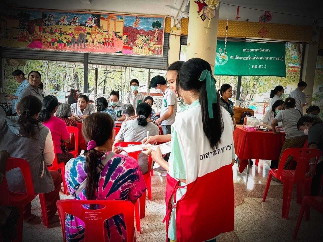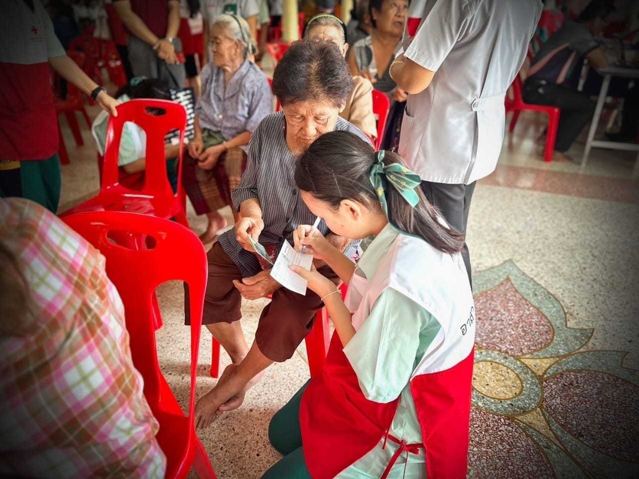 จากนั้น ในวันที่ 24 พฤษภาคม 2567 นำอาสาสมัครกาชาดจำนวน 60 คน ลงพื้นที่สนับสนุนการตรวจสุขภาพของประชาชนในชุมชน ร่วมกับหน่วยแพทย์เคลื่อนที่มูลนิธิแพทย์อาสาสมเด็จพระศรีนครินทราบรมราชชนนี (พอ.สว.) ณ วัดโคกสำราณ อำเภอวิเชียรบุรี จังหวัดเพชรบูรณ์ โดยปฏิบัติหน้าที่อำนวยความสะดวก วัดความดันโลหิต การชั่งน้ำหนัก วัดส่วนสูง และจัดลำดับการเข้าพบแพทย์ โดยมีประชาชนที่มารับบริการจำนวน 250 คน นอกจากนี้ ยังให้ความรู้เรื่อง “การปฏิบัติการช่วยชีวิตขั้นพื้นฐาน CPR และการสำลัก Choking”
