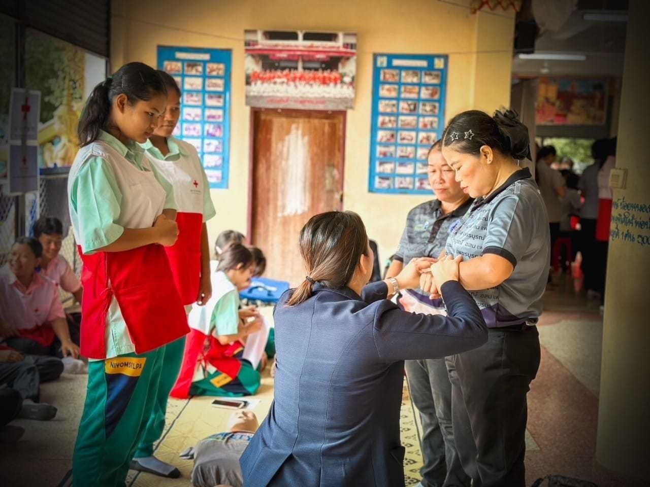 เมื่อวันที่ 23 พฤษภาคม 2567 สำนักงานยุวกาชาดกาชาดและอาสาสสมัครกาชาด ลงพื้นที่อบรม “การปฏิบัติการช่วยชีวิตขั้นพื้นฐาน CPR และการสำลัก (Choking) ให้กับอาสาสมัครกาชาดโรงเรียนนิยมศิลป์อนุสรณ์ และโรงเรียนซับสมบูรณ์วิทยาคม ณ โรงเรียนนิยมศิลป์อนุสรณ์ อำเภอวิเชียรบุรี จังหวัดเพชรบูรณ์ เพื่อเตรียมพร้อมอาสาสมัครกาชาดก่อนลงพื้นที่สนับสนุนการตรวจสุขภาพของประชาชนในชุมชน ร่วมกับหน่วยแพทย์เคลื่อนที่มูลนิธิแพทย์อาสาสมเด็จพระศรีนครินทราบรมราชชนนี (พอ.สว.)