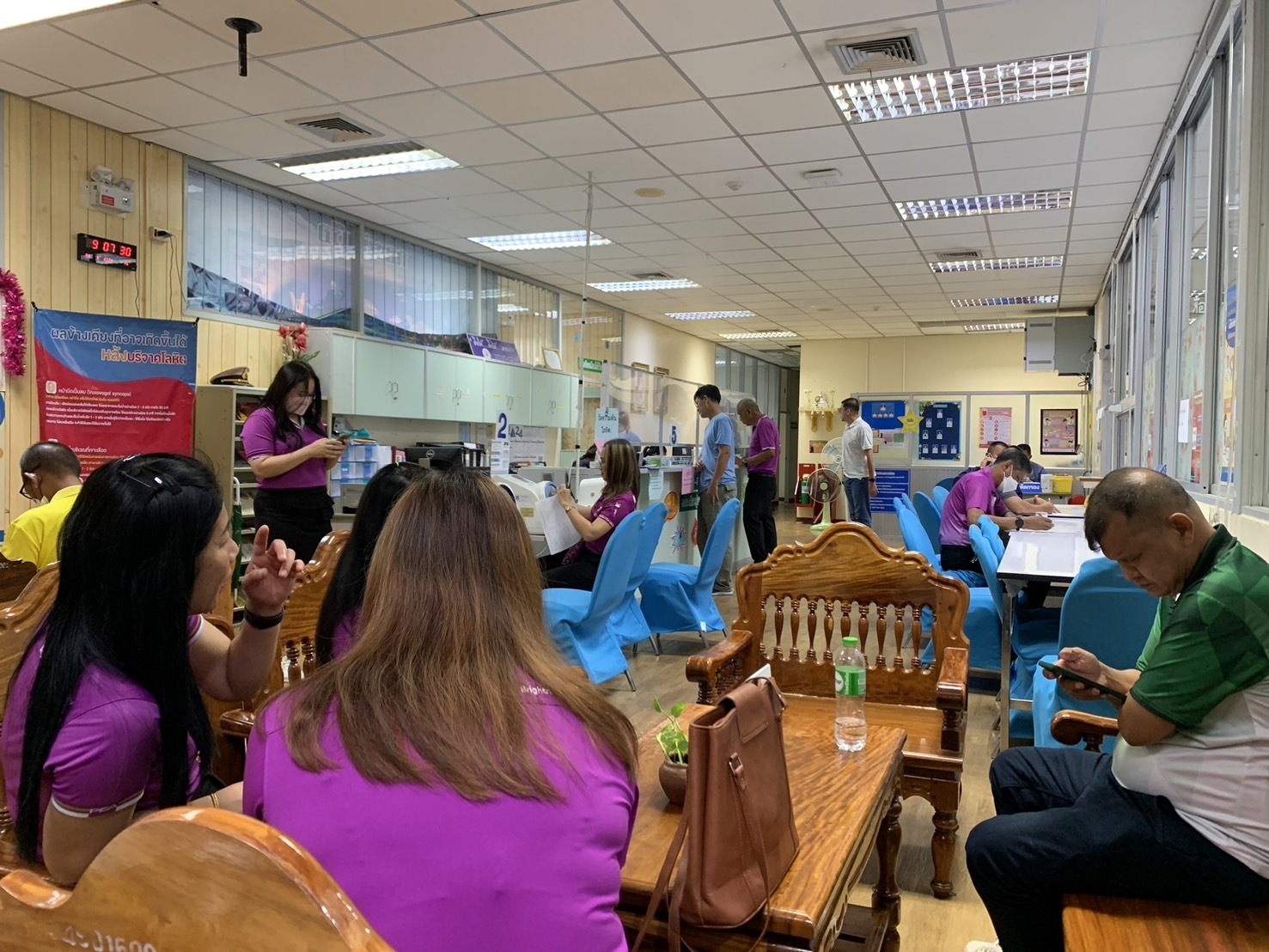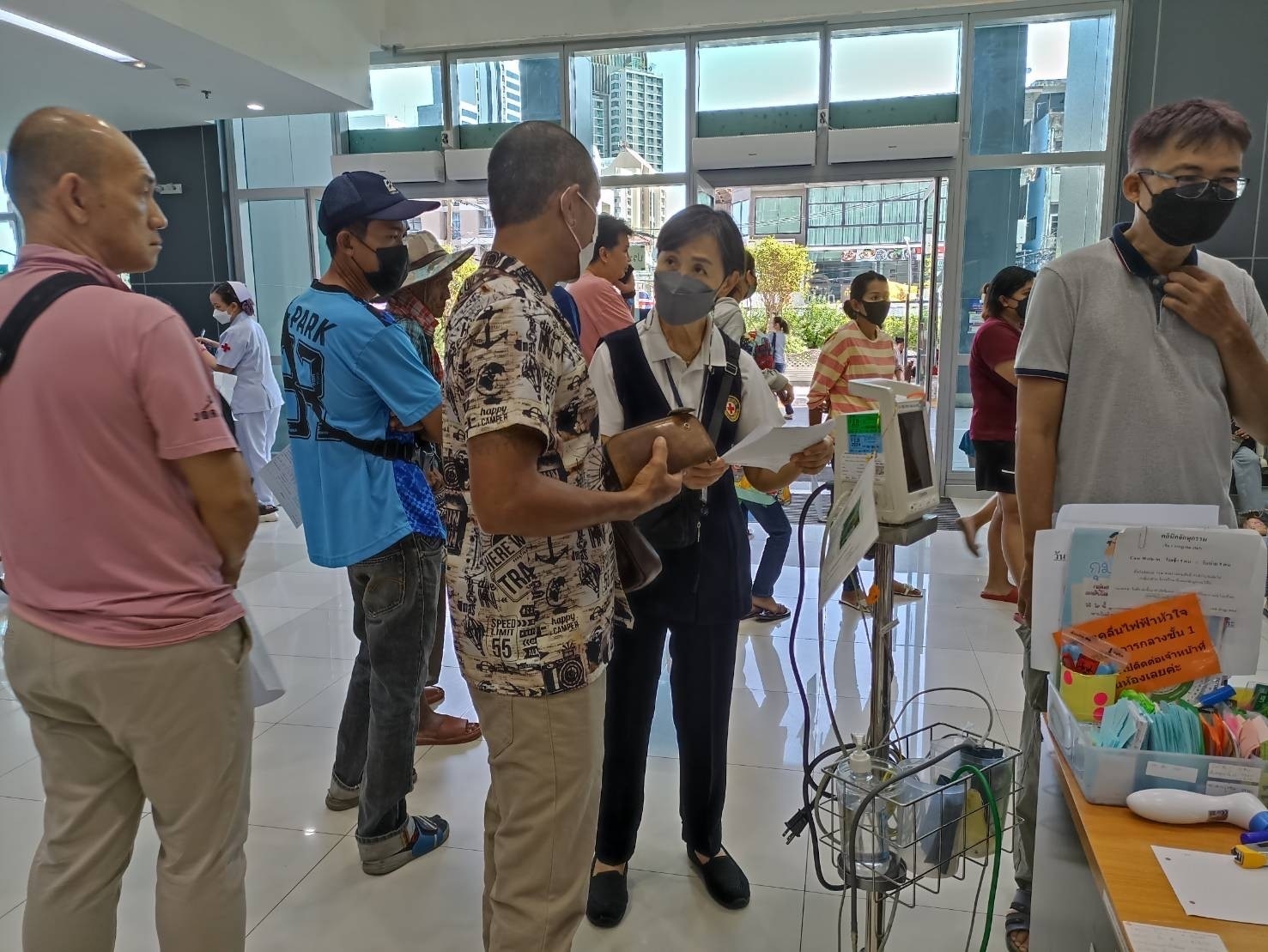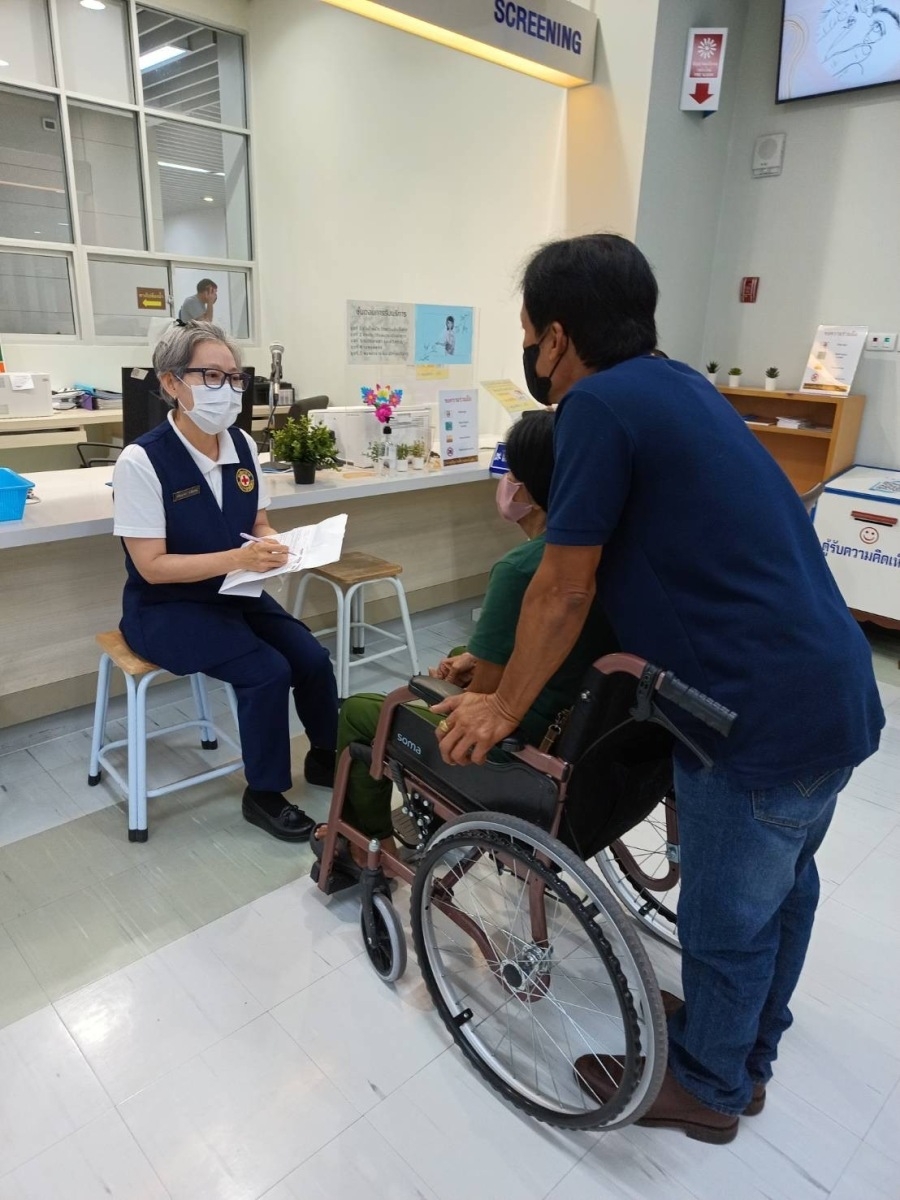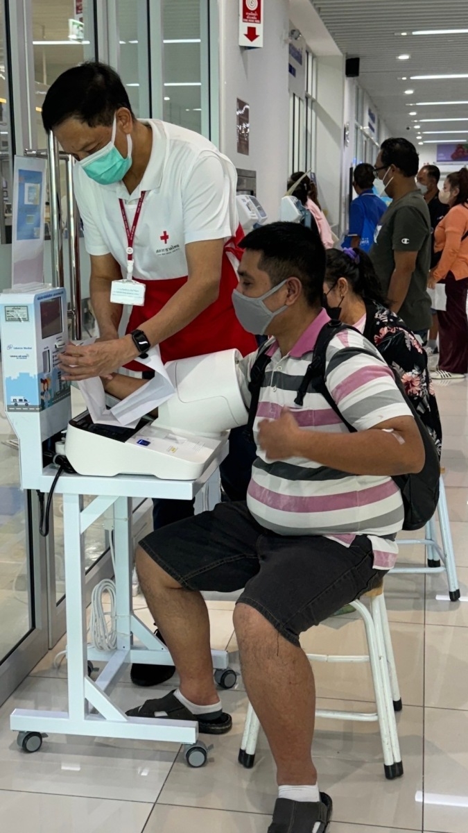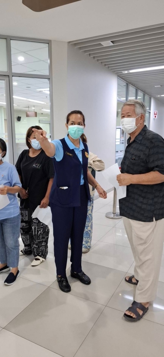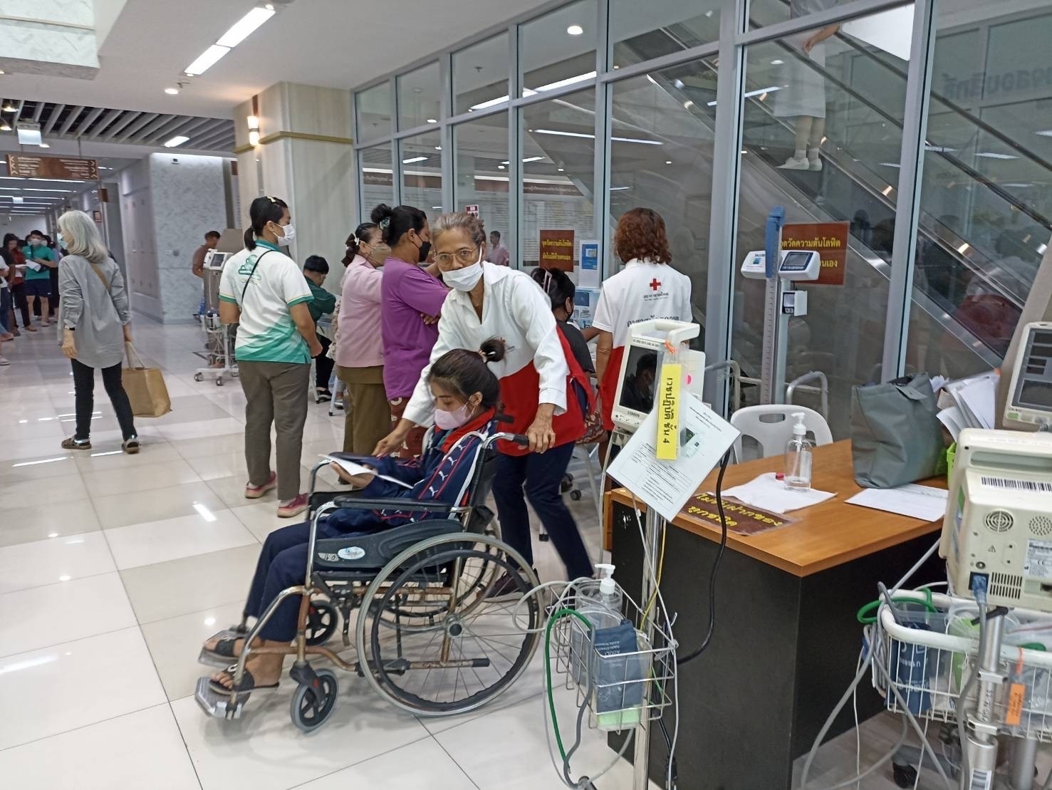 อาสาสมัครกาชาด ปฏิบัติงานโรงพยาบาลสมเด็จพระบรมราชเทวี ณ ศรีราชา จังหวัดชลบุรี อาสาสมัครกาชาด ปฏิบัติงานอำนวยความสะดวกให้แก่ผู้มาใช้บริการแผนกผู้ป่วยนอก ในหน่วยบริการต่างๆ