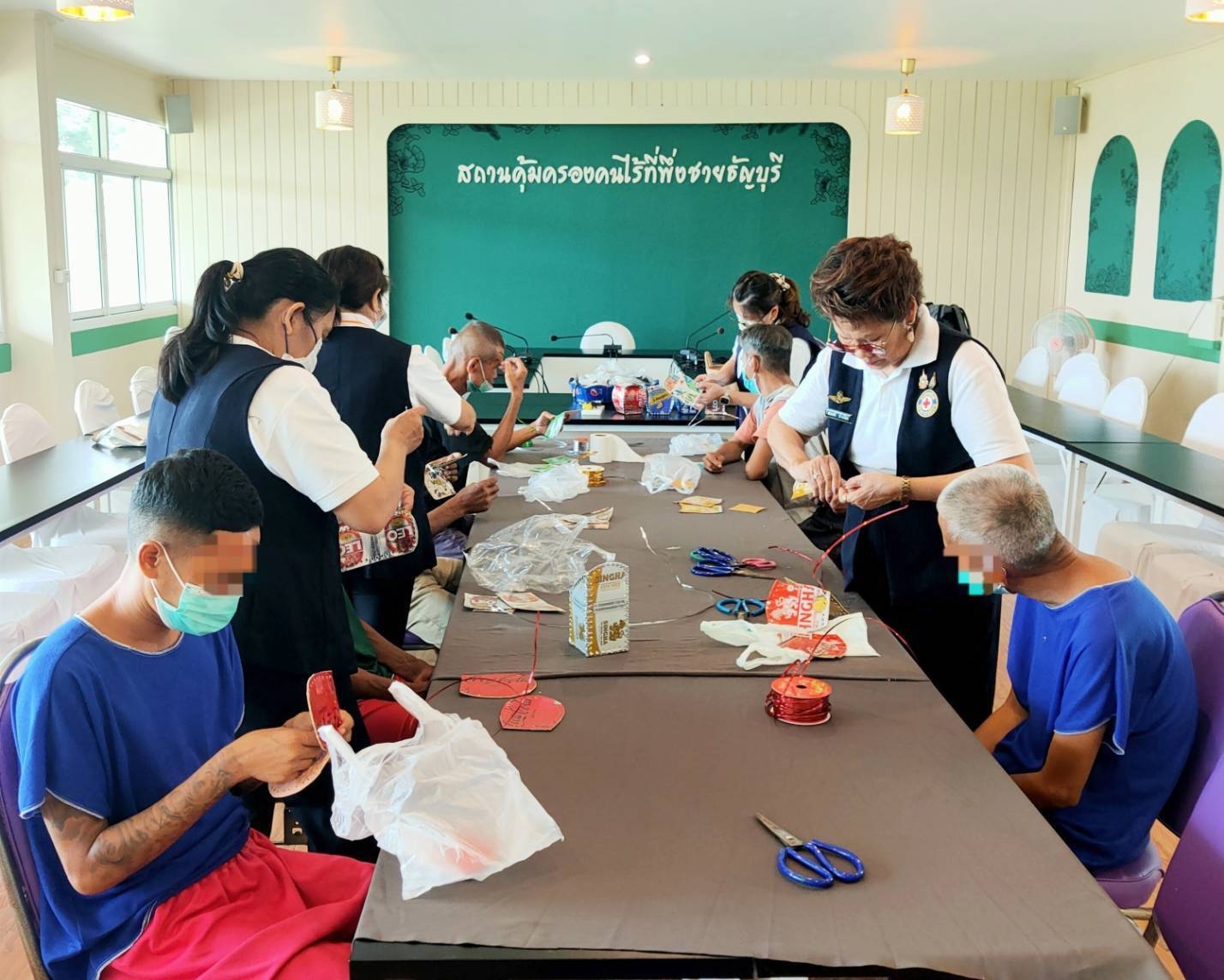 วันที่ 12 กันยายน 2567 คณะอาสาสมัครกาชาดโครงการอาสาสมัครกาชาดช่วยปฏิบัติงานด้านการพัฒนาคุณภาพชีวิตสอนสาธิตทำภาชนะใส่อุปกรณ์เอนกประสงค์รูปทรงต่างๆ เพื่อนำไปใช้เองและมอบให้บริษัทเครื่องดื่มที่ใช้วัสดุในการทำภาชนะ นำกลับไปเป็นของที่ระลึกสำหรับลูกค้า และเป็นการสนับสนุนงานฝีมือของกลุ่มเปราะบางทางสังคม ณ สถานคุ้มครองคนไร้ที่พึ่งชายธัญบุรี อำเภอธัญบุรี จังหวัดปทุมธานี