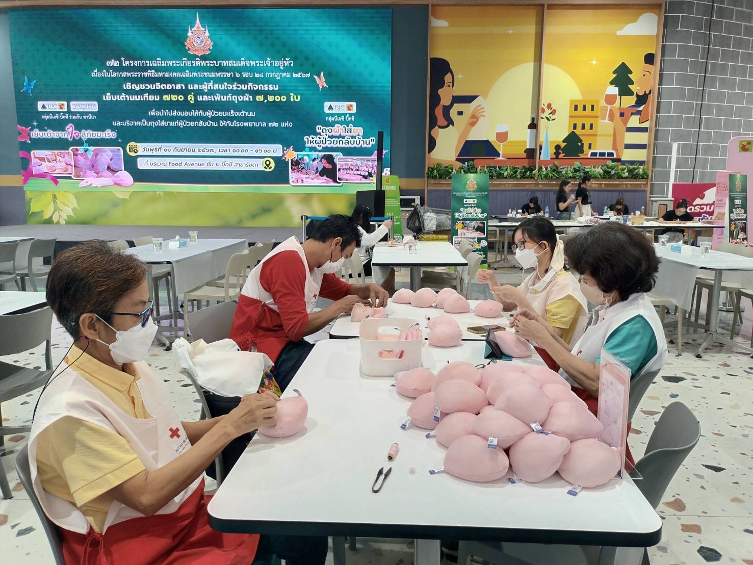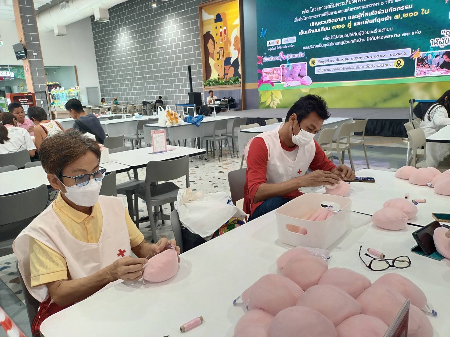วันที่ 11-13 กันยายน 2567 อาสาสมัครกาชาด สำนักงานยุวกาชาดและอาสาสมัครกาชาด สภากาชาดไทยร่วมกิจกรรมเย็บเต้านมเทียมเพื่อผู้ป่วยมะเร็งเต้านม โดยบริษัท ซาบีน่า ฟาร์อีสท์ จำกัด จัดกิจกรรมในชื่อ 72 โครงการเฉลิมพระเกียรติพระบาทสมเด็จพระเจ้าอยู่หัวเนื่องในโอกาสพระราชพิธีมหามงคลเฉลิมพระชนมพรรษา 6 รอบ 28 กรกฏาคม 2567 อาสาสมัครกาชาดเย็บเต้านมเทียมจำนวน 350 คู่ ณ บริเวณ Food Avenue ห้างบิ๊กซี รัชดา และกิจกรรมเย็บซ่อมแซมเต้านมเทียมจำนวน 222 ชิ้น ณ ห้องกิจกรรม ชั้น 2 ตึกอาสากาชาด โดยเย็บเต้านมเทียมและเต้านมที่ซ่อมแซมแล้วจะนำไปให้แก่ผู้ป่วยมะเร็ง ต่อไป