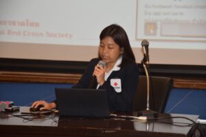 ในโอกาสนี้นางสุนันทา ศรอนุสิน ผู้อำนวยการสำนักงานยุวกาชาดและอาสาสมัครกาชาด ได้กล่าวรายงานวัตถุประสงค์ของการอบรมปฐมนิเทศอาสาสมัครใหม่เพื่อสนับสนุนบริการทางการแพทย์ ซึ่งอาสาสมัครกาชาดที่ผ่านการอบรมในครั้งนี้จะหมุนเวียนปฏิบัติหน้าที่อำนวยความสะดวกผู้มารับบริการตามพื้นที่