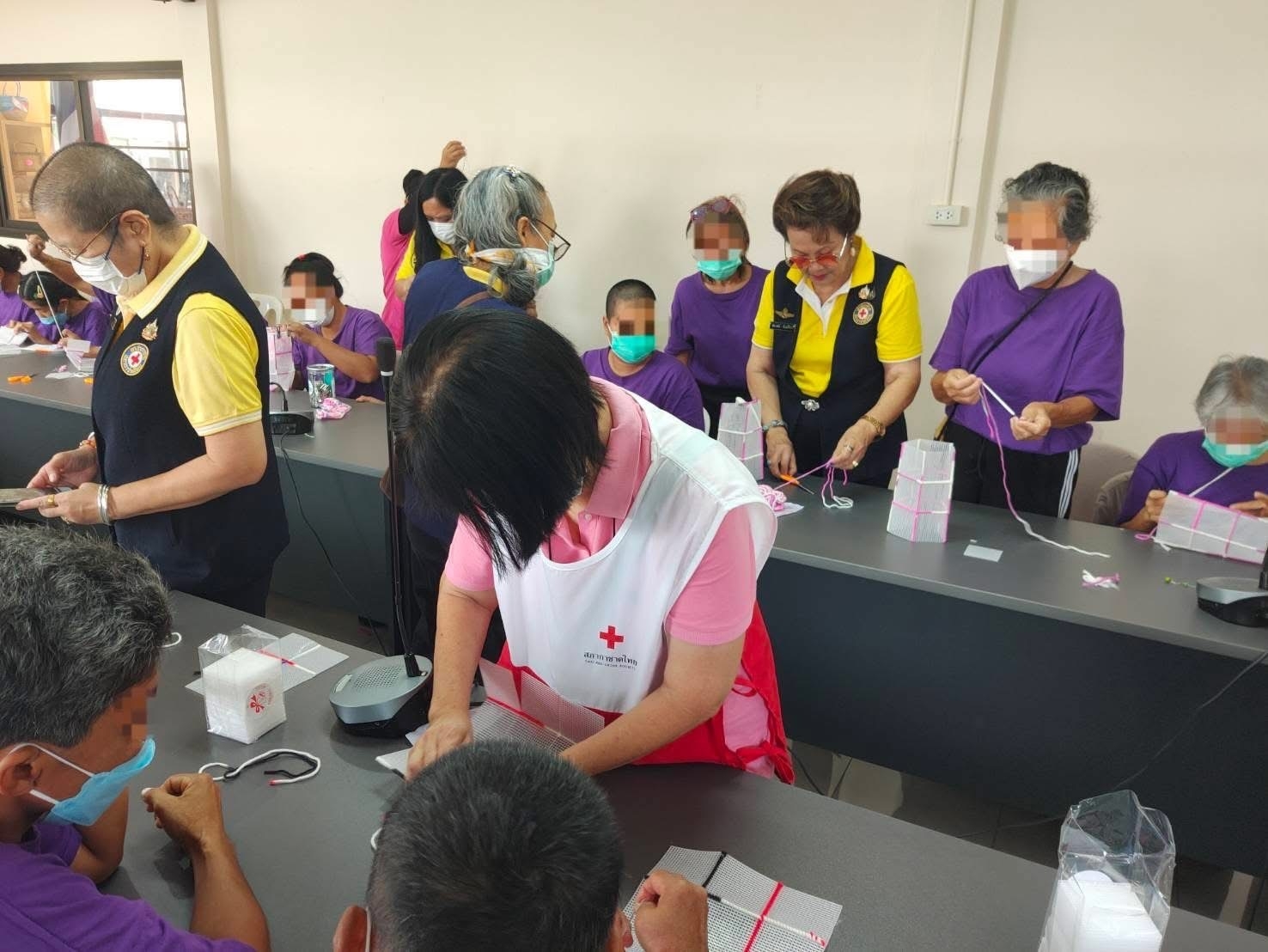 วันที่ 15 กรกฏาคม 2568 อาสาสมัครกาชาดในโครงการอาสาสมัครกาชาดร่วมใจพัฒนาชุมชนและสังคมสถานแรกรับบ้านเด็กหญิงธัญญพรและสถานคุ้มครองคนไร้ที่พึ่งชาย สอนสาธิตนวัตกรรมด้านสุขภาพ ปลอกมือผู้ป่วยติดเตียงแก่ผู้ด้อยโอกาสและผู้เปราะบางทางสังคม จำนวน 35 คน ณ สถานคุ้มครองคนไร้ที่พึ่งหญิงธัญบุรี จังหวัดปทุมธานี เพื่อให้มีส่วนร่วมในการทำความดีเพื่อสังคม โดยผลงานดังกล่าว จะนำไปมอบให้กับโรงพยาบาลรามาธิบดีเพื่อใช้ในผู้ป่วยที่มีความจำเป็นต่อไป