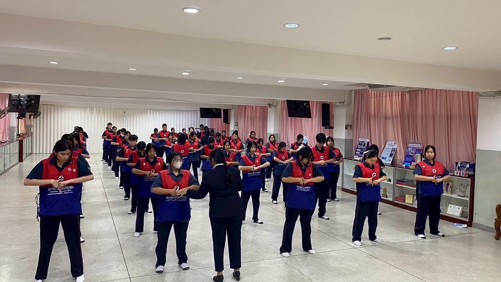ชมรมอาสายุวกาชาดโรงเรียนนวมินทราชินูทิศ เตรียมอุดมศึกษาพัฒนาการ จัดโครงการอบรมอาสายุวกาชาด เรื่อง การปฐมพยาบาลเบื้องต้น รุ่นที่ 1063/สป.11