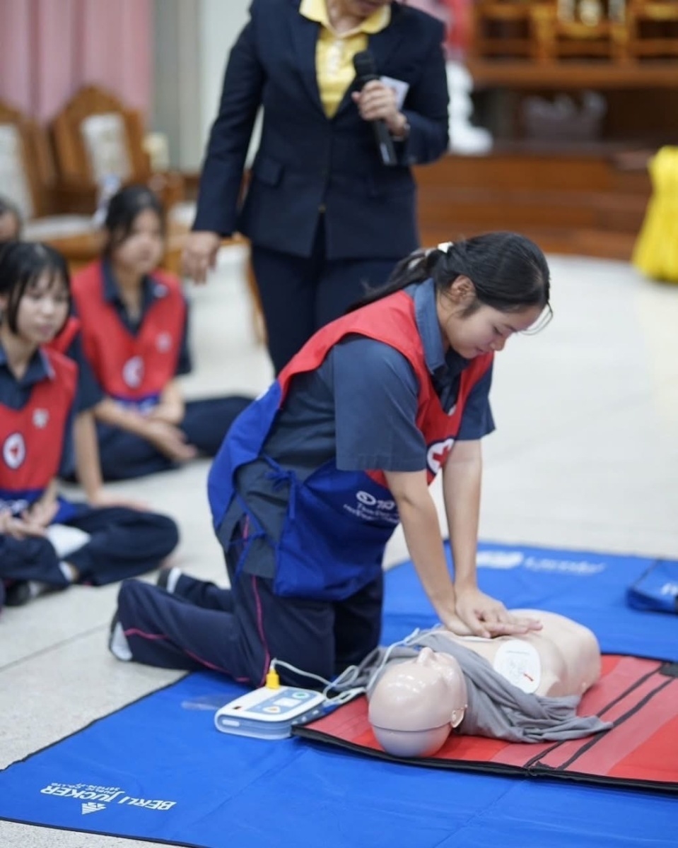 เมื่อวันที่ 22 กรกฎาคม 2568 ณ ห้องประชุมคุณหญิงสุชาดา ถิระวัฒน์ โรงเรียนนวมินทราชินูทิศ เตรียมอุดมศึกษาพัฒนาการ อำเภอบางบ่อ จังหวัดสมุทรปราการ มีอาสายุวกาชาดเข้าร่วมการอบรม จำนวน 50 คน โดยมี นางสาวสิริรัตน์ พุ่มแก้ว และนางสาวเมธิณี จงศรี วิทยาจารย์จากสำนักงานยุวกาชาดและอาสาสมัครกาชาด ร่วมเป็นวิทยากรให้ความรู้และฝึกทักษะ เรื่อง การปฐมพยาบาลเบื้องต้น