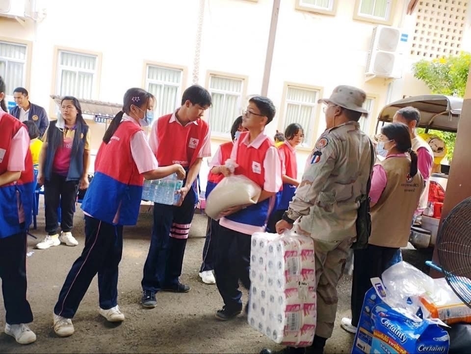 ชมรมอาสายุวกาชาด โรงเรียนเตรียมอุดมศึกษาพัฒนาการ จังหวัดอุบลราชธานี ร่วมบริจาคสิ่งของและบำเพ็ญประโยชน์เพื่อช่วยเหลือผู้ป่วยและพี่น้องประชาชนไทยชายแดนไทย-กัมพูชา
