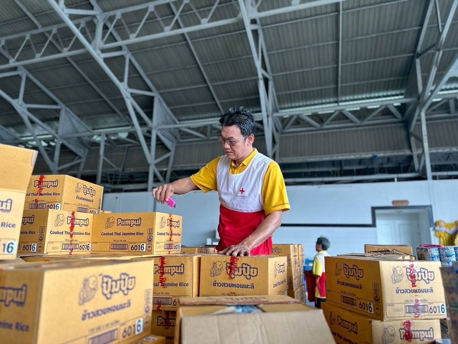 วันที่ 30 กรกฎาคม 2568 อาสาสมัครกาชาด จำนวน 35 คน ร่วมบรรจุถุงยังชีพพระราชทาน มูลนิธิอาสาเพื่อนพึ่ง(ภาฯ) ยามยาก สภากาชาดไทย จำนวน 5,250 ถุง เพื่อนำไปช่วยเหลือผู้ประสบอุทกภัย ดินโคลนถล่ม จังหวัดน่าน