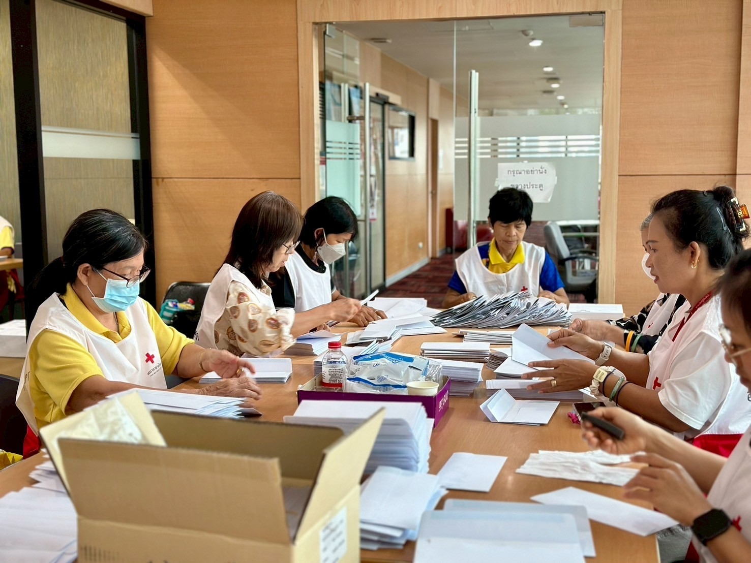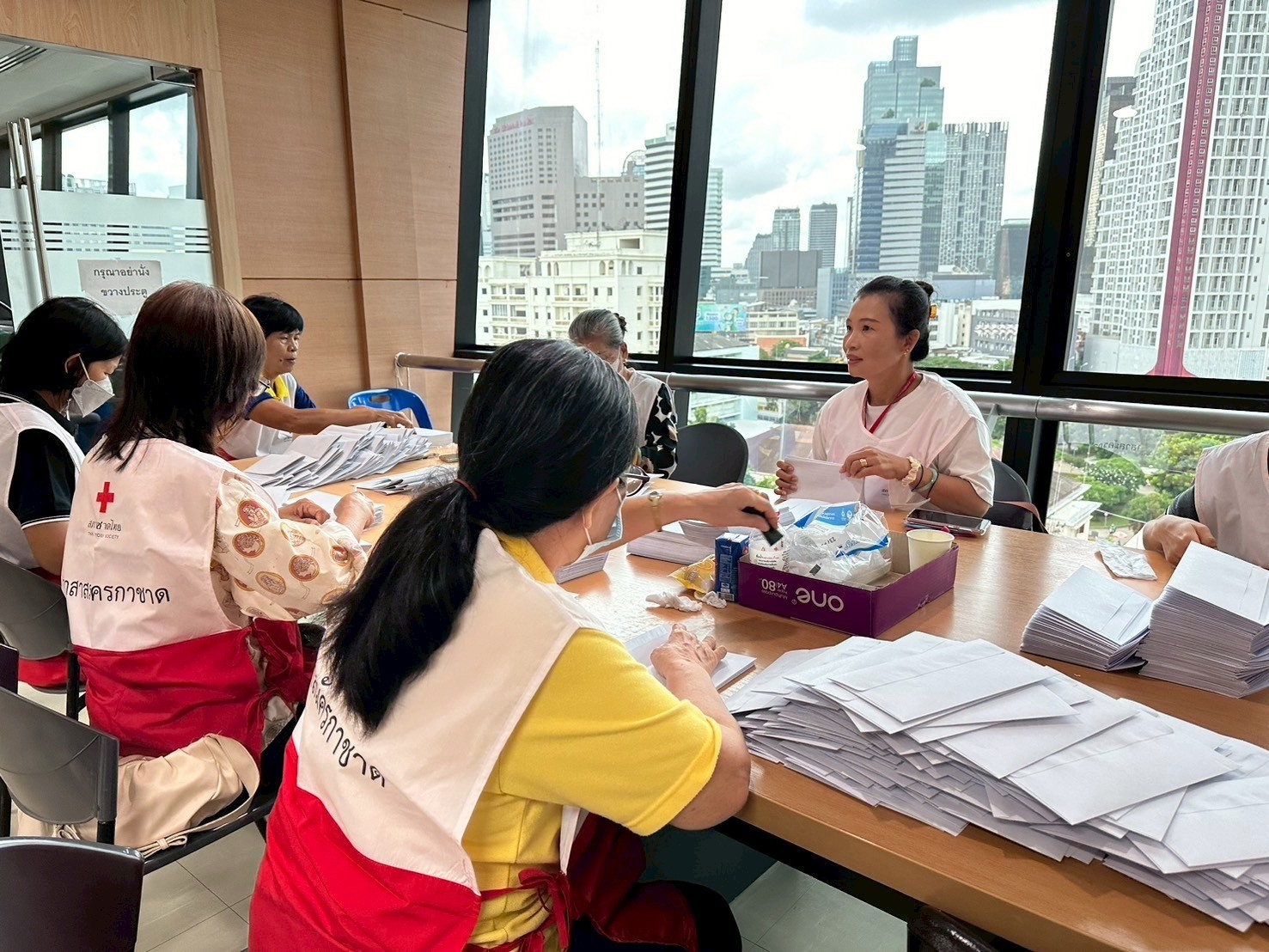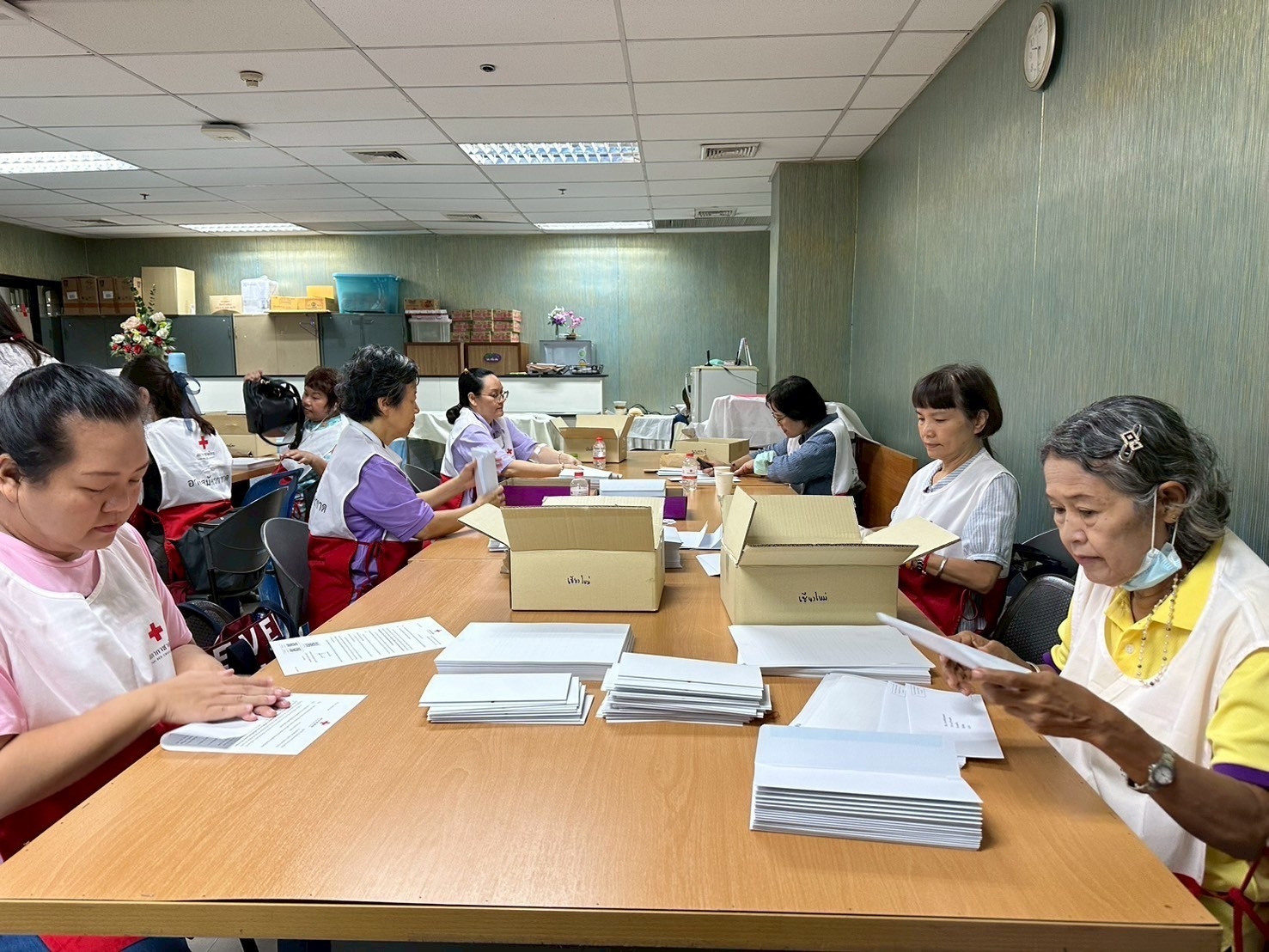 อาสาสมัครกาชาด จำนวน 25 คน ร่วมปฏิบัติงานพับซองจดหมาย พิมพ์ซองจดหมาย by มยุรฉัตร อินทนา | Aug 8, 2025 | Uncategorized, ข่าว, ข่าวสารกิจกรรม 7 สิงหาคม 2568 อาสาสมัครกาชาด จำนวน 25 คน ร่วมปฏิบัติงานพับซองจดหมาย พิมพ์ซองจดหมาย ในโครงการStem cell donor retention และเชิญชวนเป็นอาสาสมัครสเต็มเซลล์ ปี 2568 ณ ห้องอาหาร ชั้น 9 ศูนย์บริการโลหิตแห่งชาติ สภากาชาดไทย ส่งไปยัง Social Media ของผู้รับชม