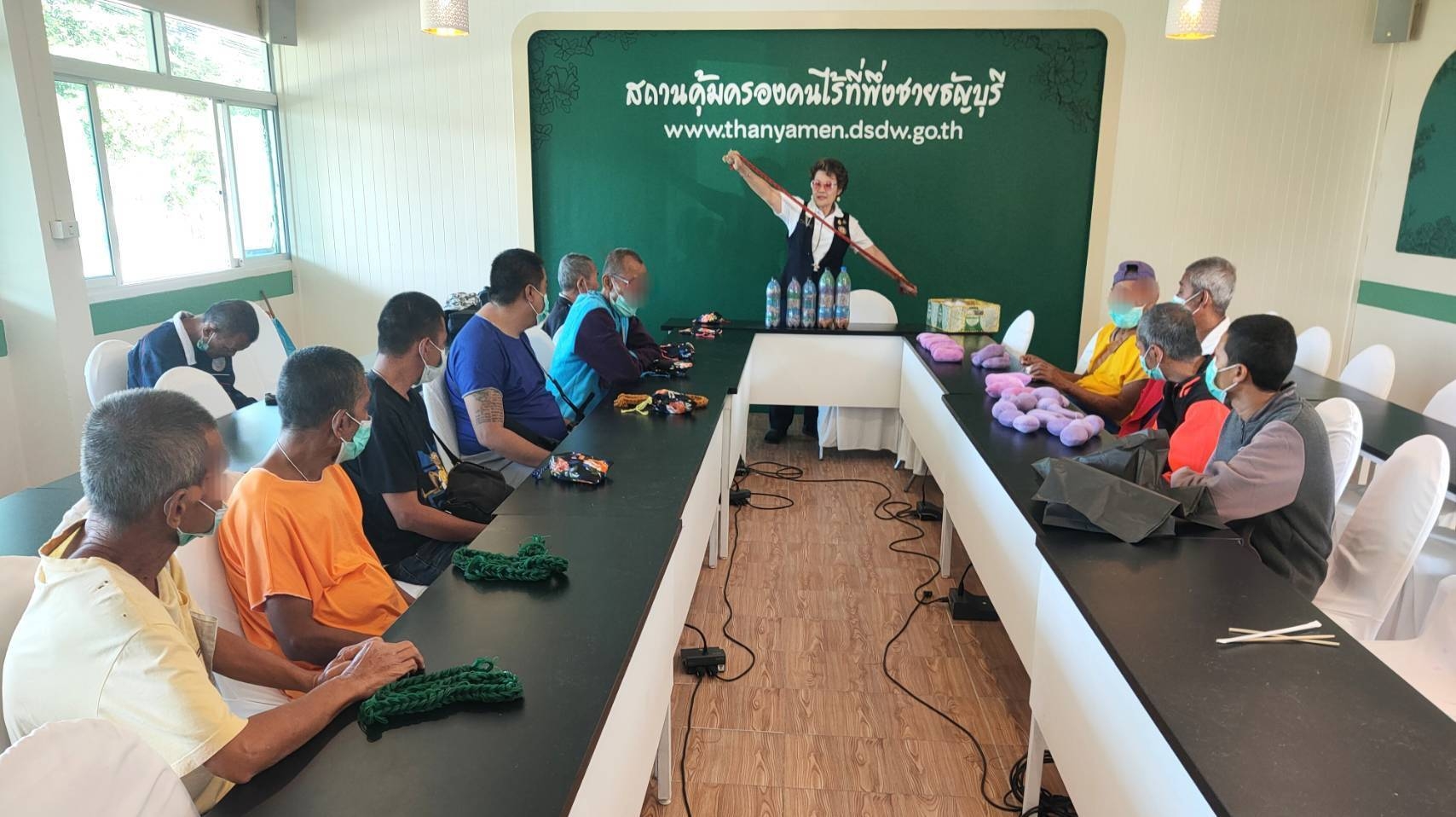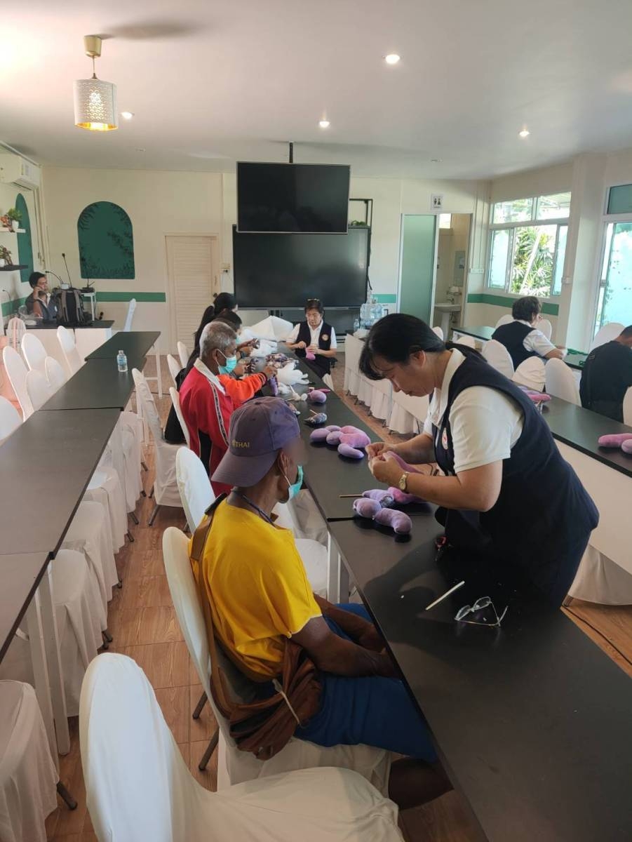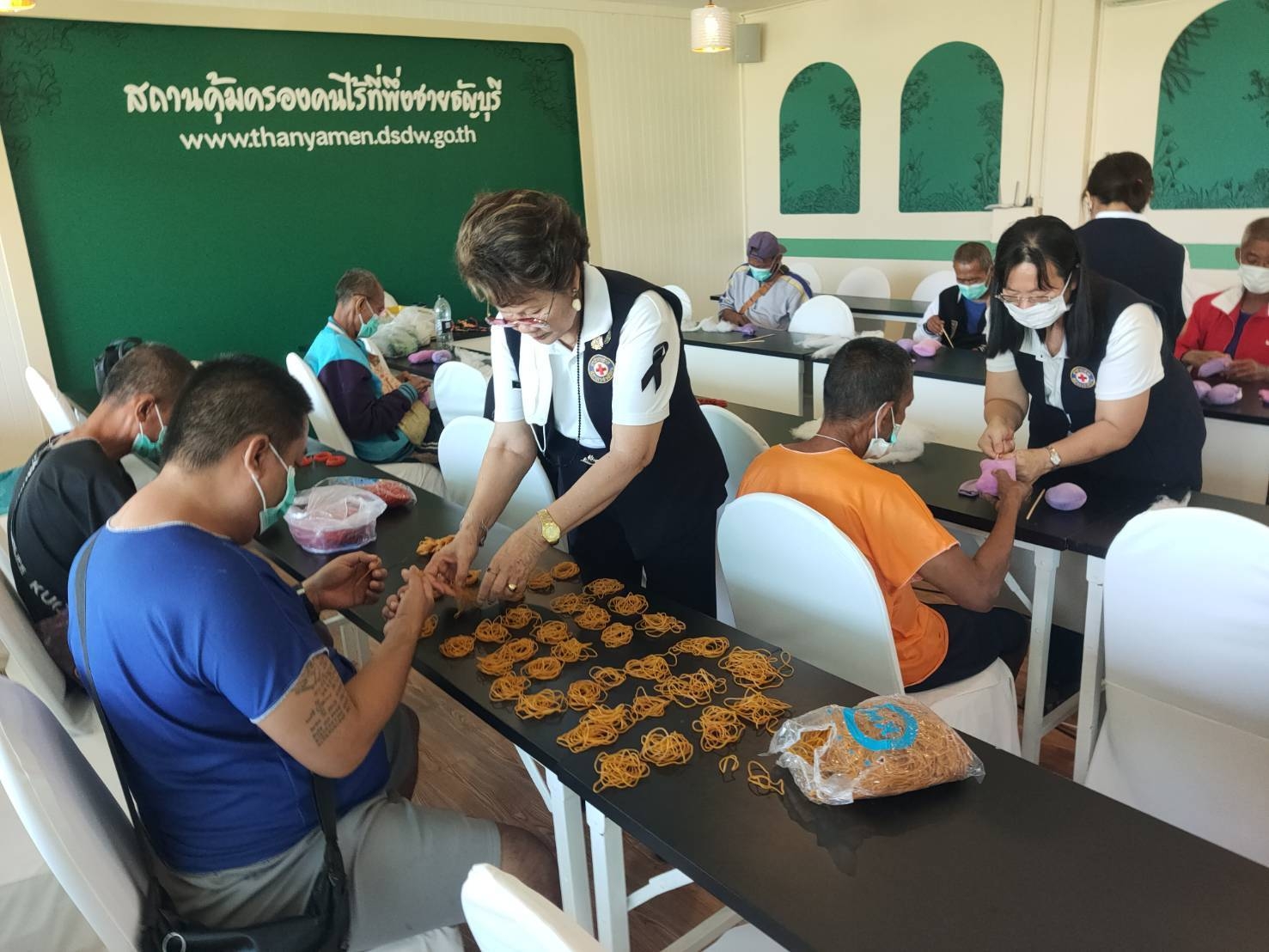 วันที่ 27 พฤศจิกายน 2568 คณะอาสาสมัครกาชาดได้เดินทางมาจัดกิจกรรมสร้างสรรค์และมีคุณค่า ณ สถานคุ้มครองคนไร้ที่พึ่งชายธัญบุรี อำเภอธัญญบุรี จังหวัดปทุมธานี โดยได้สาธิตและสอนทำ อุปกรณ์เสริมการออกกำลังกายแบบประดิษฐ์ (DIY) ซึ่งเน้นการป้องกันภาวะสุขภาพที่สำคัญในผู้สูงวัย คือ โรคนิ้วล็อค และช่วยกระตุ้นสมองเพื่อชะลอความเสื่อมของระบบประสาท อันเป็นสาเหตุของ โรคอัลไซเมอร์
