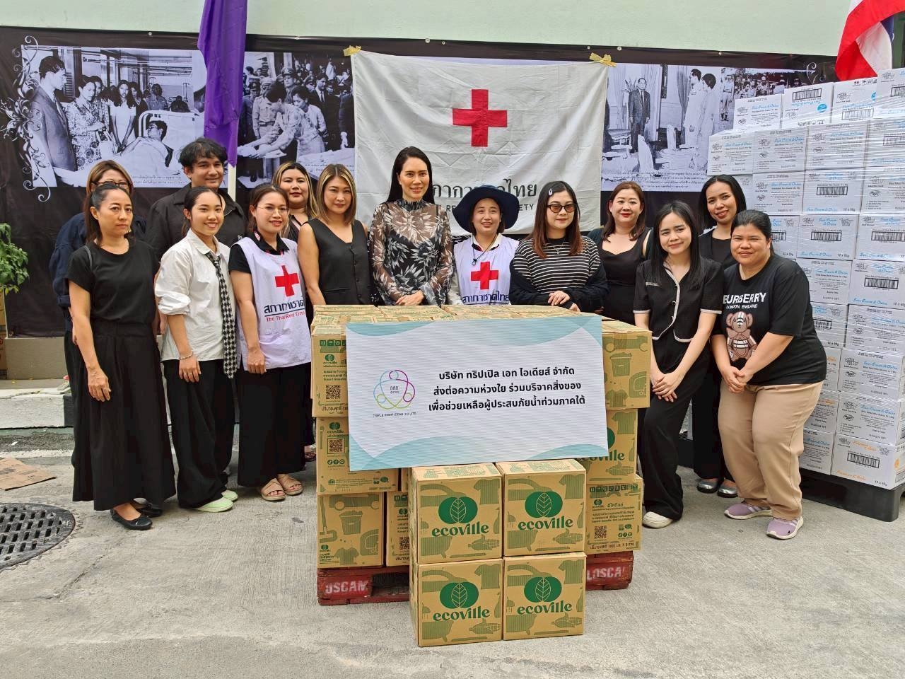 คณะผู้บริหารรับมอบสิ่งของช่วยเหลือผู้ประสบภัยน้ำท่วมภาคใต้ by juntima samollerk | Dec 9, 2025 | ข่าวสารกิจกรรม สายธารแห่งน้ำใจหลั่งไหลไม่ขาดสาย วันที่ 4 ธันวาคม 2568 นางสุนันทา ศรอนุสิน ผู้อำนวยการสำนักงานยุวกาชาดและอาสาสมัครกาชาด และ พลโท นายแพทย์อำนาจ บาลี ผู้อำนวยการสำนักงานบรรเทาทุกข์และประชานามัยพิทักษ์ ร่วมรับมอบผลิตภัณฑ์ทำความสะอาด จำนวน 240 ชิ้น โดยมีคุณ นภัสนันท์ พันพึ่ง กรรมการผู้จัดการ บริษัท ทริปเปิล เอท ไอเดียส์ จำกัด และคณะ ร่วมบริจาคเพื่อส่งมอบความช่วยเหลือผ่านสภากาชาดไทย ไปยังประชาชนผู้ประสบอุทกภัยในภาคใต้ ส่งไปยัง Social Media ของผู้รับชม